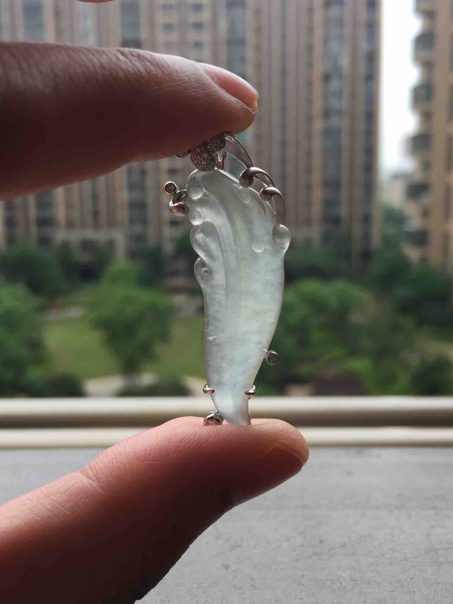 翡翠冰种浪花儿吊坠胸针两用款18k白金钻石镶嵌