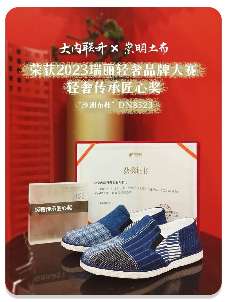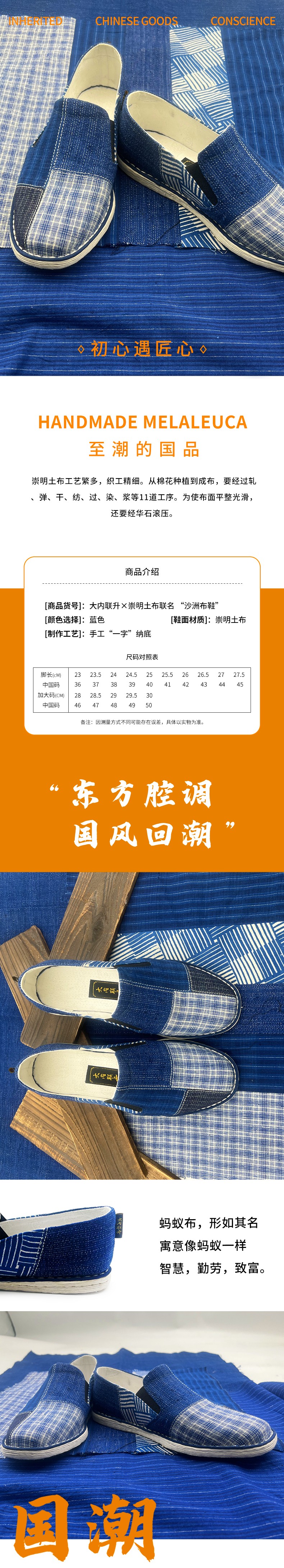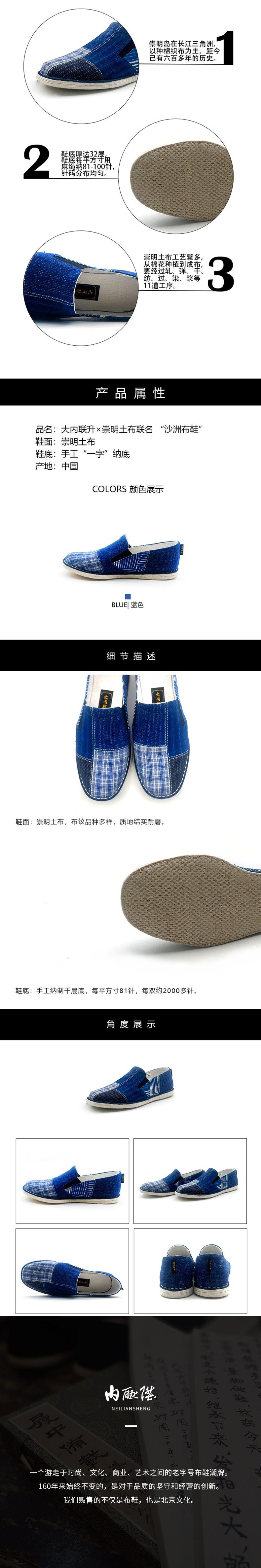 内联升男鞋手工单鞋千层底大内联升×崇明土布联名“沙洲松紧口布鞋”DN8523