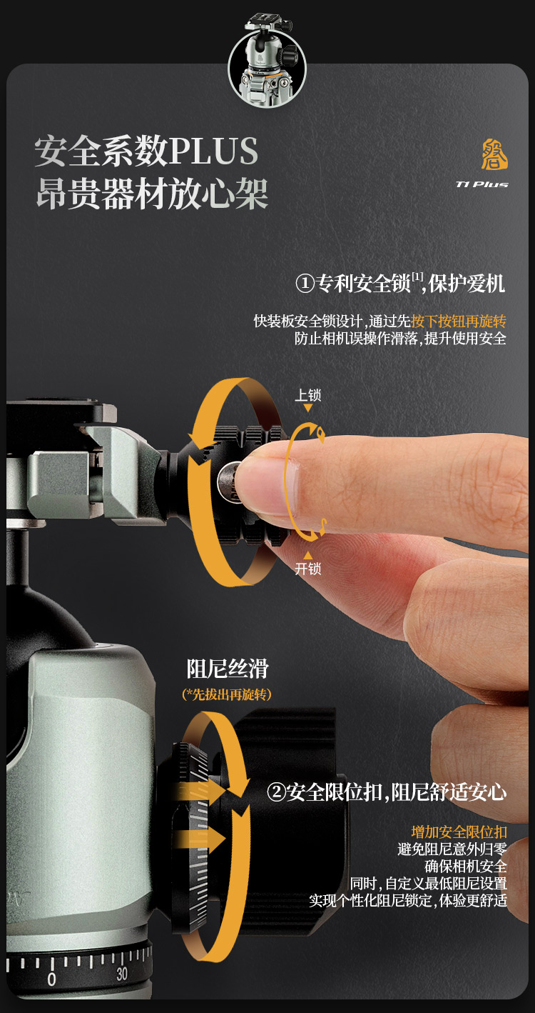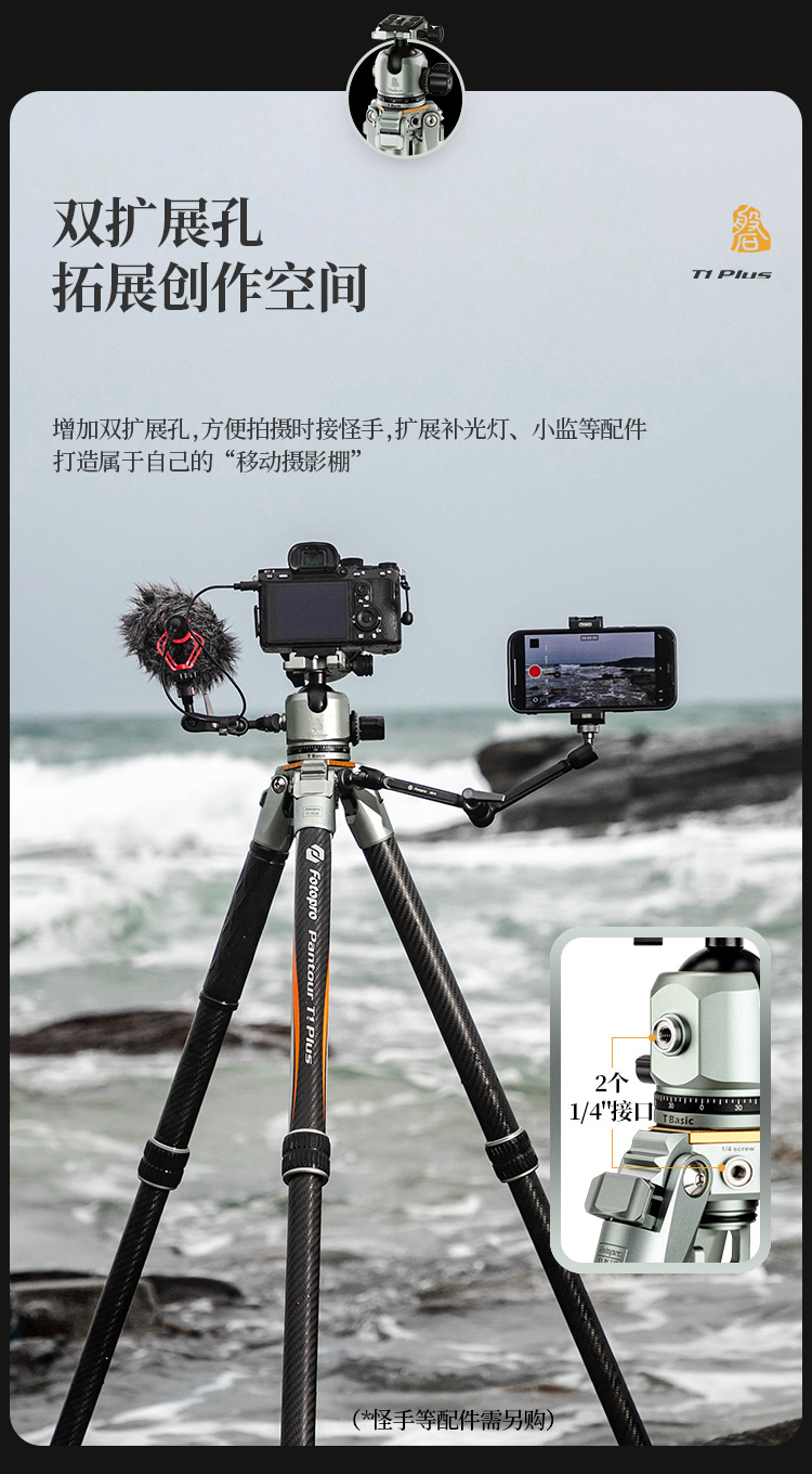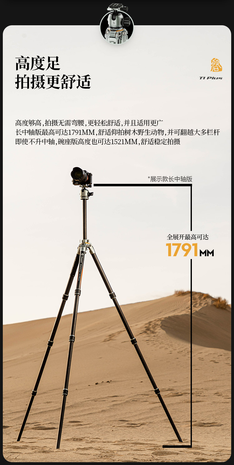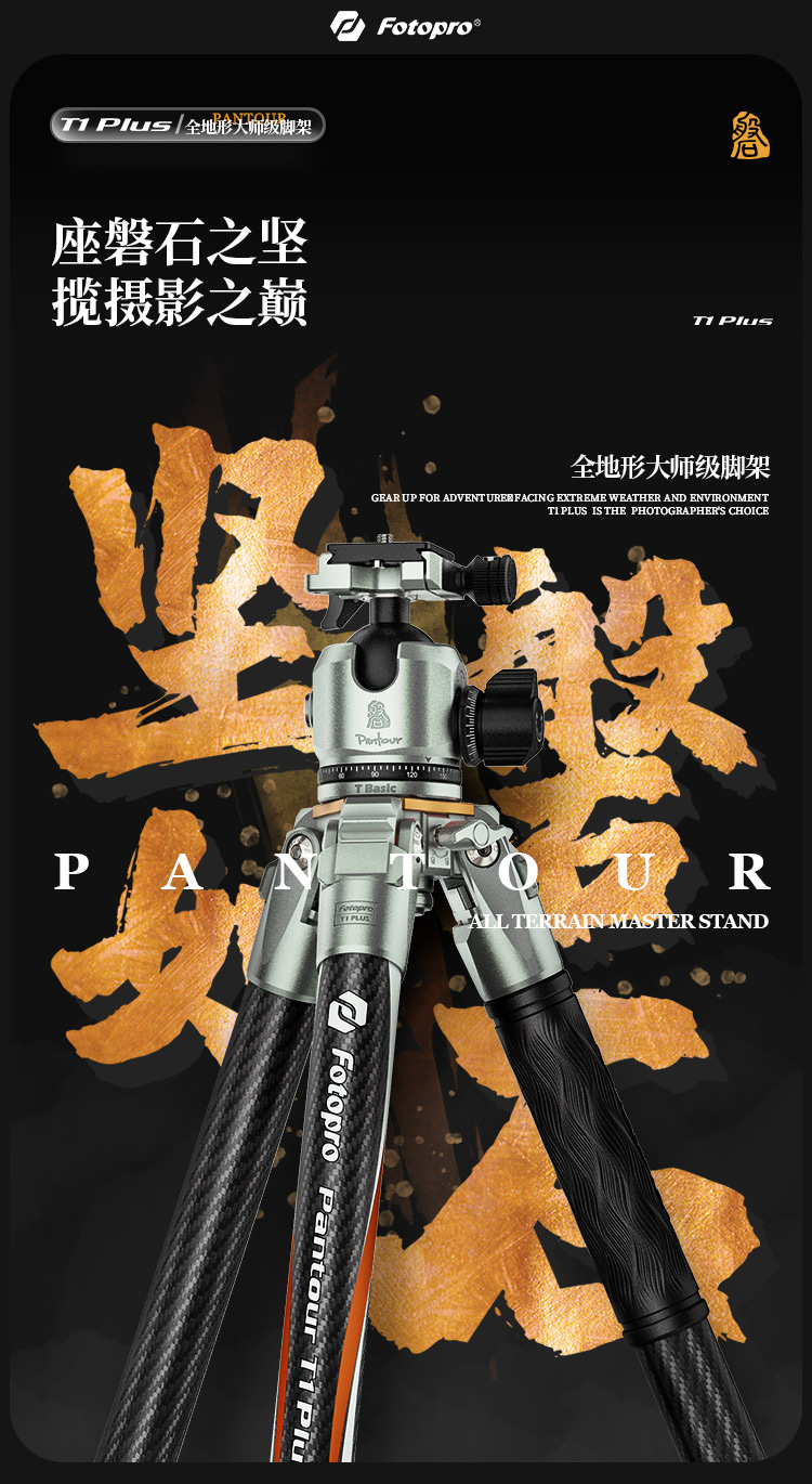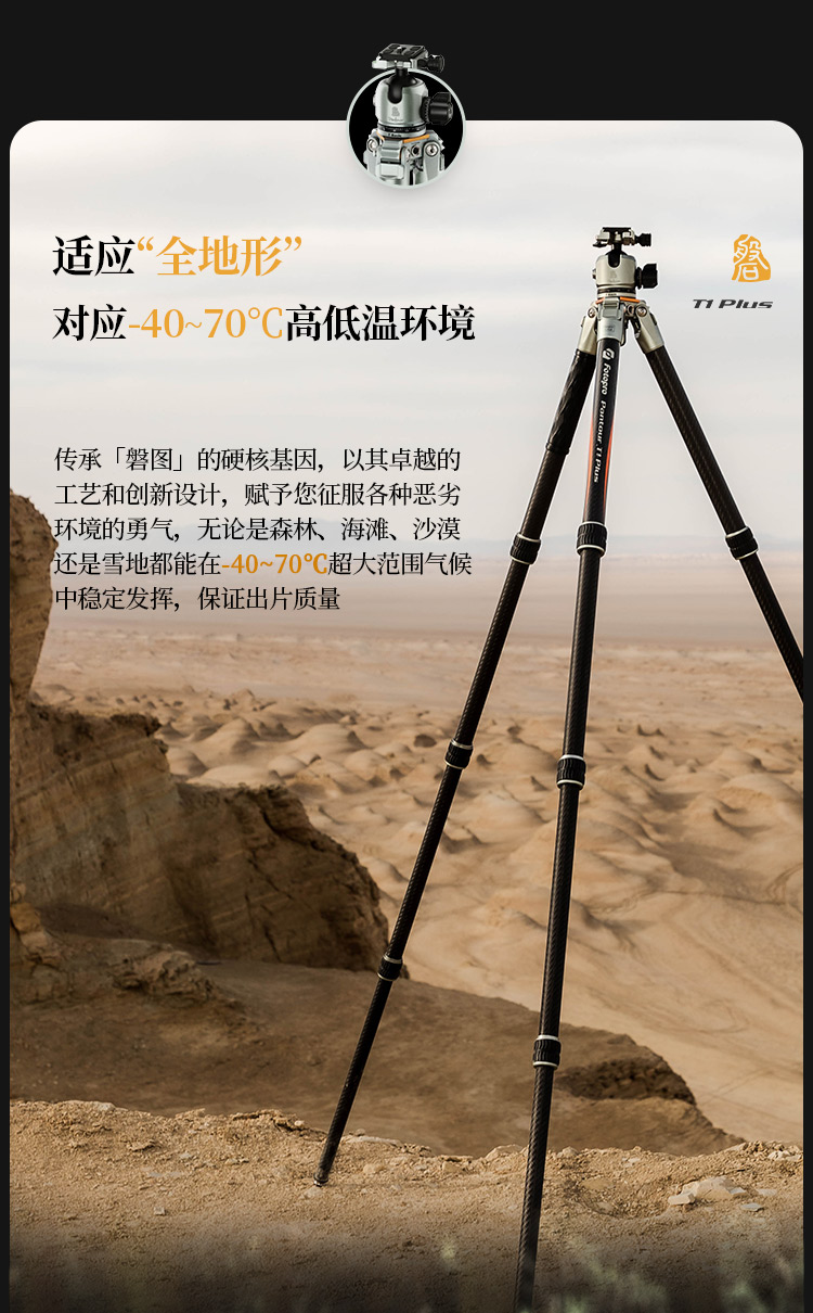 磐图T1PLUS高端碳纤维三脚架 全地形大师级相机三脚架
