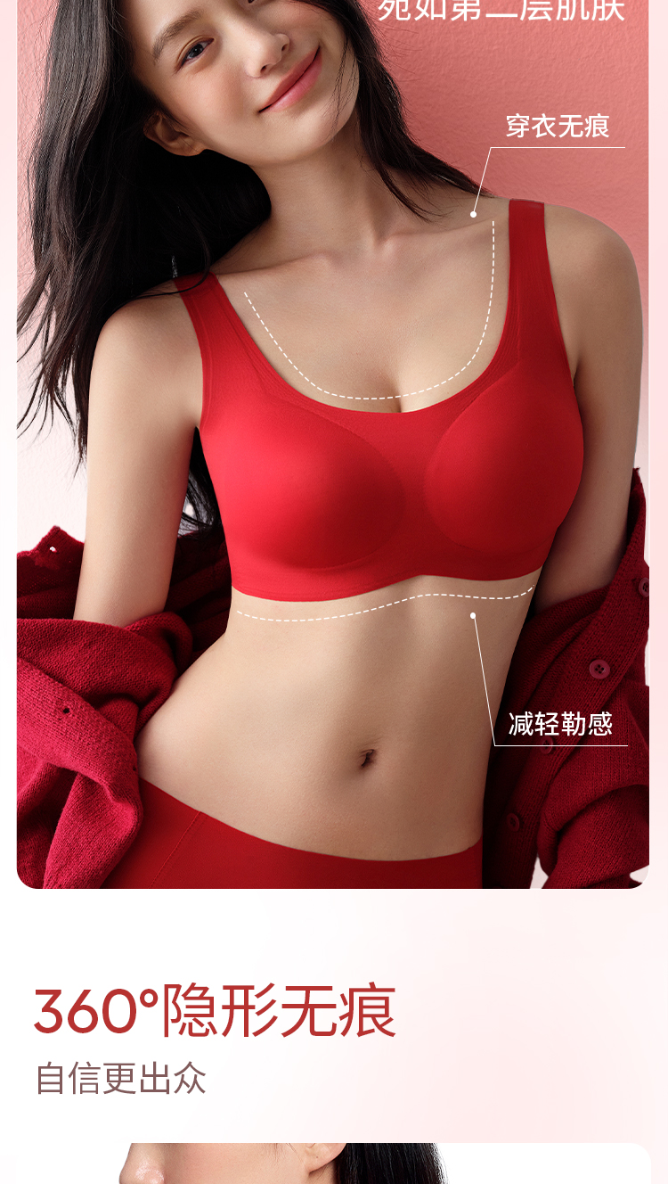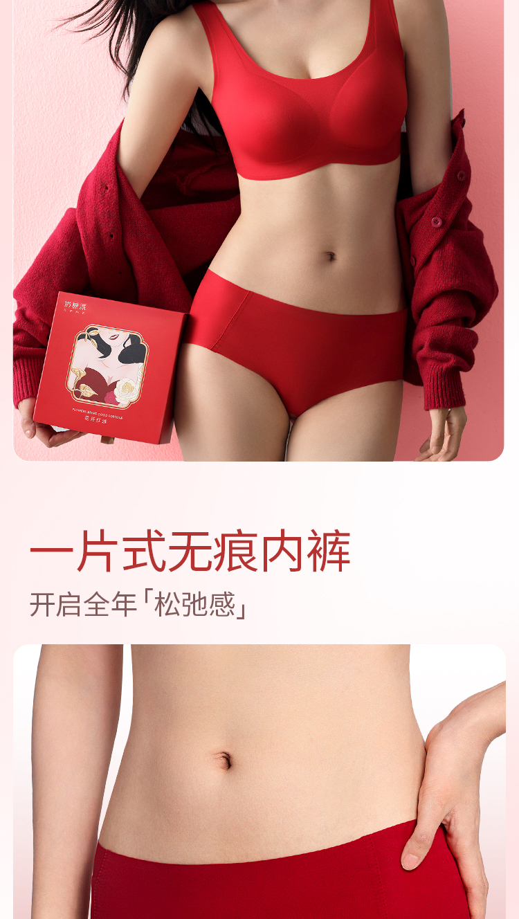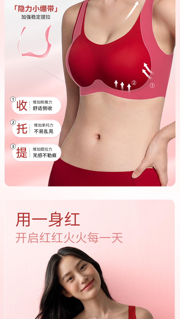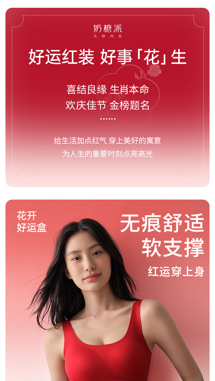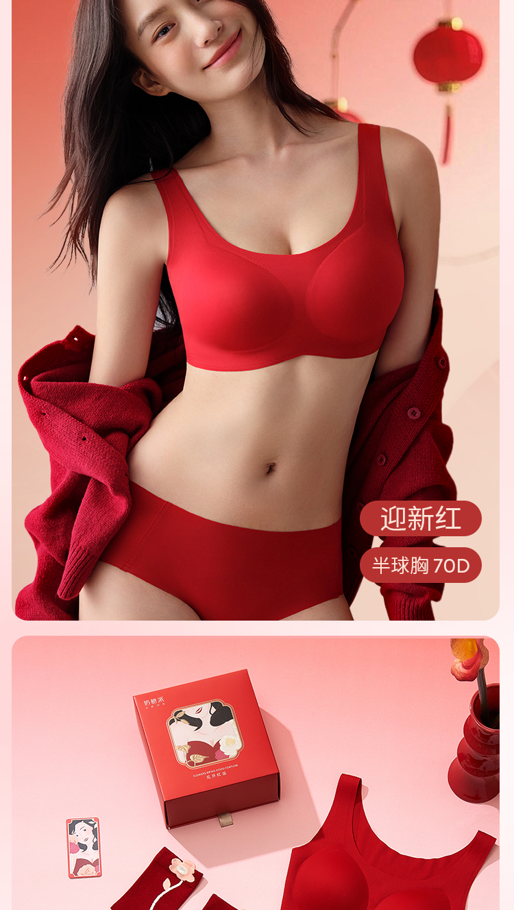 【1套=文胸+内裤+袜子】奶糖派花开好运悬浮2.0文胸套装新年红品本命年婚庆礼物 丝绒红礼盒装