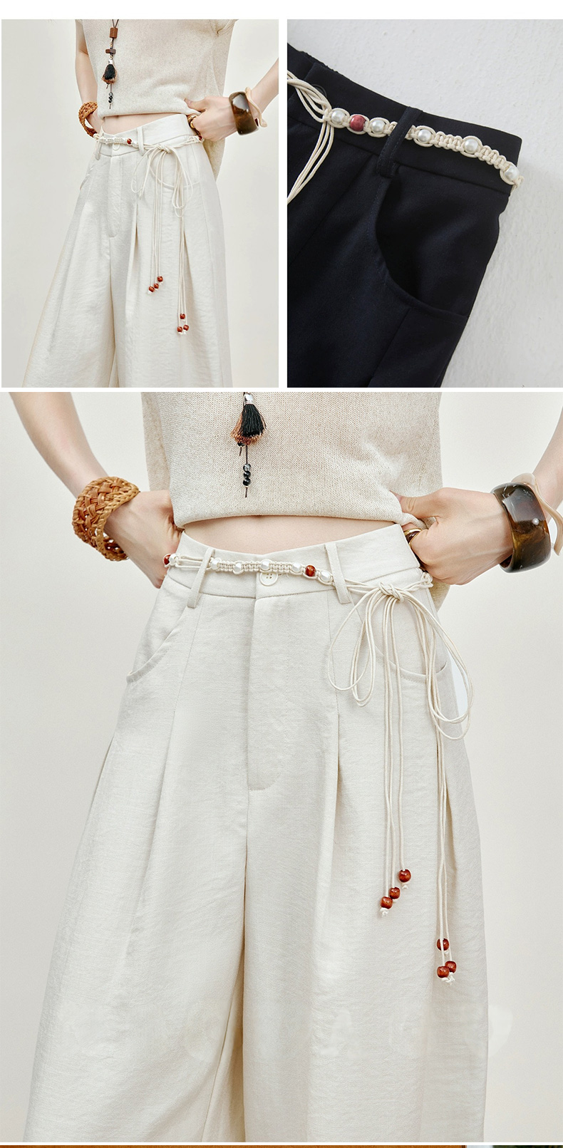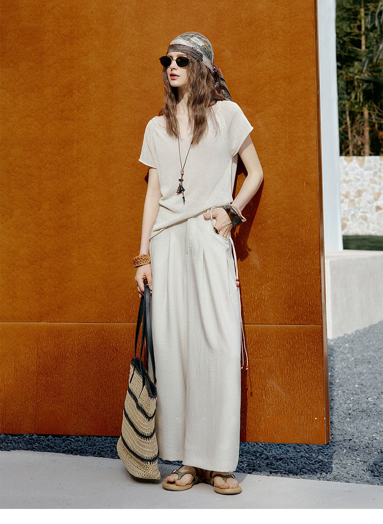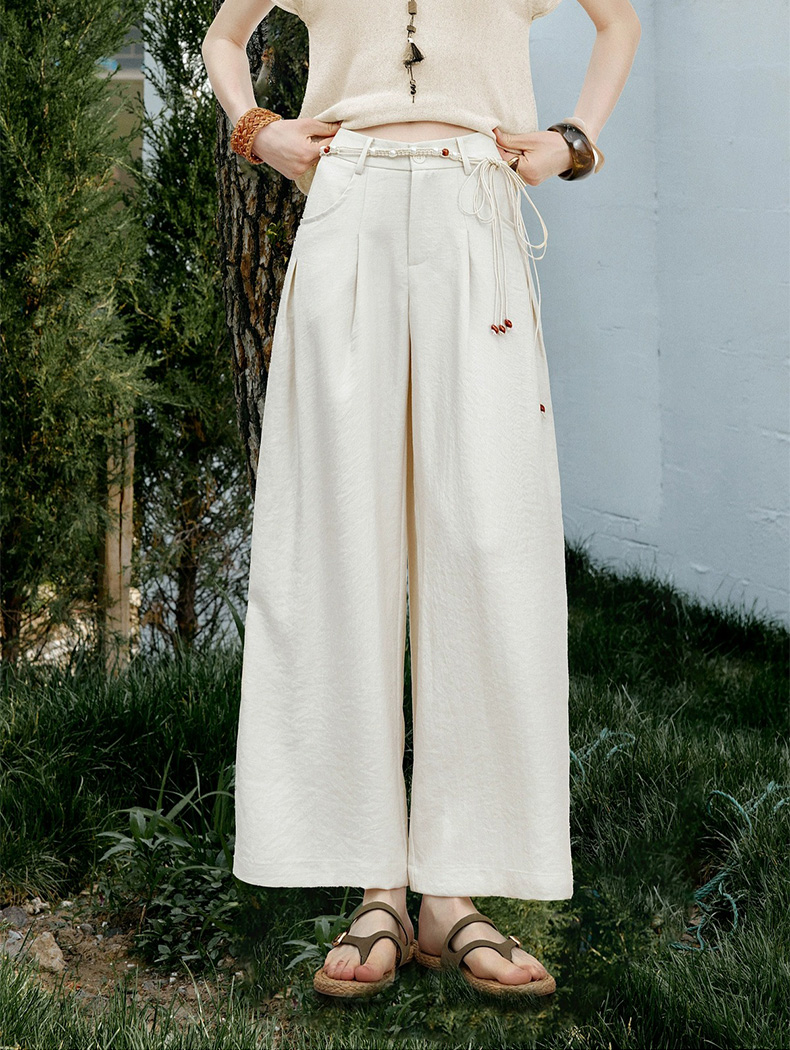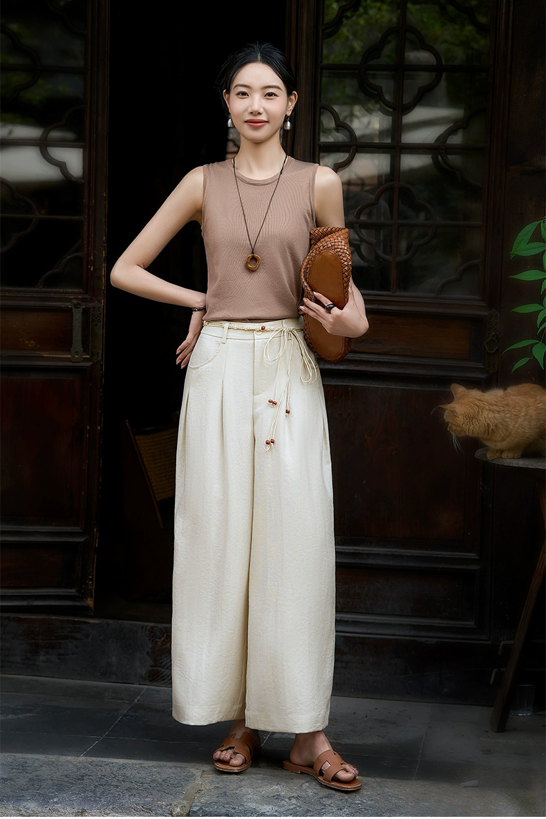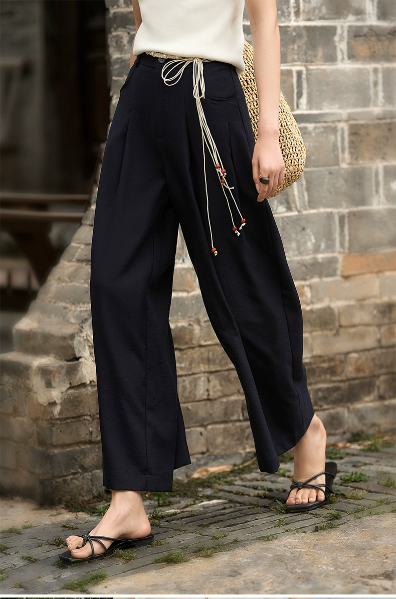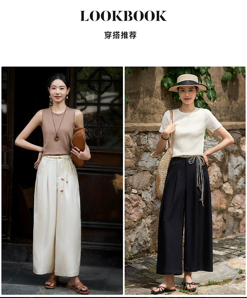 【下单配赠模特同款编织腰带】姹弥Charming·亚麻混纺 | 垂坠透气肌理感 直筒阔腿 藏肉显瘦文艺百搭高级感休闲裤