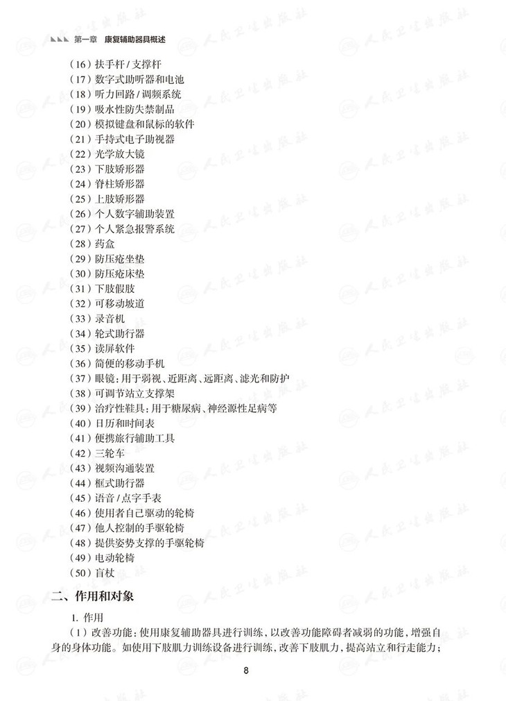 可以说,每个人的一生中总有一个阶段需要康复辅助器具,比如发生疾病、外伤、老年后功能减退等,都需要某一种或几种康复辅助器具来改善、提高或代偿降低的功能。因此康复辅助器具的临床应用对于患者、功能障碍者和老年人最大限度地改善功能障碍、提高生活自理能力、早日返回家庭和工作岗位具有十分重要的作用。
