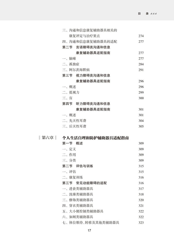 全书分为七章,图文并茂,操作性和实践性很强,围绕康复辅助器具应用的康复评定和治疗方法比较多,涉及的康复辅助器具种类也比较多。向读者全面介绍康复辅助器具的基本知识和分类、临床常见疾病和功能障碍的评定和康复治疗,重点是针对常见疾病的各个阶段、各种功能障碍,详细介绍了康复辅助器具的临床适配。