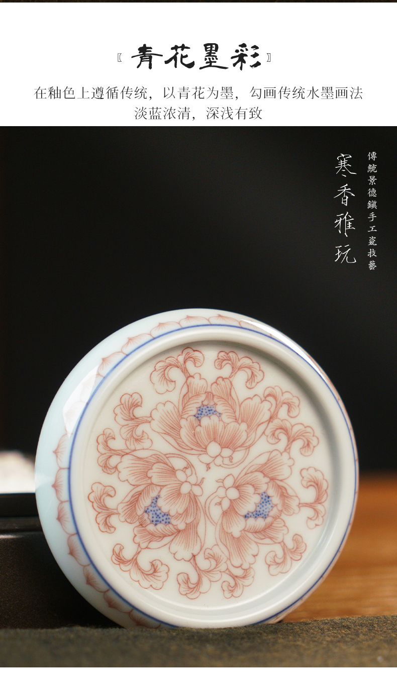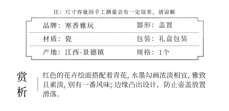 寒香雅玩青花红花卉盖置(缺货)