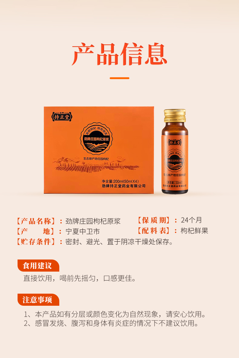 劲牌持正堂枸杞原浆(50ml*4瓶)