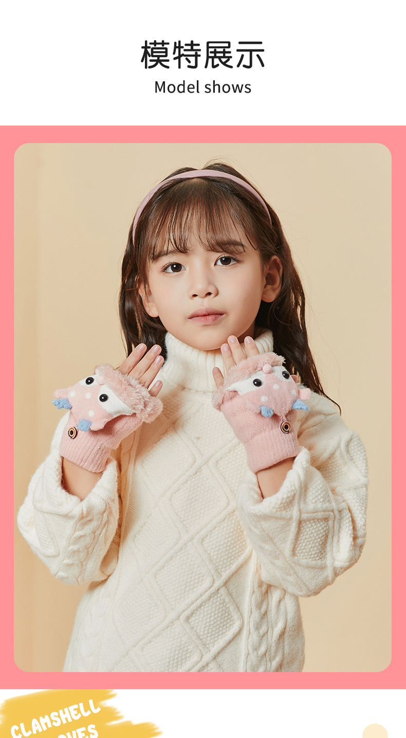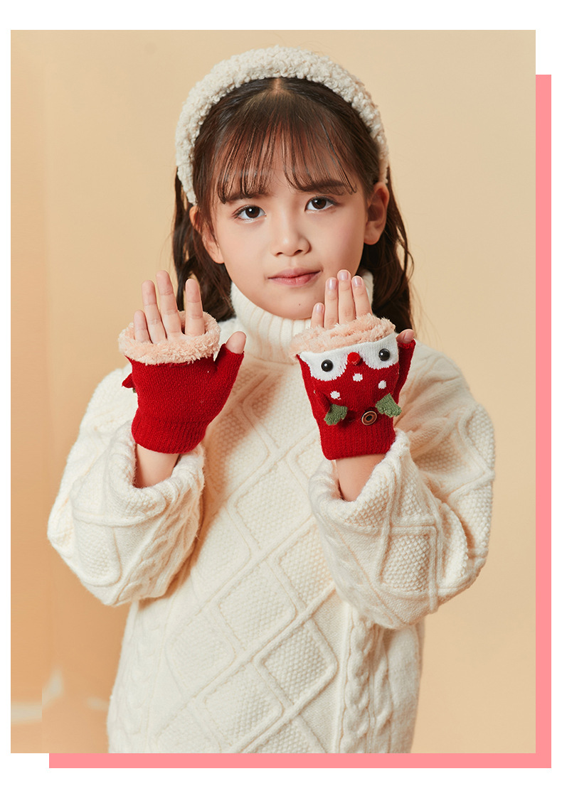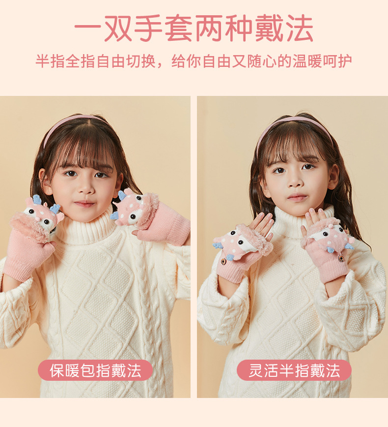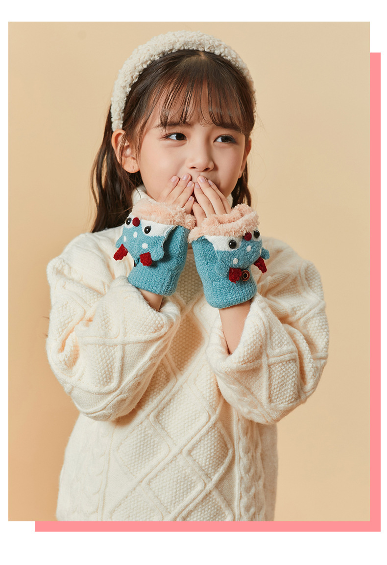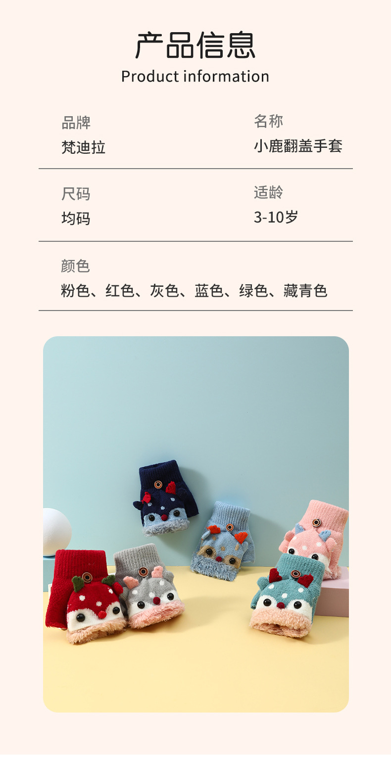 【27色可选 圣诞小鹿翻盖手套】儿童手套半指翻盖冬季宝宝婴幼儿小孩可爱加厚保暖五指男童女童