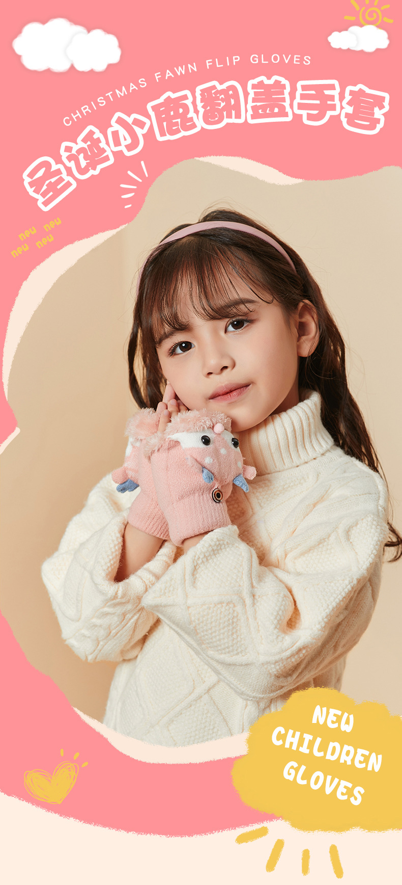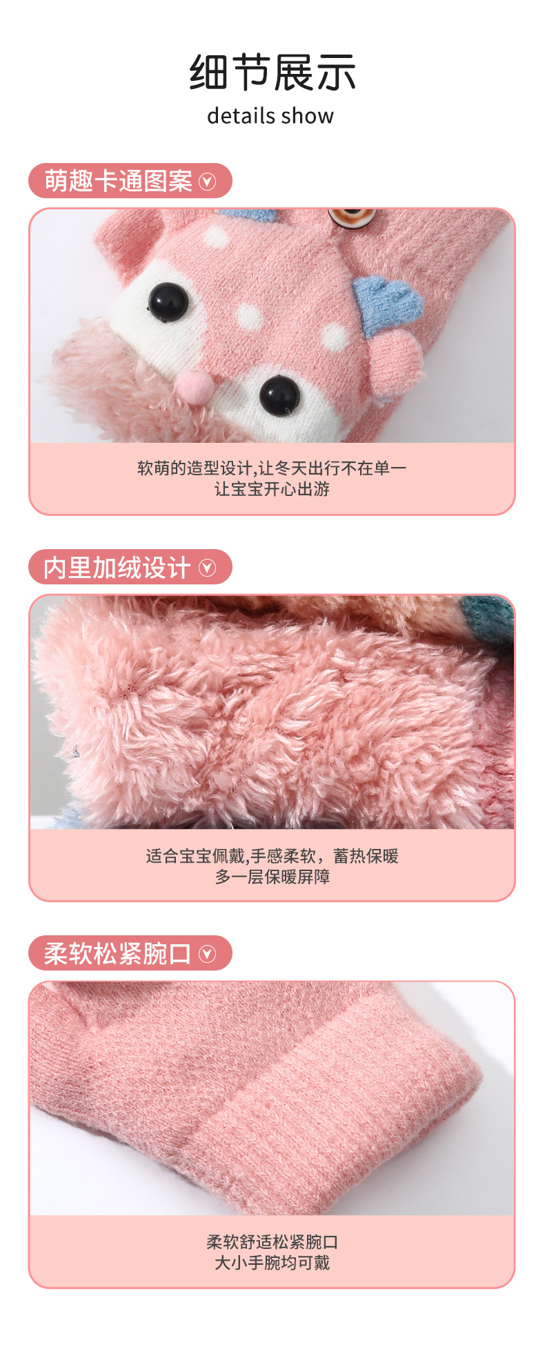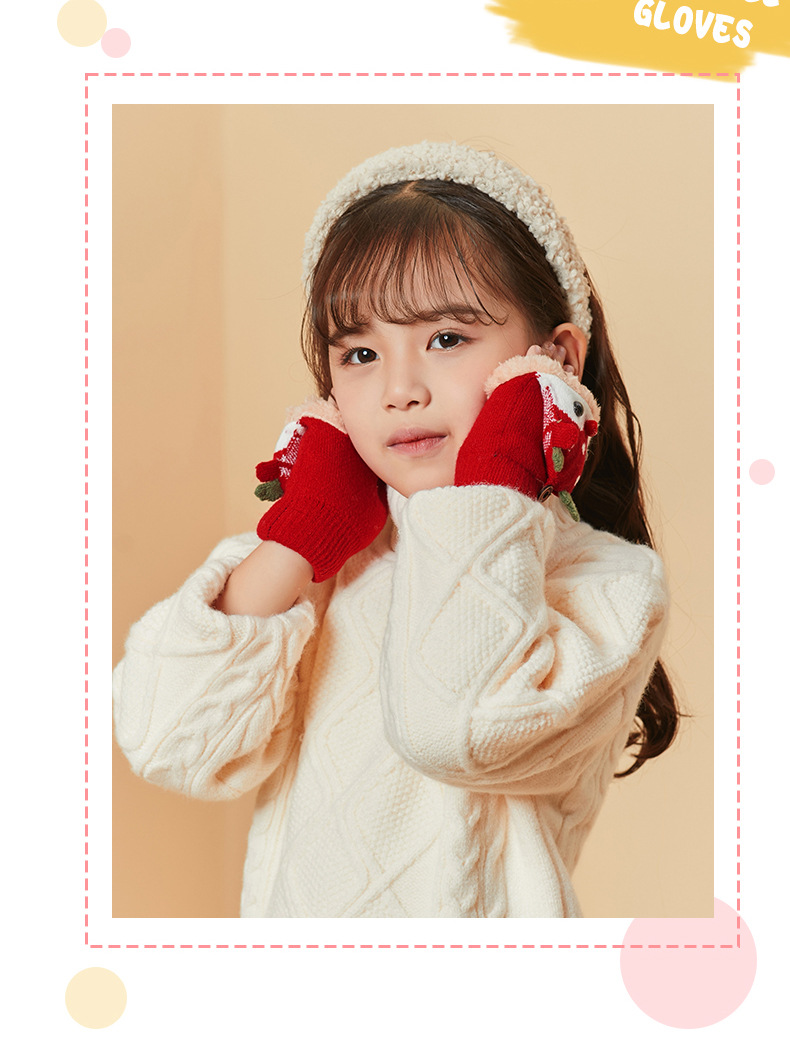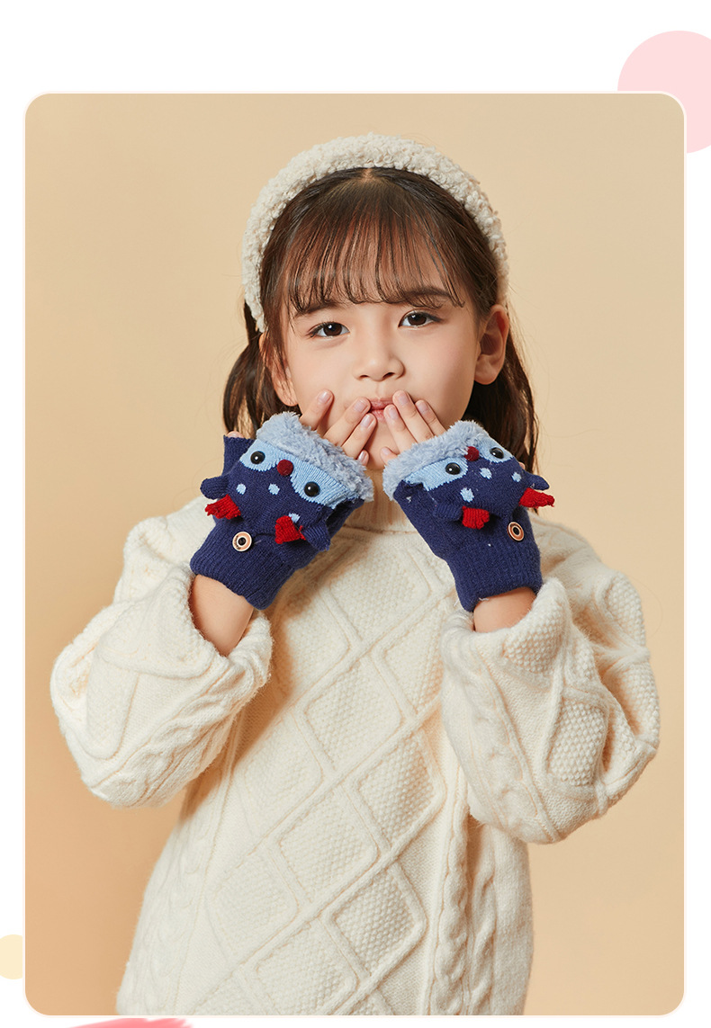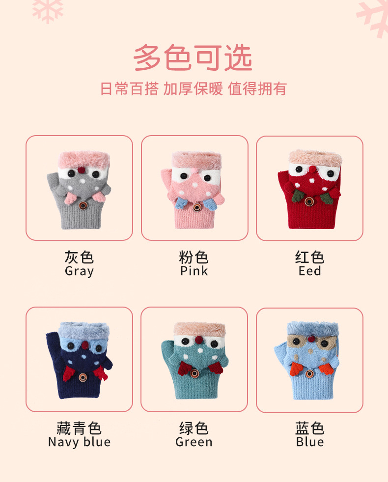 【27色可选 圣诞小鹿翻盖手套】儿童手套半指翻盖冬季宝宝婴幼儿小孩可爱加厚保暖五指男童女童