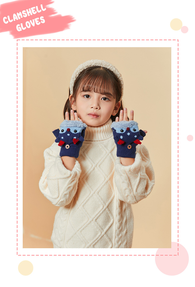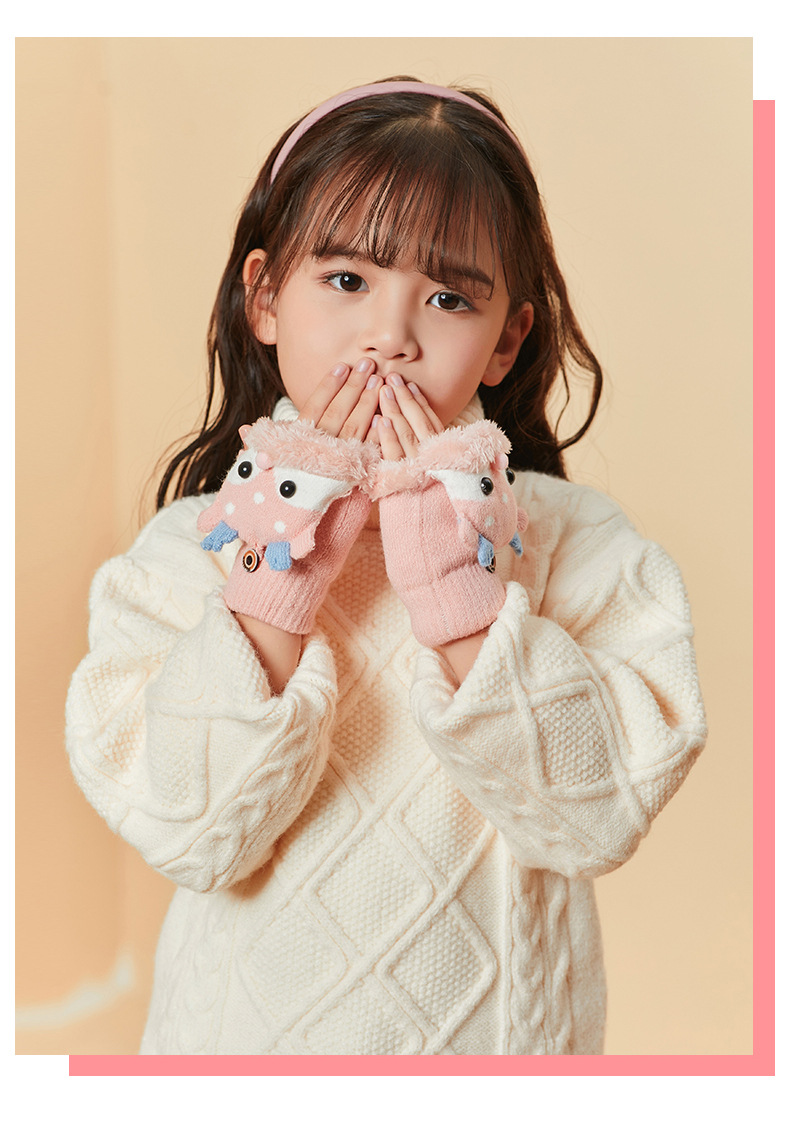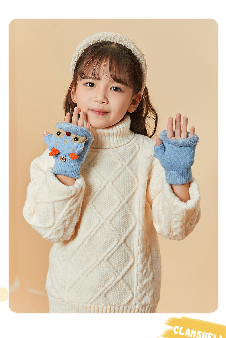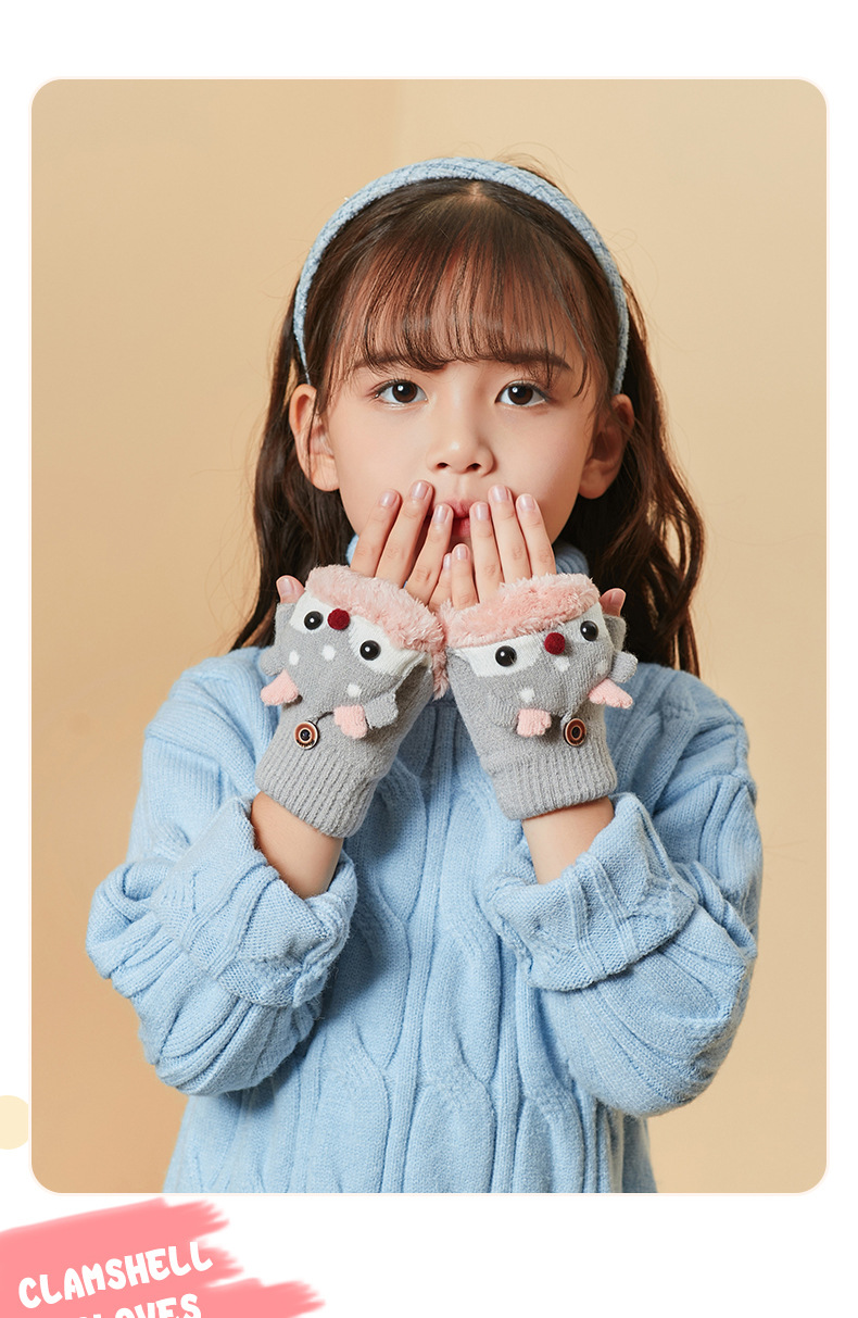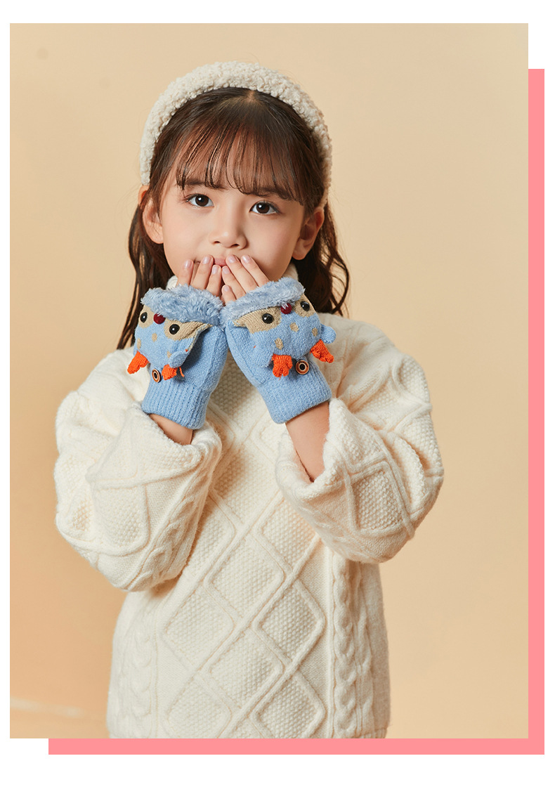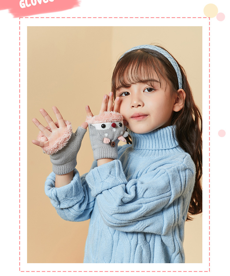 【27色可选 圣诞小鹿翻盖手套】儿童手套半指翻盖冬季宝宝婴幼儿小孩可爱加厚保暖五指男童女童