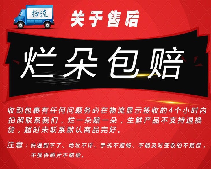 3、生鲜水果非标品众口难调,所有口感不好、品相不好、表皮轻微擦伤、地址不详、电话错误、乡镇地址、超区都不在售后范围。