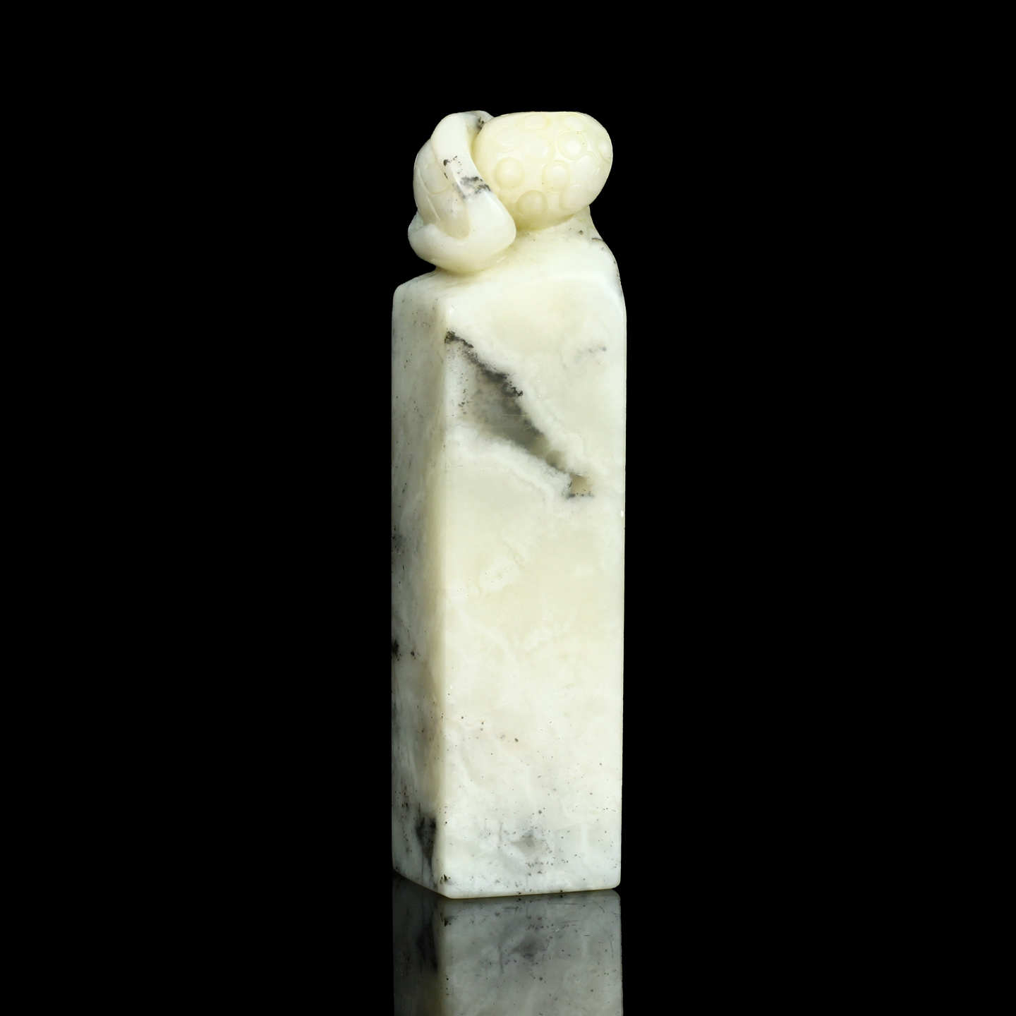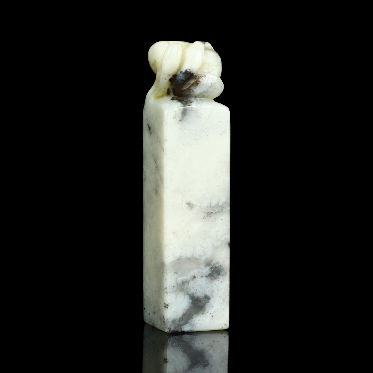 孤品017127-昌化石墨花冻荷花钮方章-2.3*2.3*10.0cm