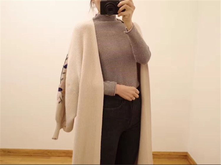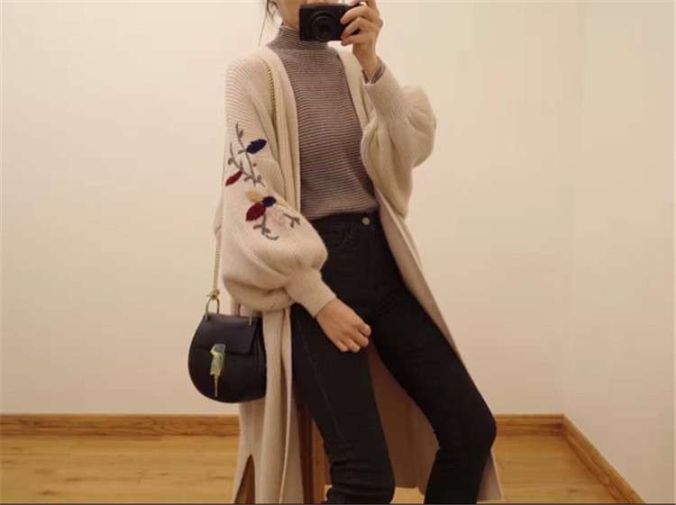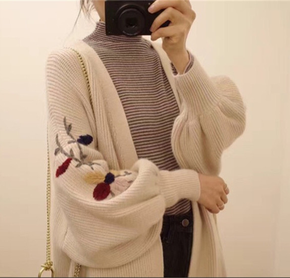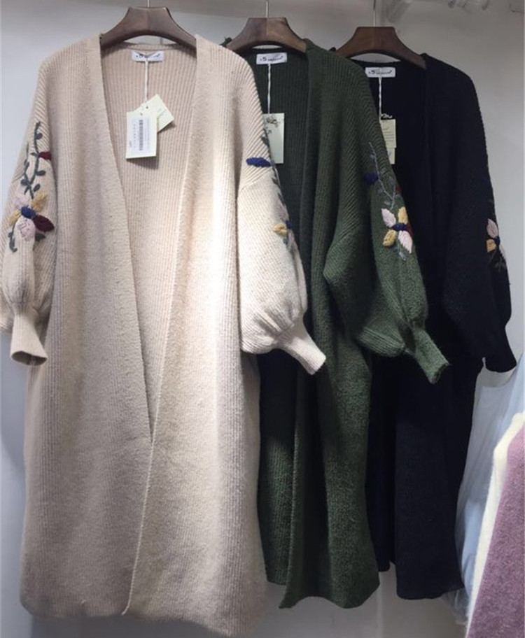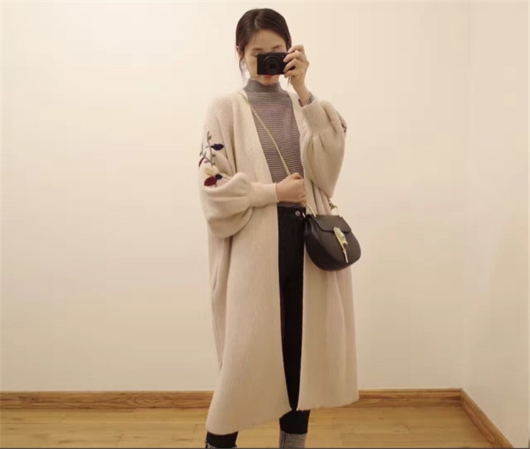 【服饰鞋包】春装新款休闲个性刺绣宽松大码毛衣女中长款长袖针织衫开衫外套潮