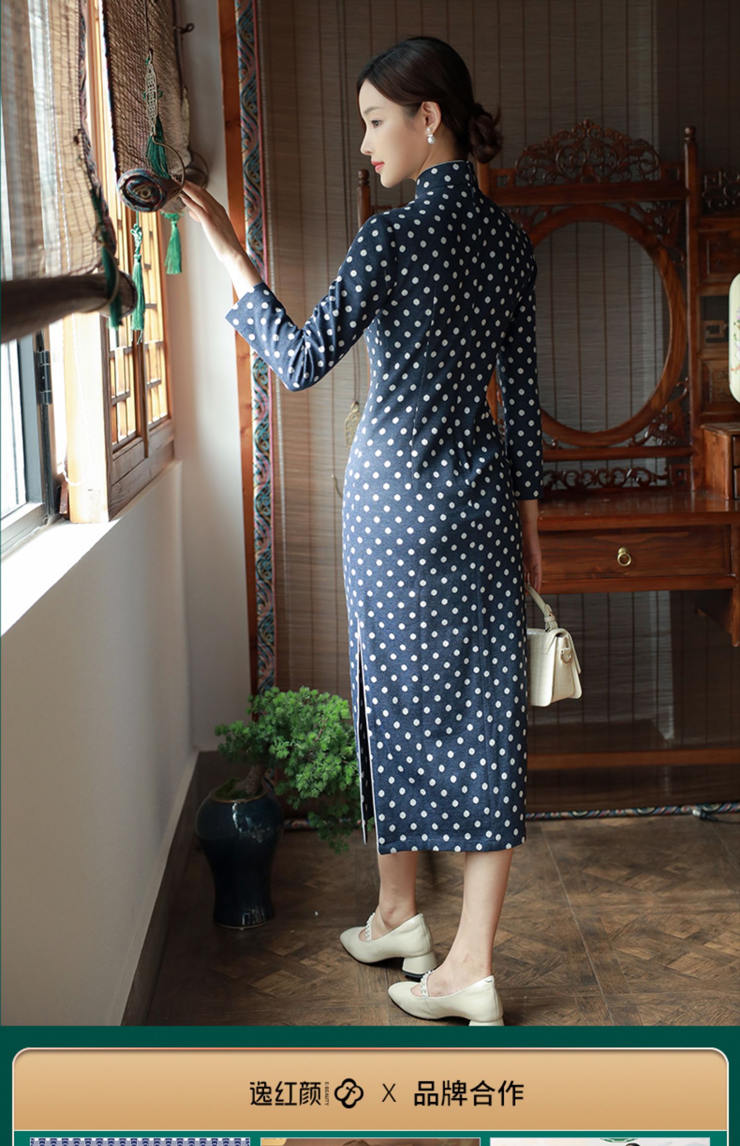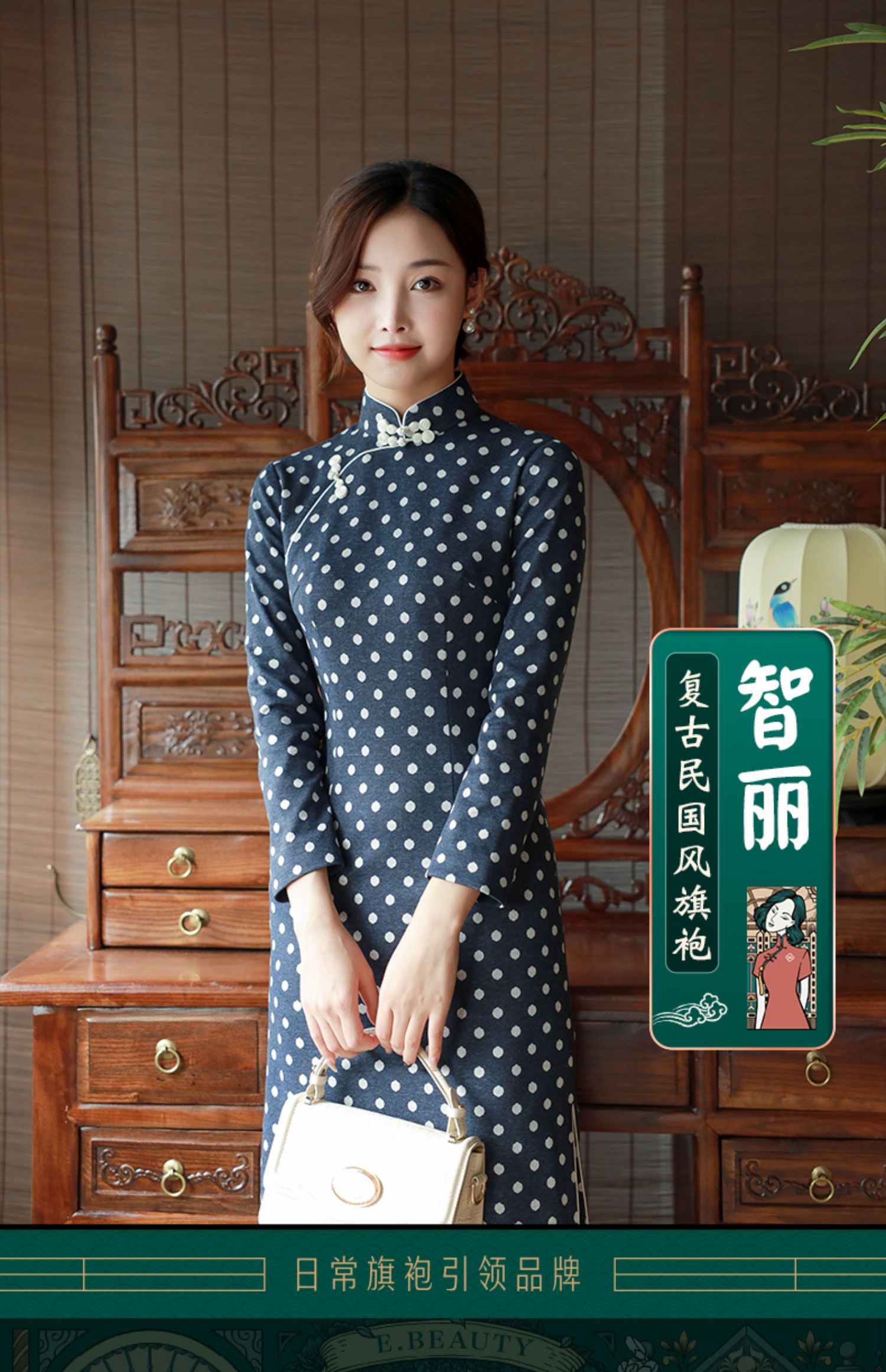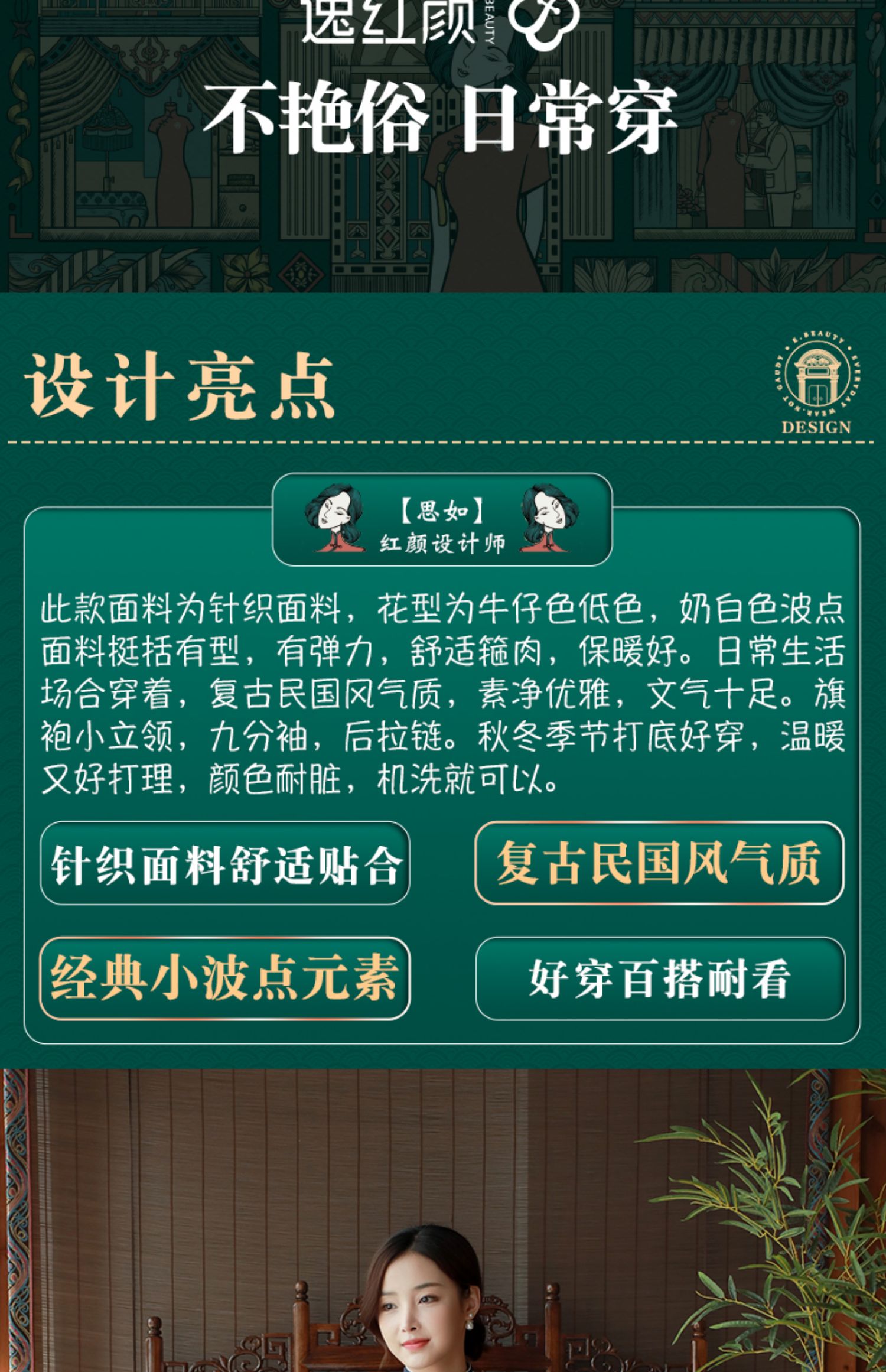 上海逸红颜智丽2025秋冬新款针织新中式复古优雅文艺波点旗袍