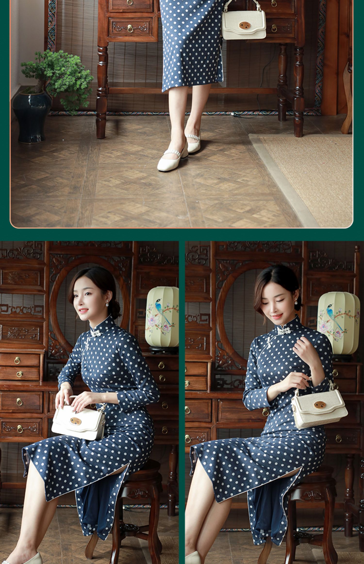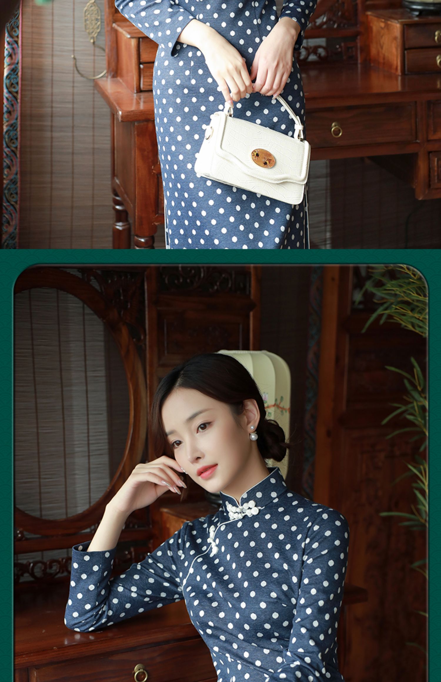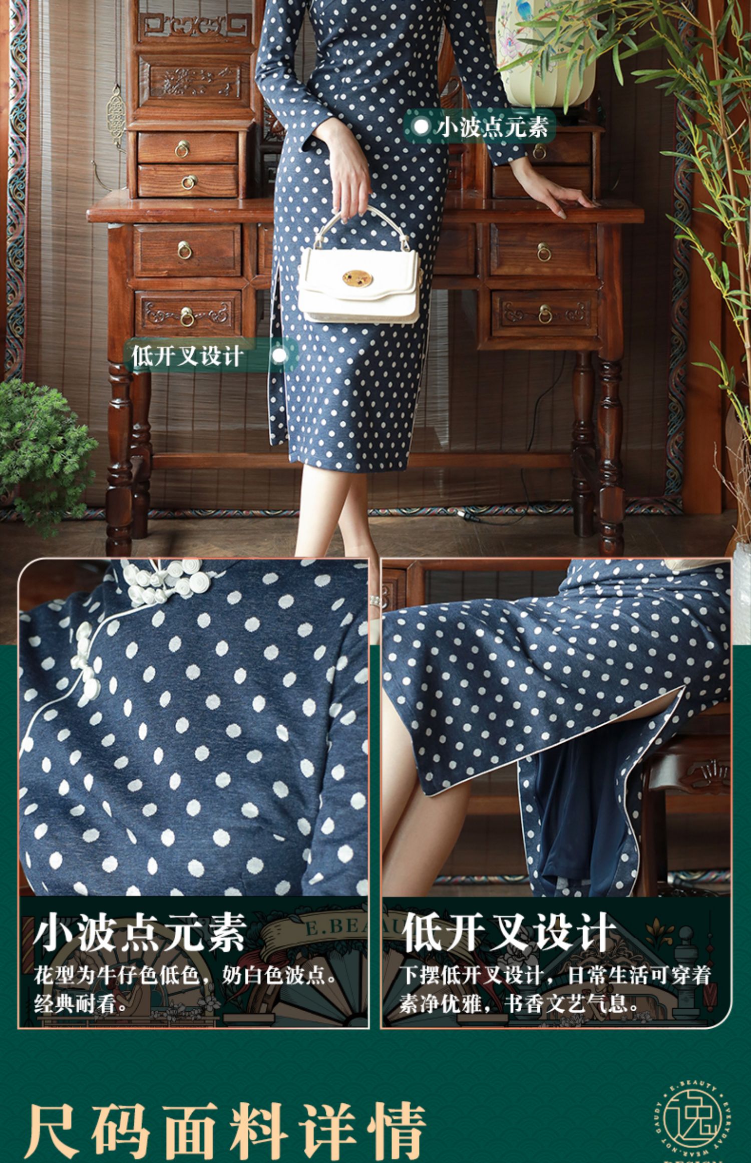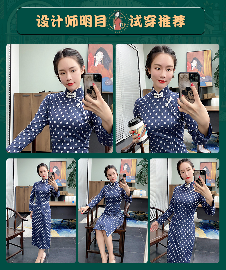 上海逸红颜智丽2025秋冬新款针织新中式复古优雅文艺波点旗袍