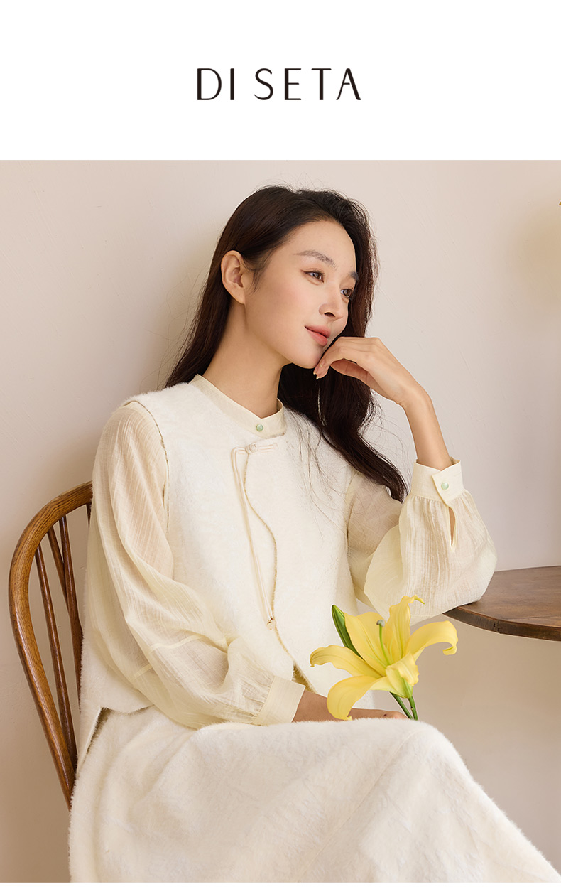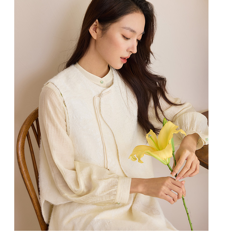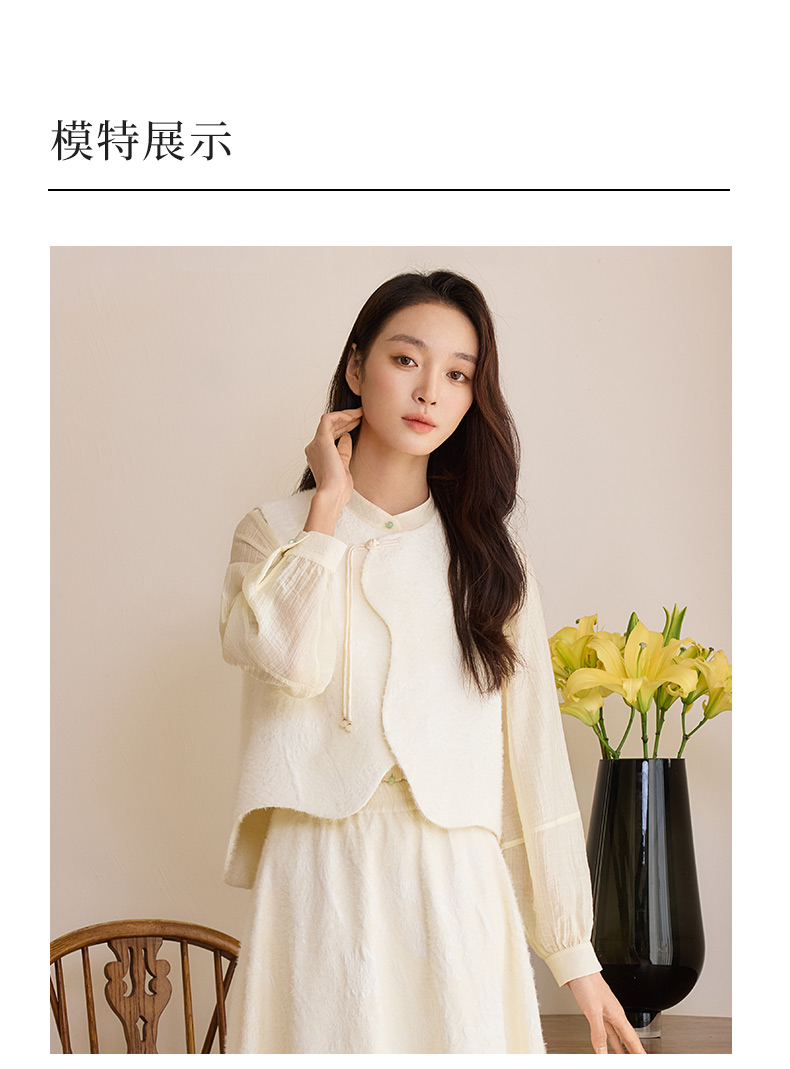 玳莎盘扣新中式马甲女2025年春季新款国风提花设计感马甲背心上衣 FA37001