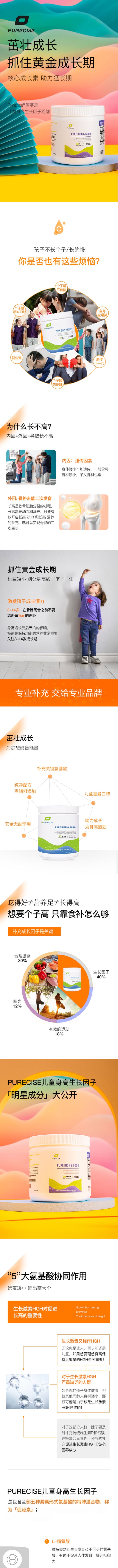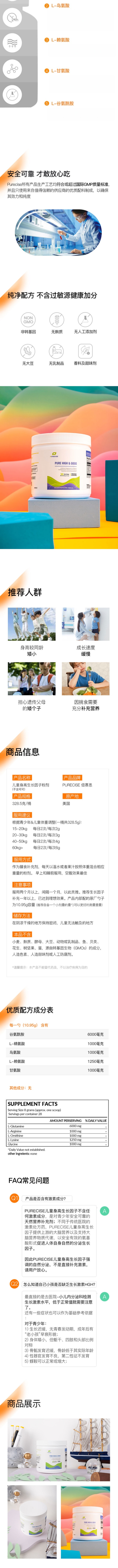 【新版本零辅料-儿童长高生长因子-不含可可粉 】Pure High GoGo 超纯版 儿童长高推荐 五种身高生长因子必须氨基酸自然分泌 远离小个子 不含任何激素 Purecise