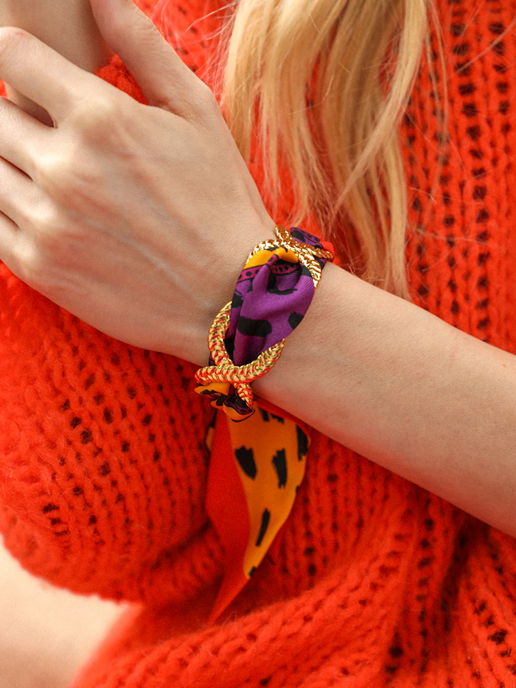 北京仓|AN-NEE-TRESSE-橘红色 夏帕诺瓦 4cm 丝巾手镯[法国设计师]