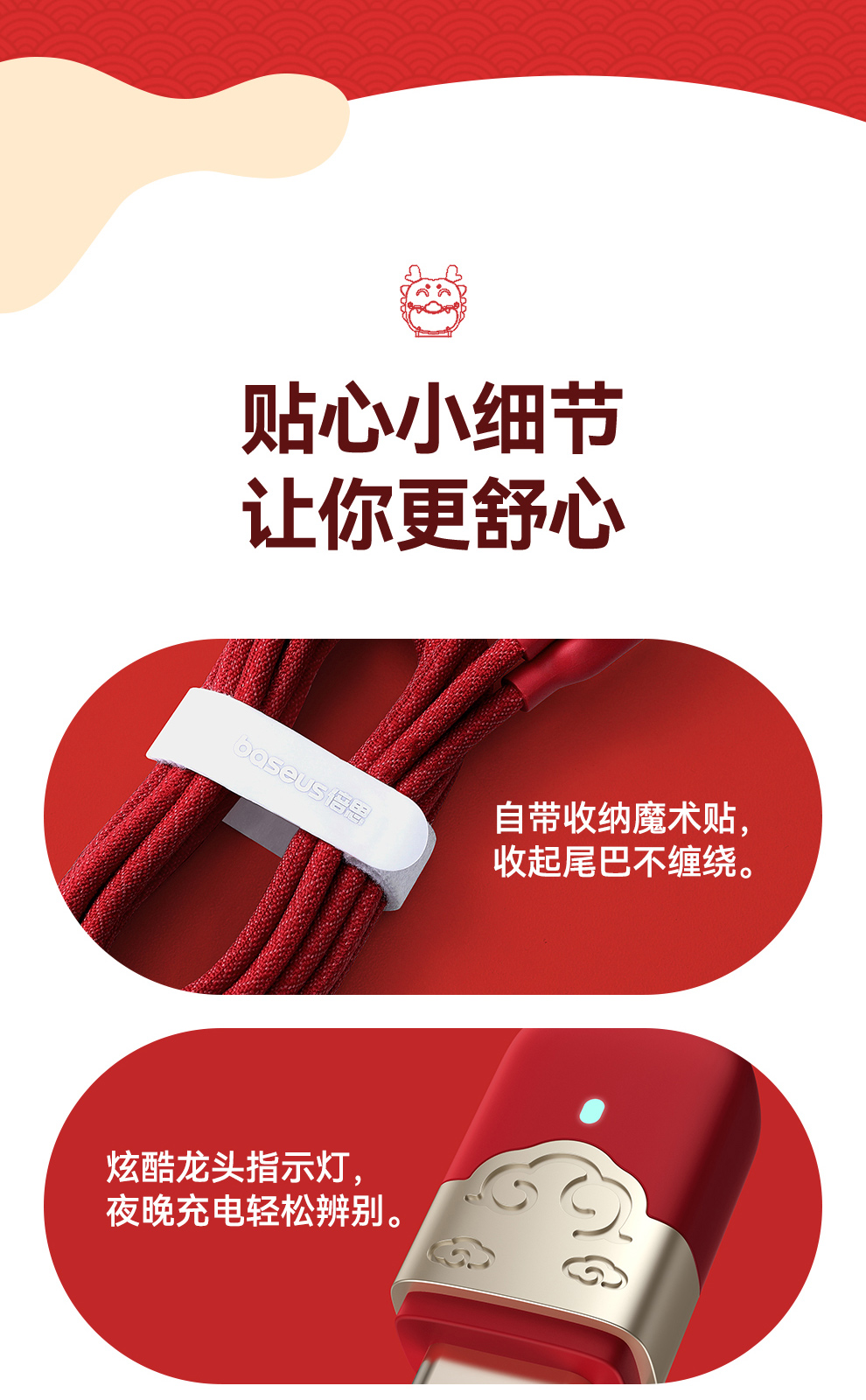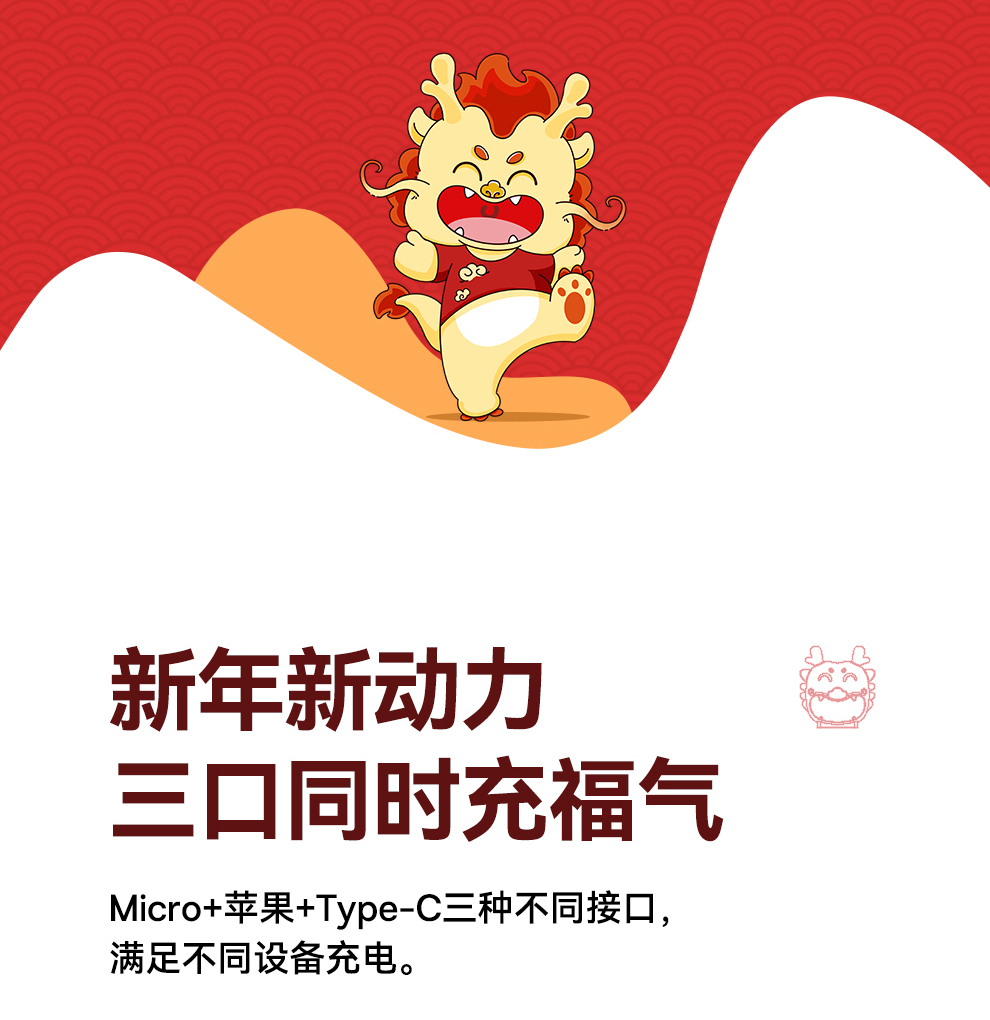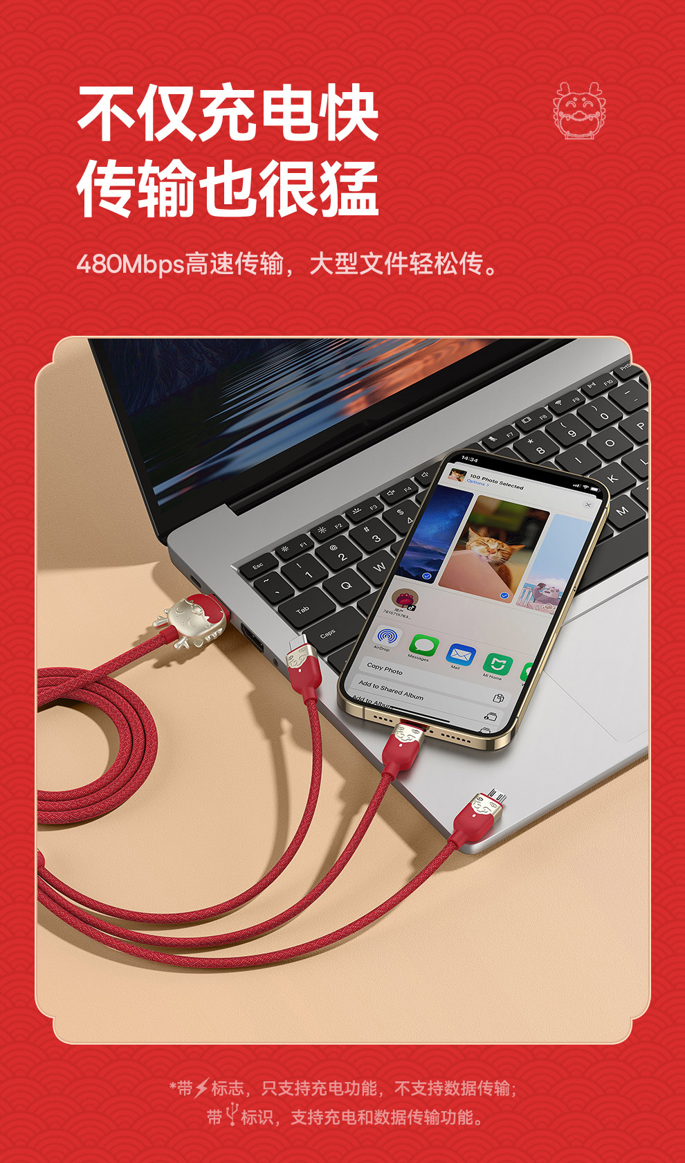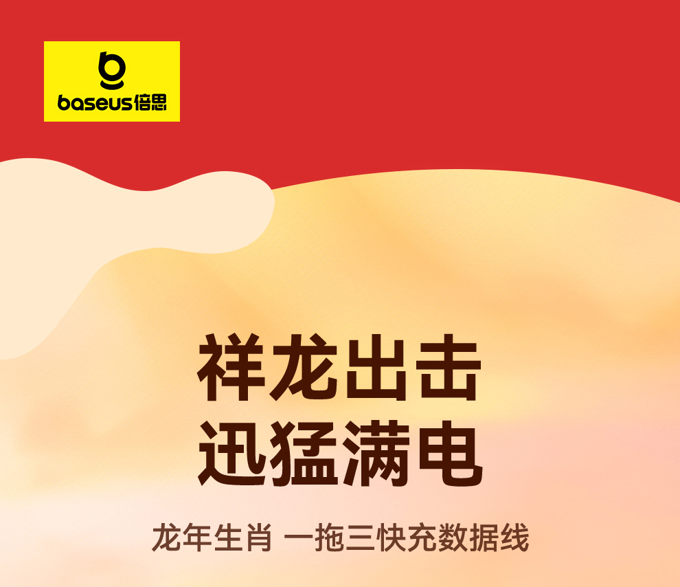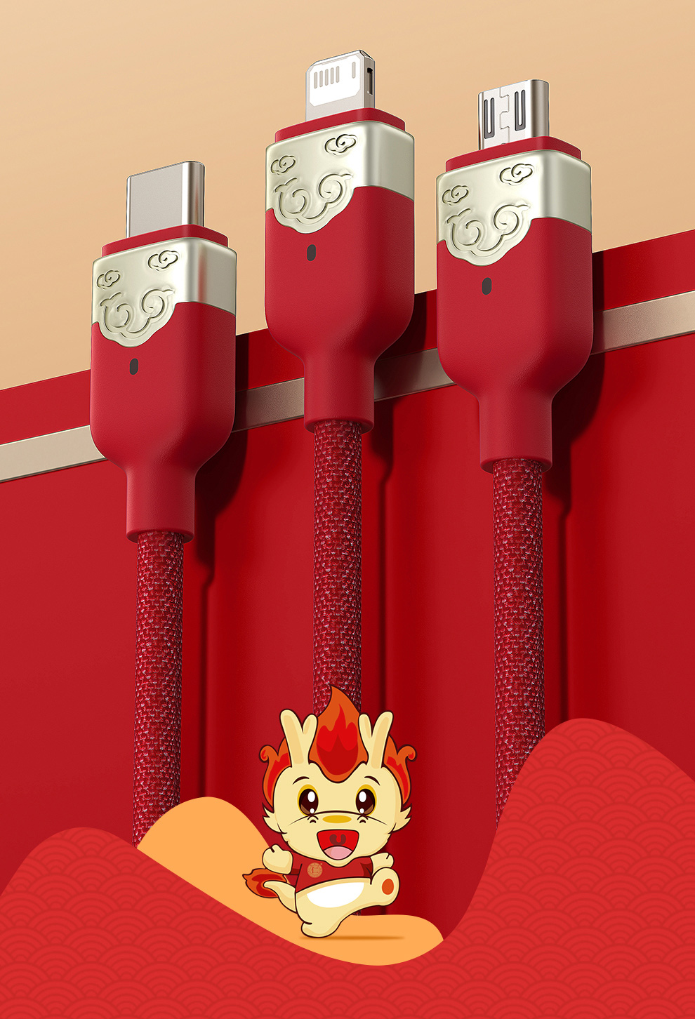 【69元3件】倍思 龙年生肖系列 一拖三快充数据线 USB to M+L+C 3.5A