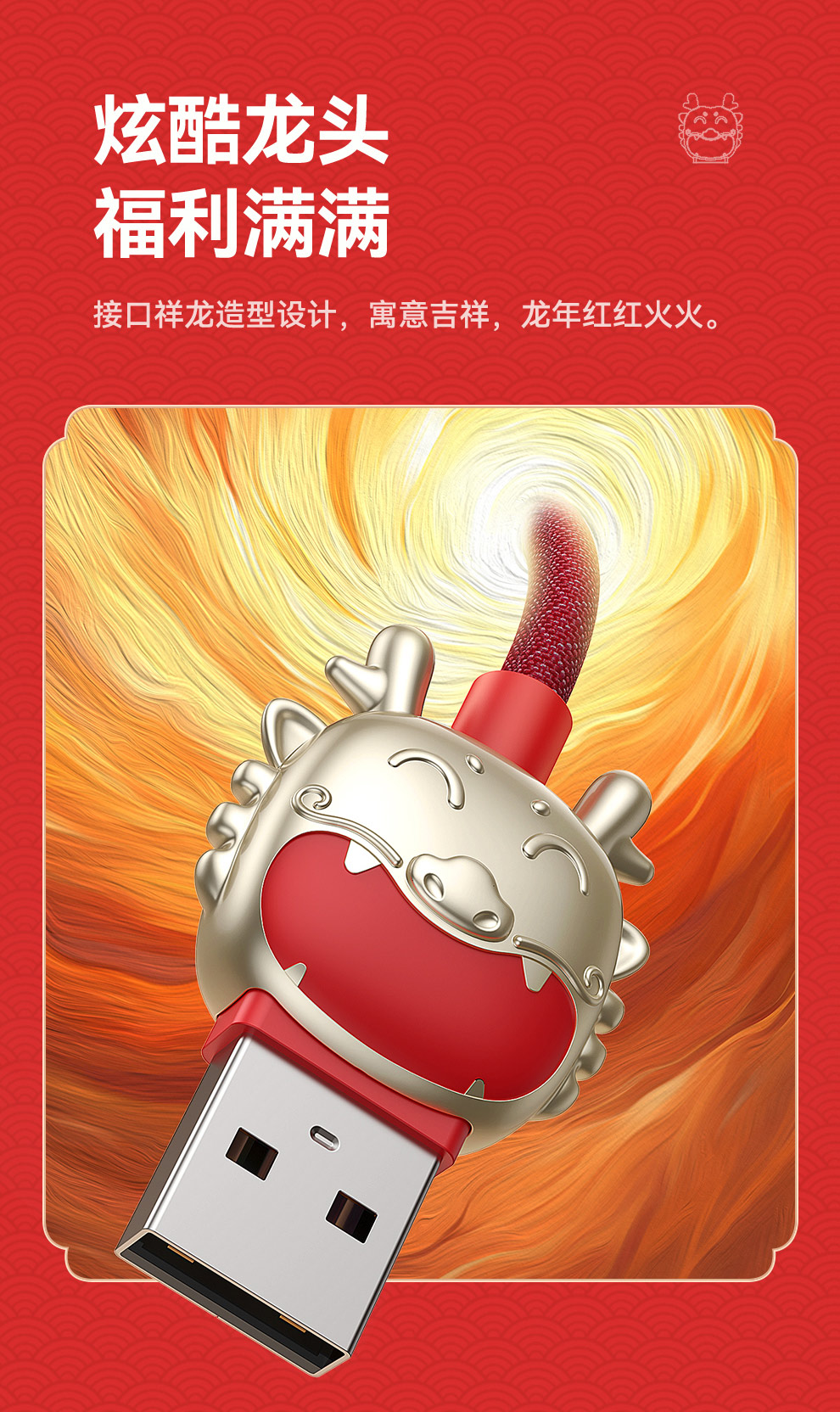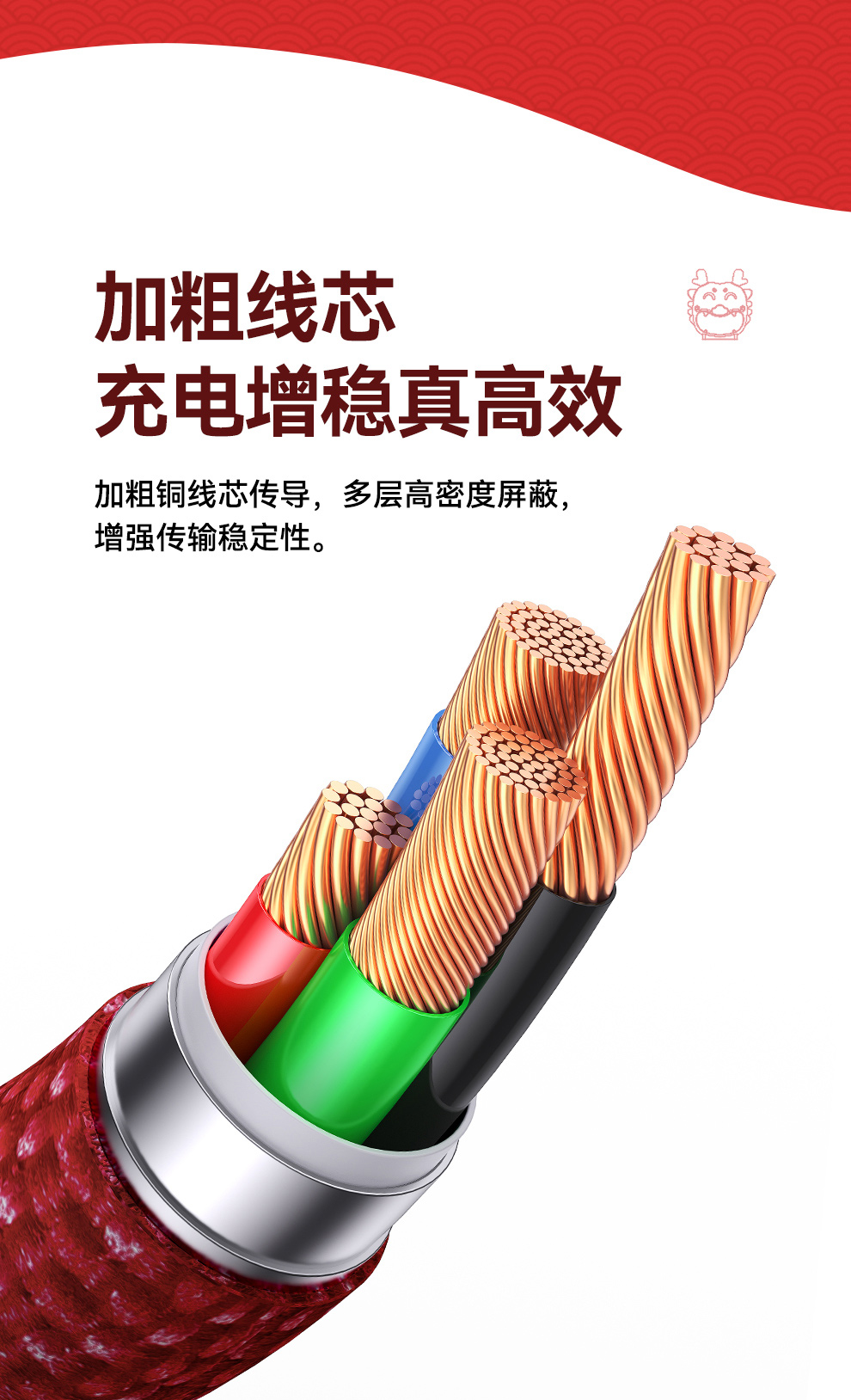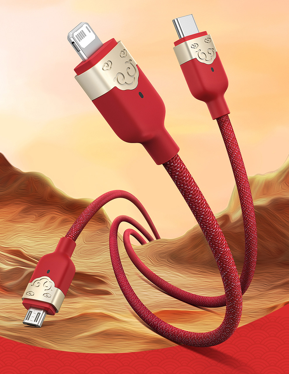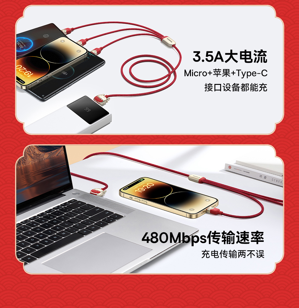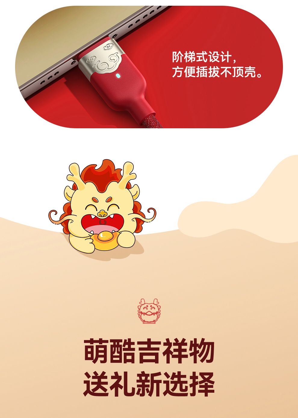 【69元3件】倍思 龙年生肖系列 一拖三快充数据线 USB to M+L+C 3.5A