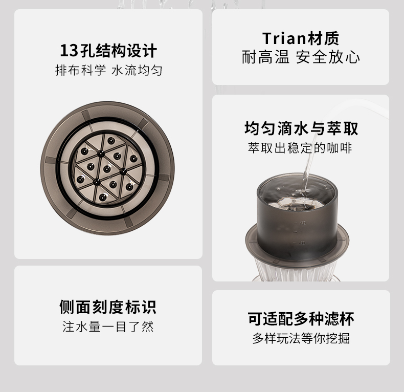 泰摩 手冲咖啡滴水器13孔均匀出水 DIY注水咖啡壶过滤手冲神器