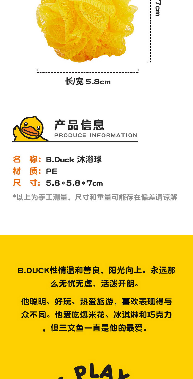 香港B.Duck小黄鸭沐浴球可爱卡通浴球宝宝沐浴花搓背气泡洗澡巾