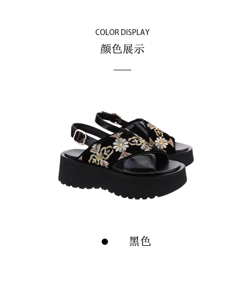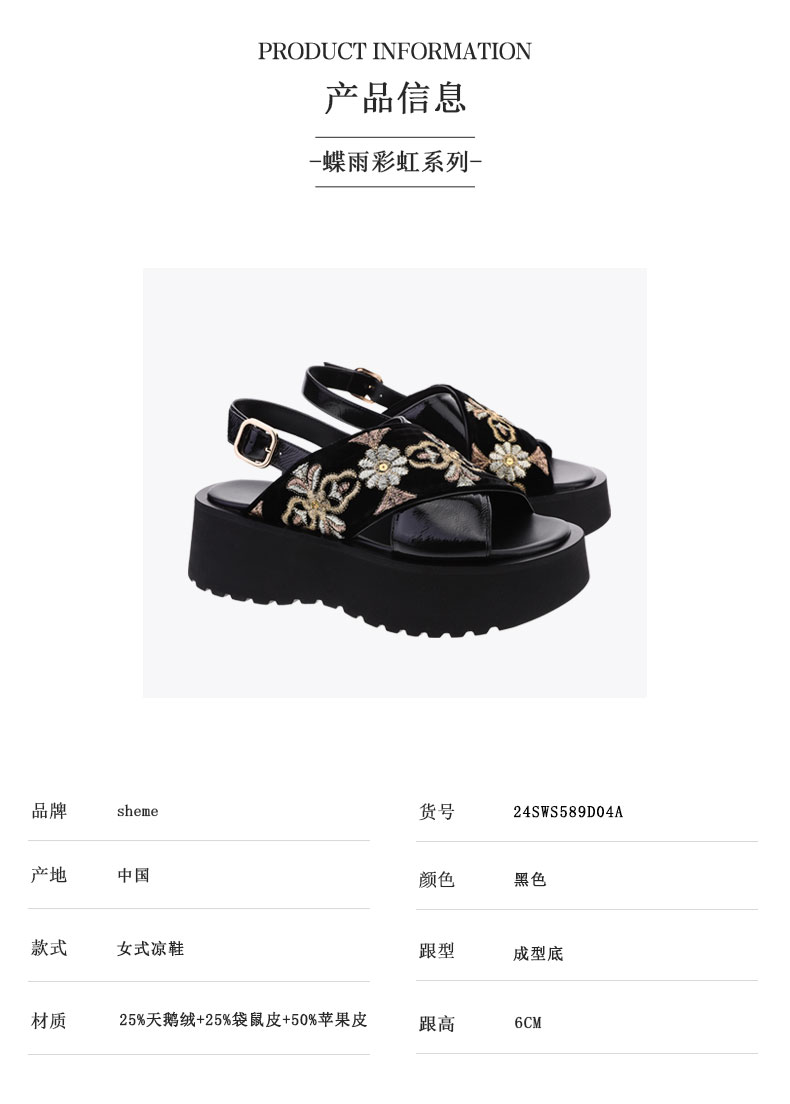 sheme蝶雨彩虹系列 刺绣点缀 厚底交叉 增高显腿长 新中式女士凉鞋可定制