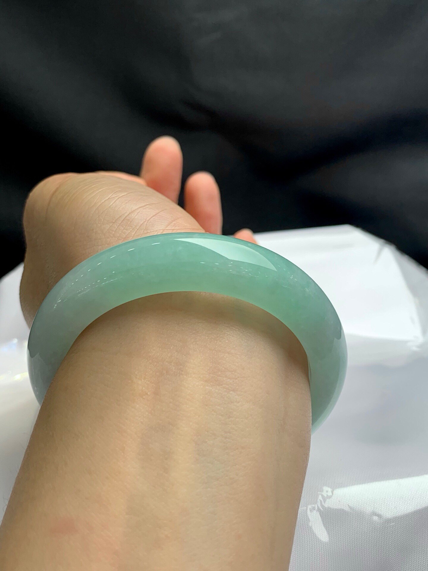 620637,56圈口,糯化果绿底正圈平安镯,种水好,底子细润,颜色清爽,完美,尺寸:55.9-13.7-8.9,超值价💰35000 #优石客珠宝#香玉荟萃