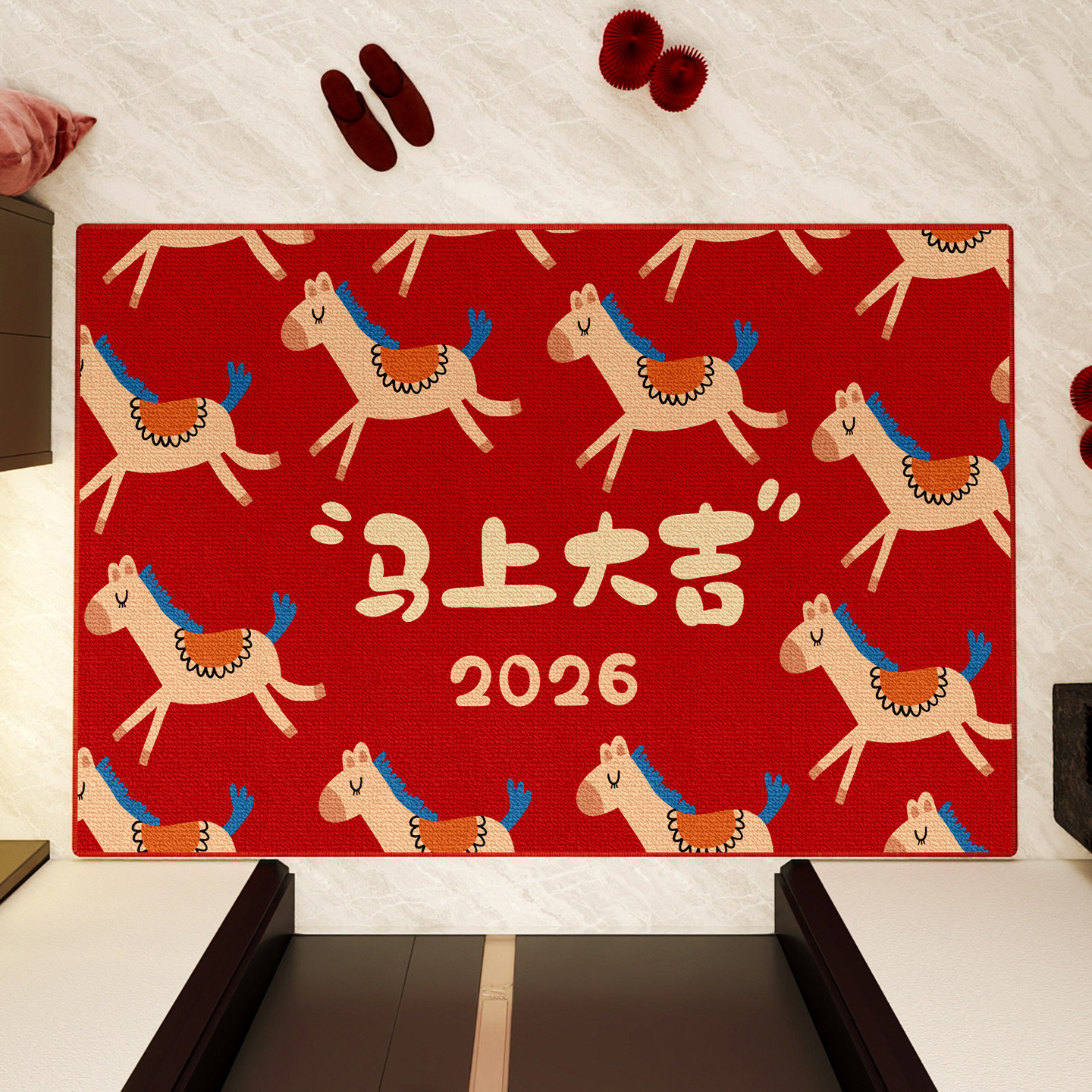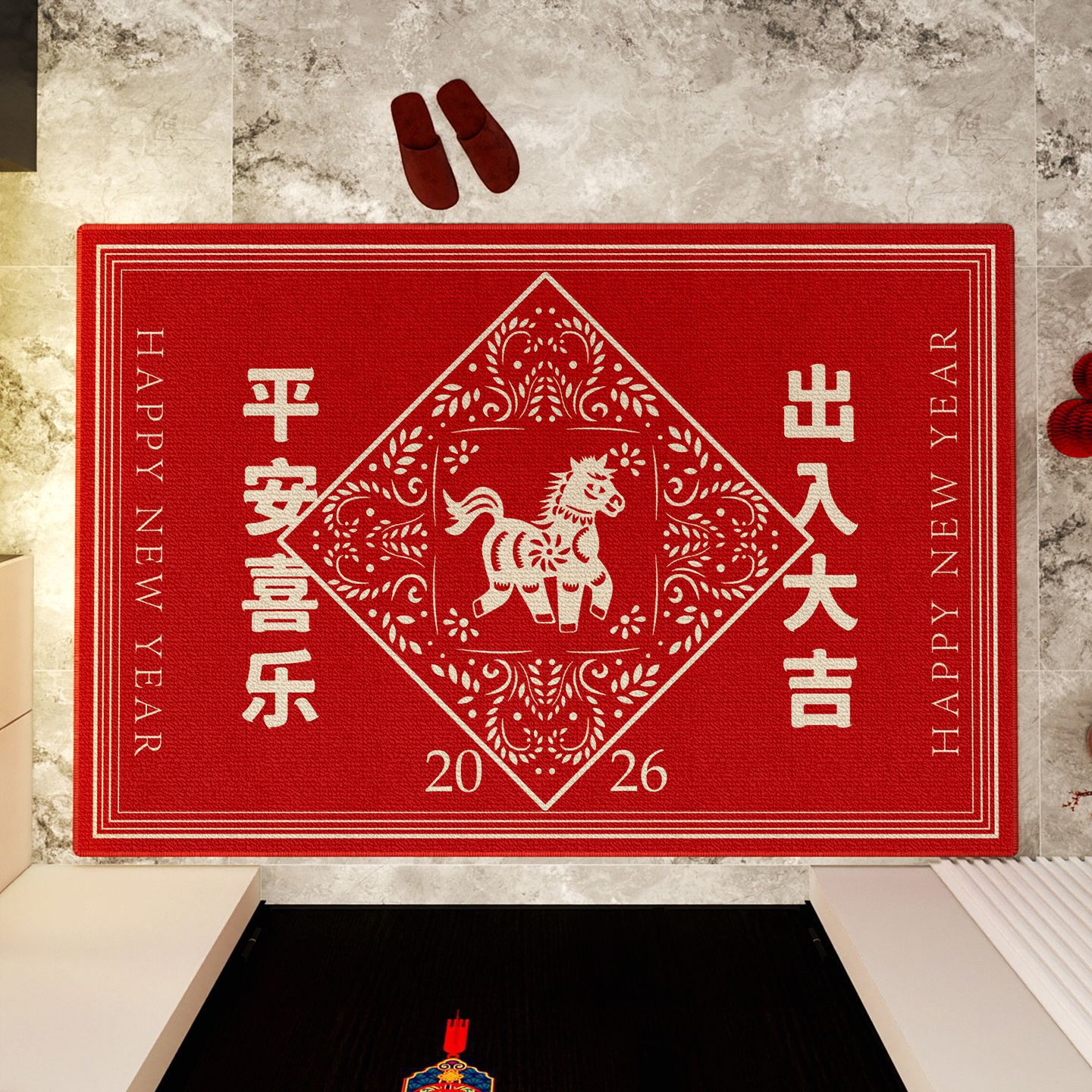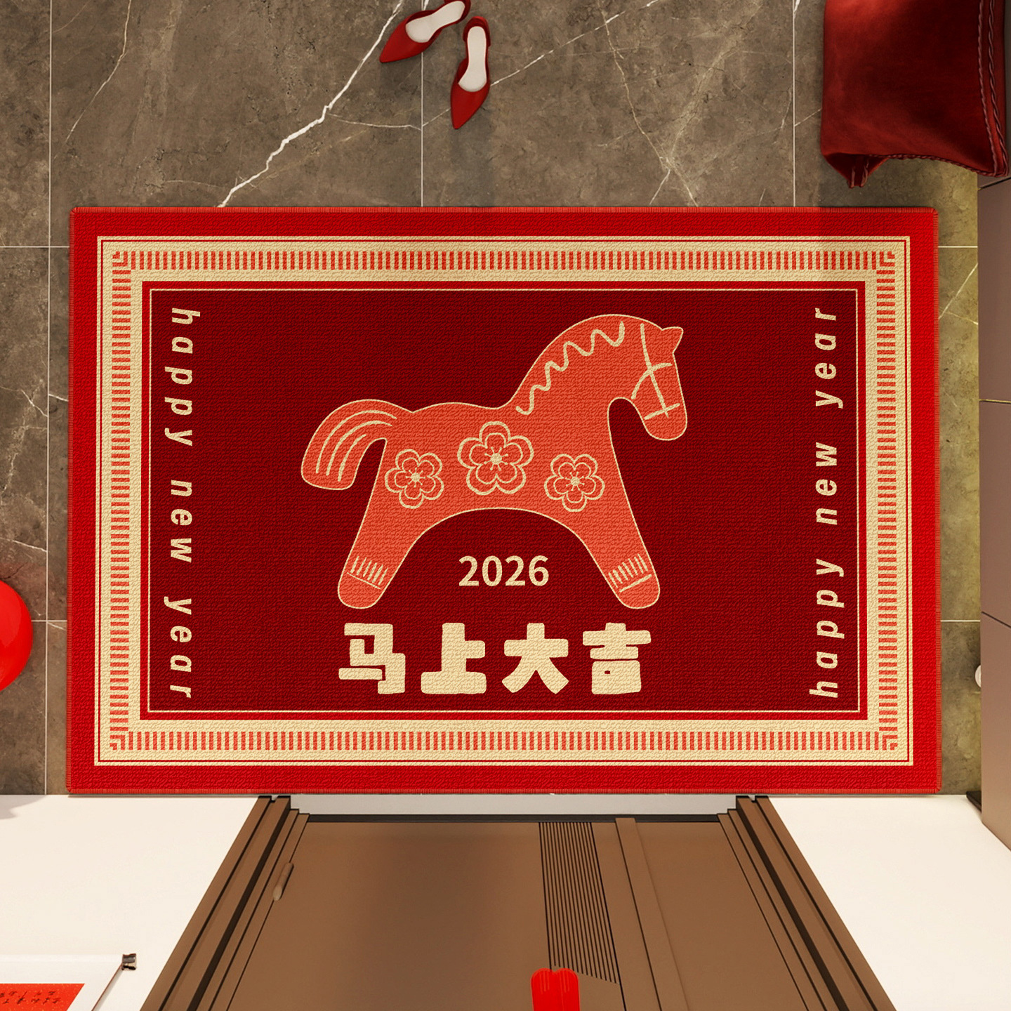 【马内多多❗️纳福接运喜庆地毯】迎春接福,好运连连,带福回家!2026马年入户门地垫水晶绒玄关可裁剪门口耐脏喜庆红门垫门外脚垫新年