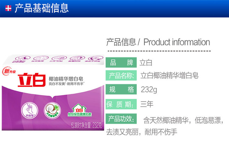 立白增白皂新椰油精华洗衣皂肥皂232g*块正品超值家庭组合装