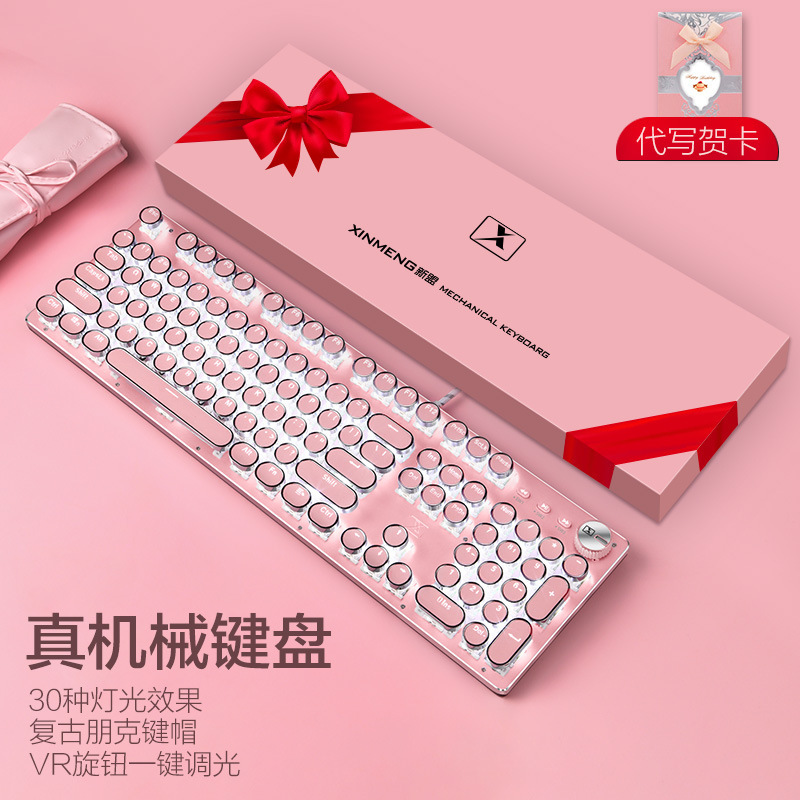 【好物推荐】新盟K901女生粉色真机械键盘青轴朋克复古圆键