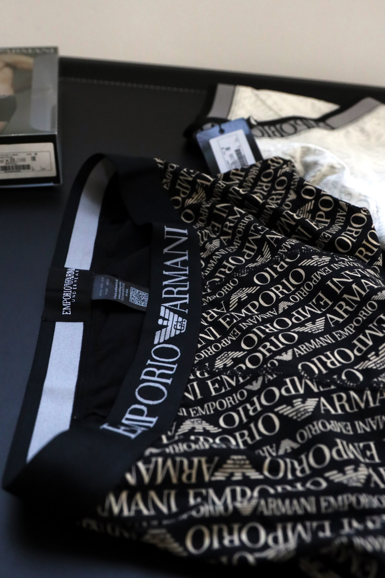 腰头都是字母提花的弹力橡筋,