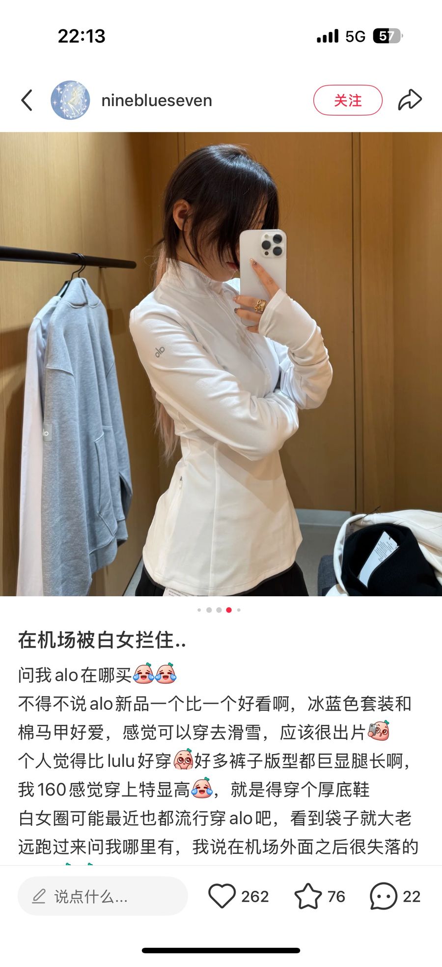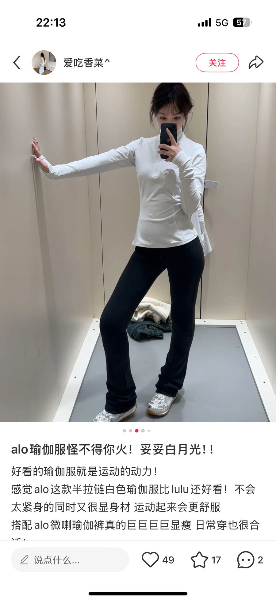 𝐚𝐥𝐨半拉链健身瑜伽服 一年四季都离不开的瑜伽服 不管是运动还是日常 都能让你穿出迷人好身材 尽情自由伸展不受限 舒适感让人上瘾 alo尽管闭眼入 绝不踩雷! 🔺🔺客供𝐀𝐥𝐨𝐬𝐨𝐟𝐭面料 定织定染纱线 裸感双面高弹 触感就像丝绒般细腻 亲肤透气不闷汗 运动穿它流畅又自由 还原真实裸感〰️ 面料自带塑形效果 上身有微压感 紧致但不勒肉 把肉肉全都藏起来 用最舒适的状态穿出最有型的姿态 穿过就懂有多绝! ⚠️关于尺码𝐒 𝐌 𝐋 𝐗𝐋可穿到170斤