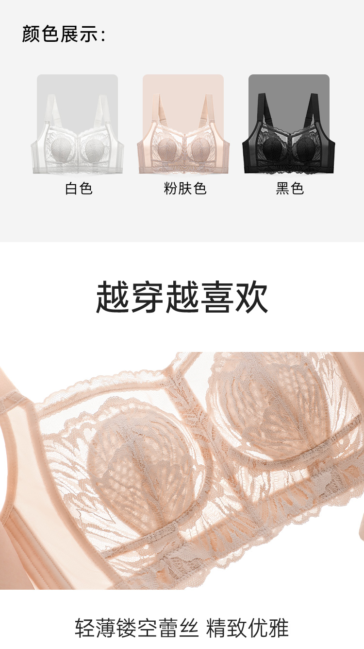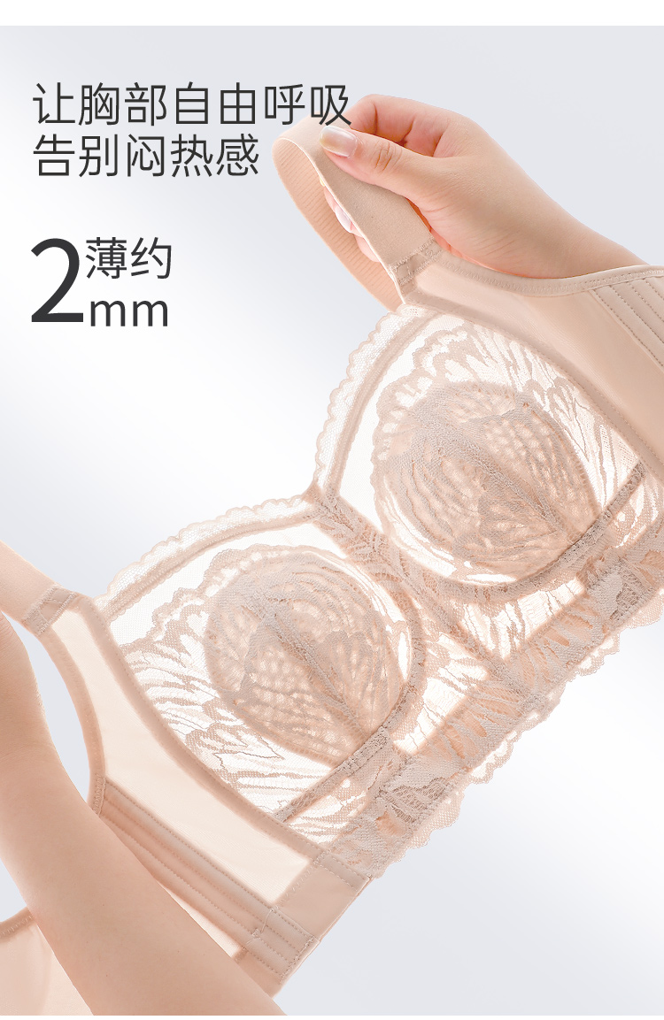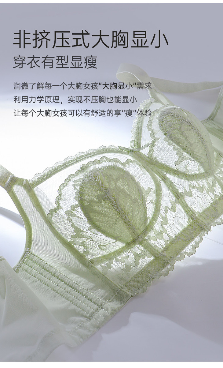 【298选3】D2-【B-E杯】【大胸显小 7A抑菌】轻薄透气蕾丝内衣女收副乳调整型薄款文胸 花藤月影