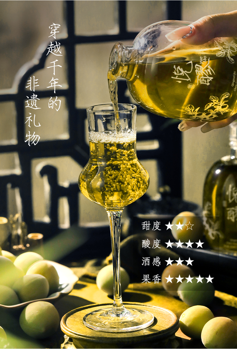 悦醪青梅酒采用沉缸手工酿造的黄酒为基酒,龙岩沉缸酒业至今已有两百多年历史,是全国为数不多的红曲酒酿造技艺得以连续传承的老字号企业。