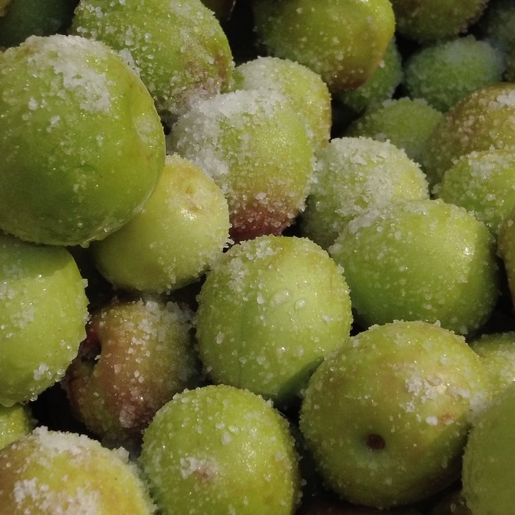 处理完的青梅还需上锅蒸煮,这一步许多的青梅酒制作是没有的,直接生青梅浸泡。