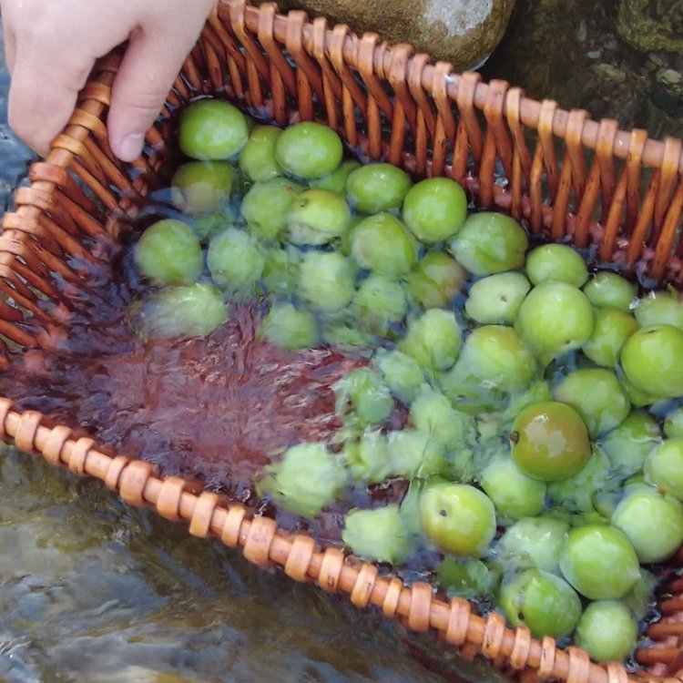 青梅采摘后需要选拿到流动的溪水进行第一遍的清洗,而后回到厂里还需要进行第二次的清理。