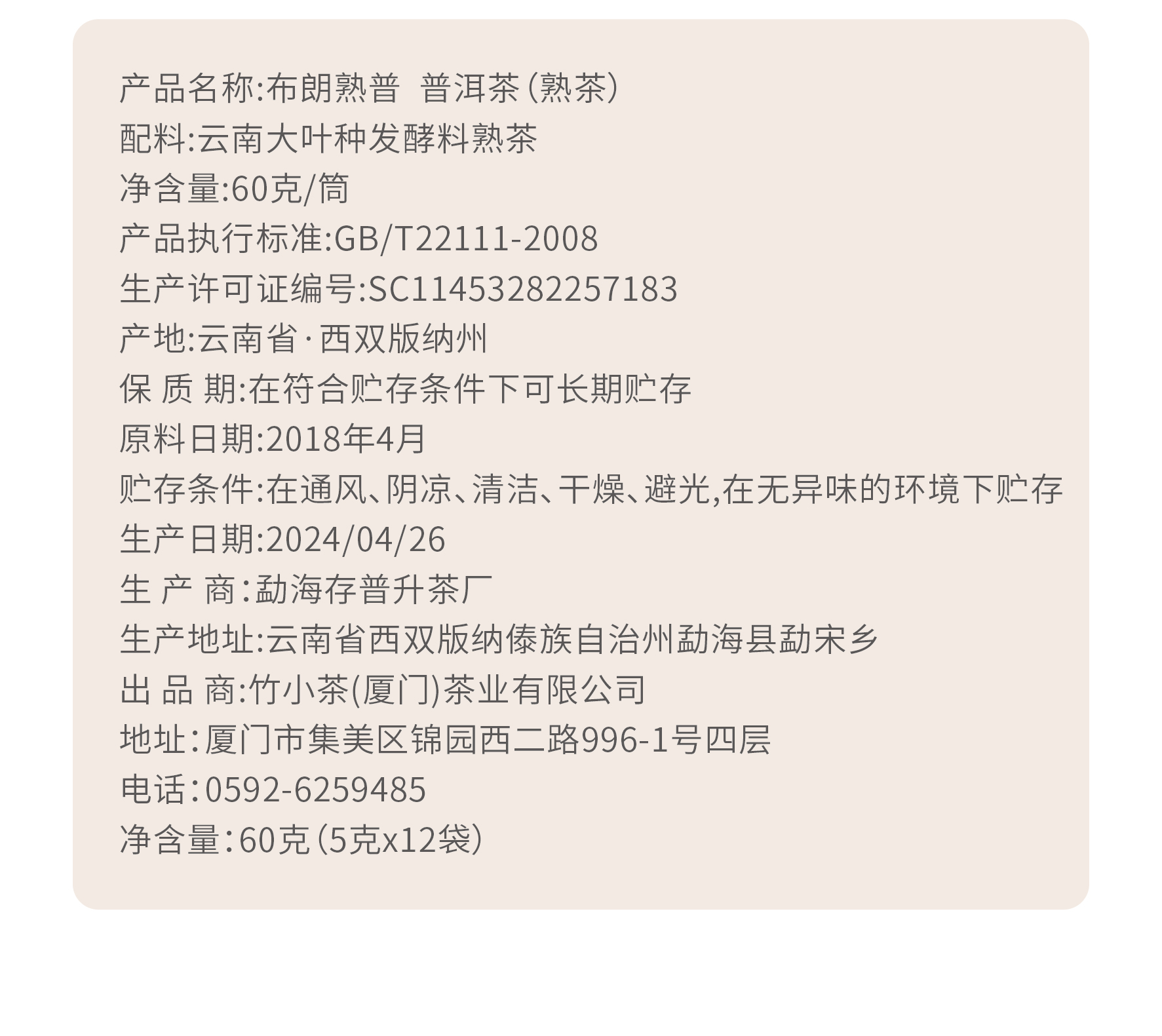 竹小茶丨布朗熟普2018年/勐宋生普2020年 龙珠 普洱熟茶/普洱生茶 60g(5g*12袋) 买2筒配手提袋