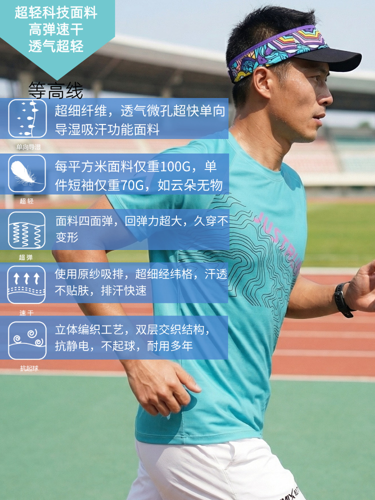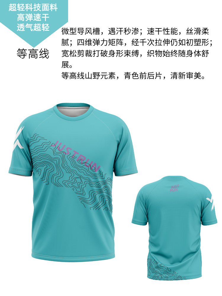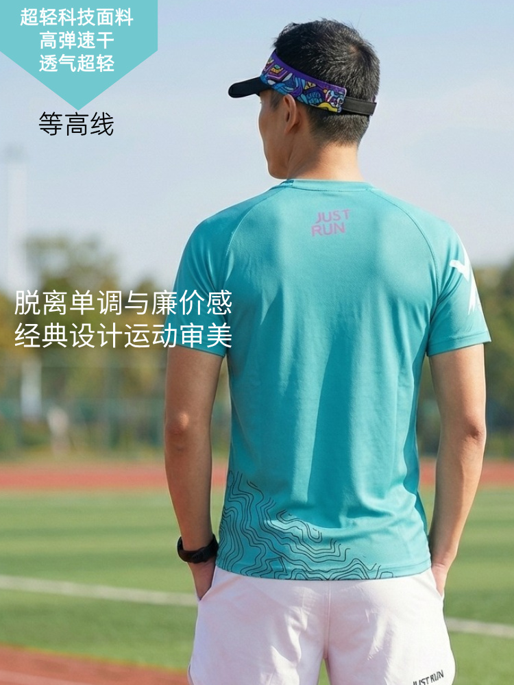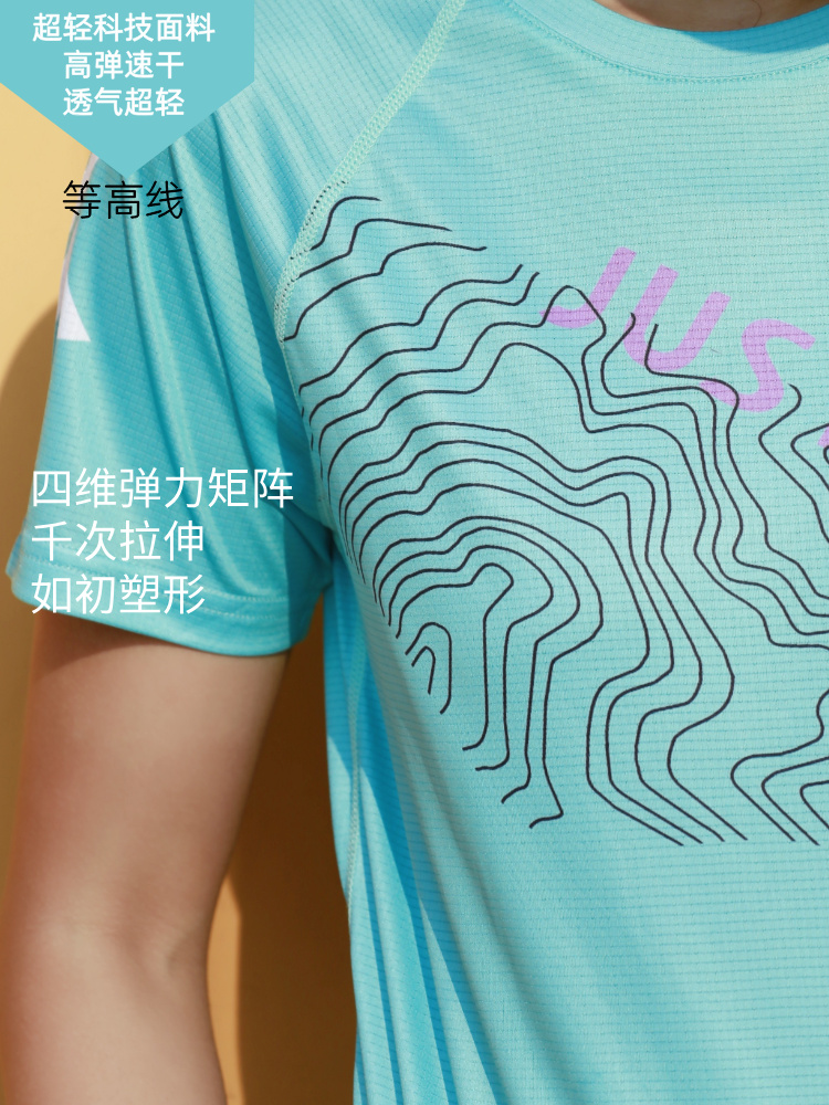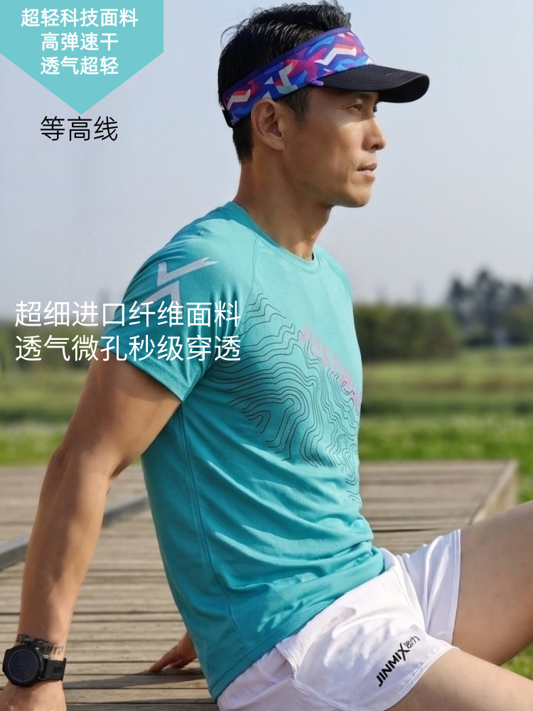 等高线轻薄透气速干宽松运动短袖男女通码