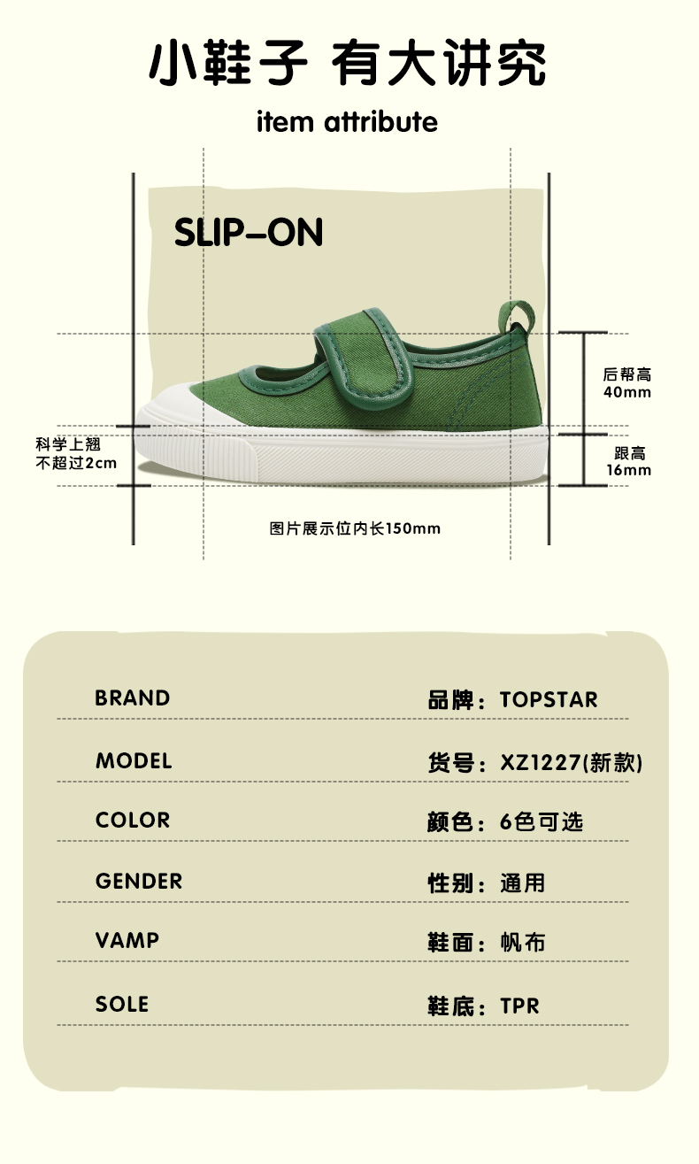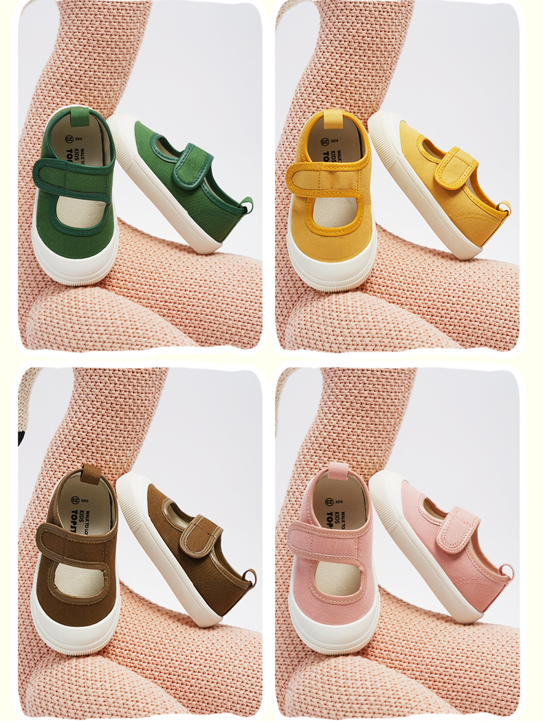 TOPSTAR官方儿童小白鞋男童帆布鞋女童幼儿园室内鞋透气软底鞋