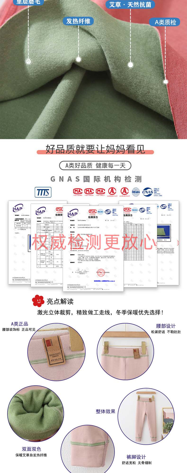 【特价清仓,抢完下架】【两条起拍,一条不发货】【A类品质,一条过寒冬】SIIJJEYY秋冬季新款儿童保暖裤内穿男童女童艾草秋裤羊毛蚕丝加绒保暖棉裤