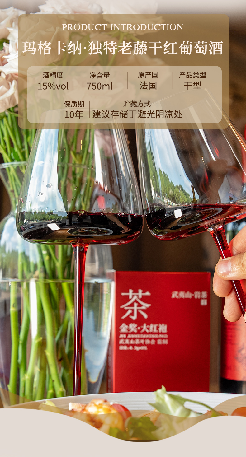 【百年酒庄酿造 法国原瓶进口 武夷山大红袍】玛格卡纳独特老藤红酒茶叶礼盒
