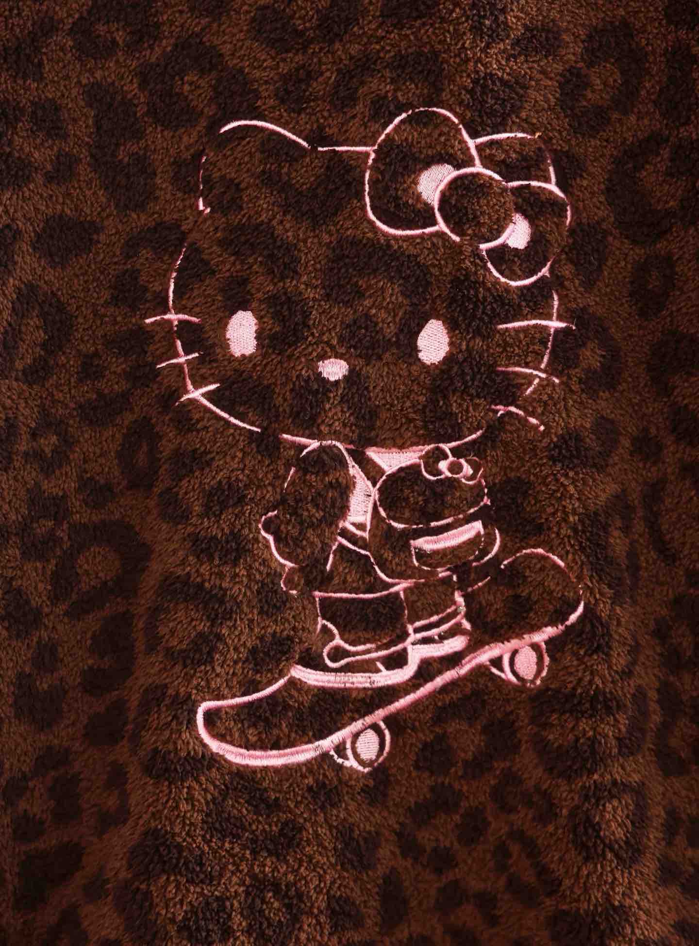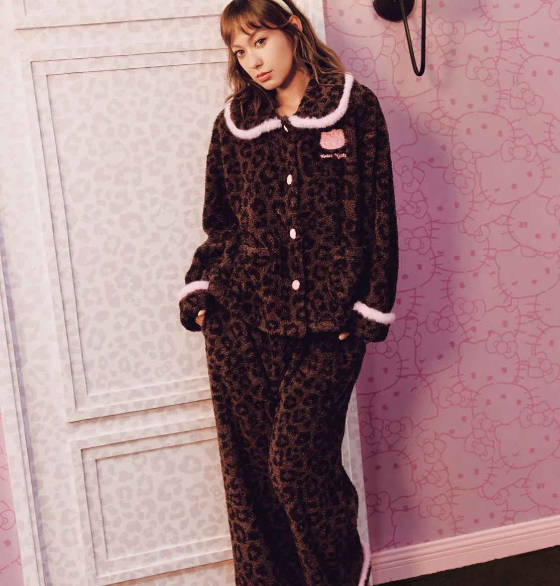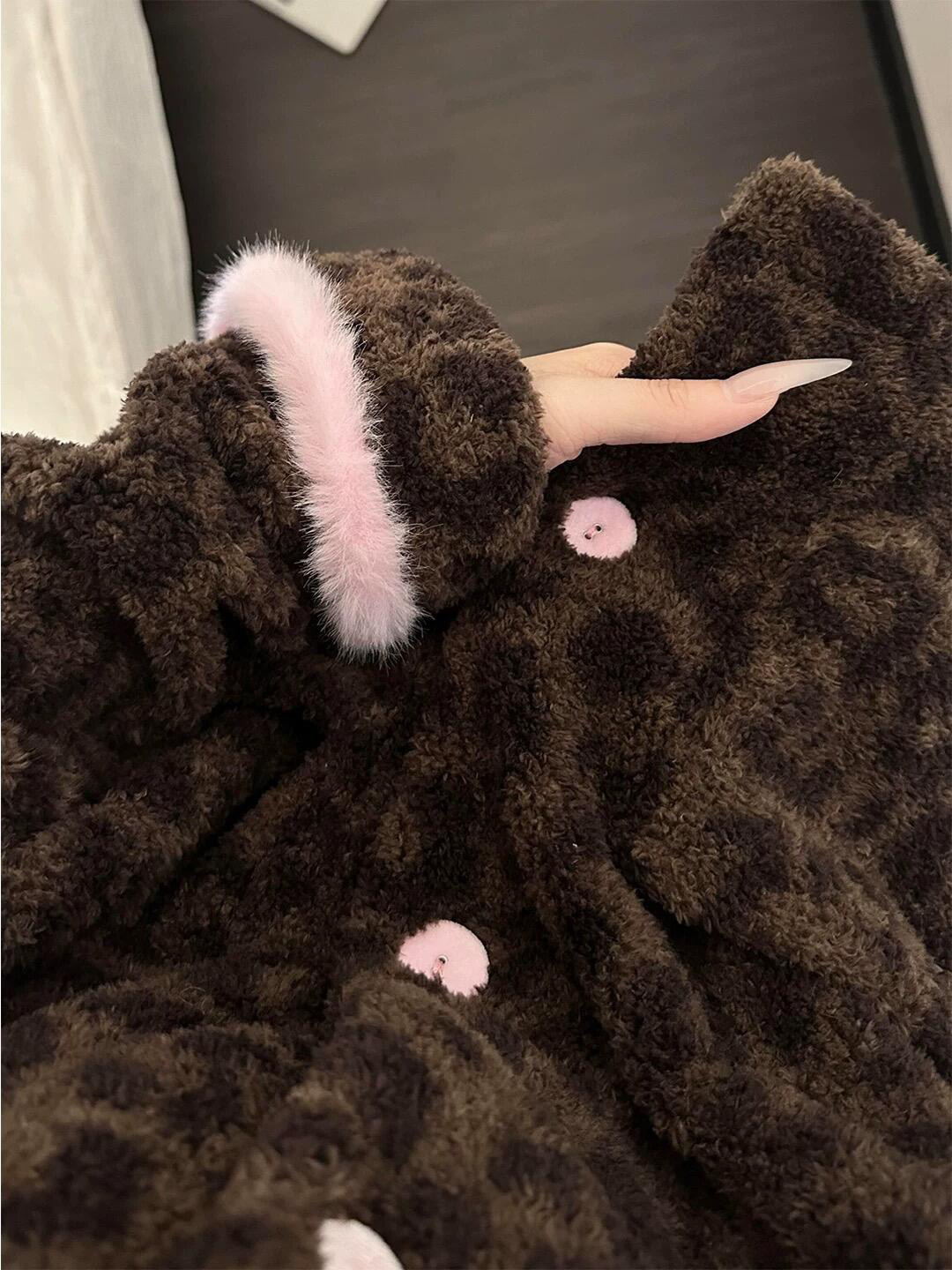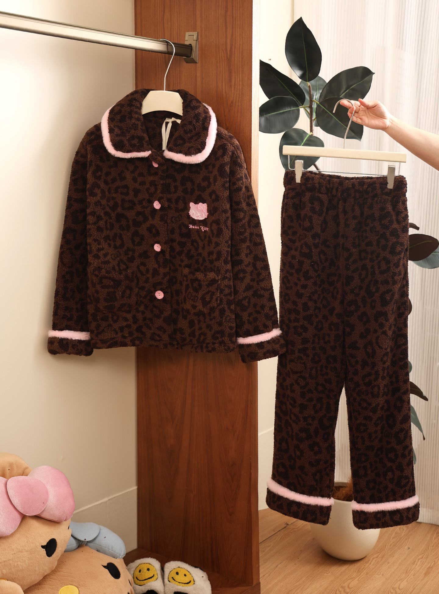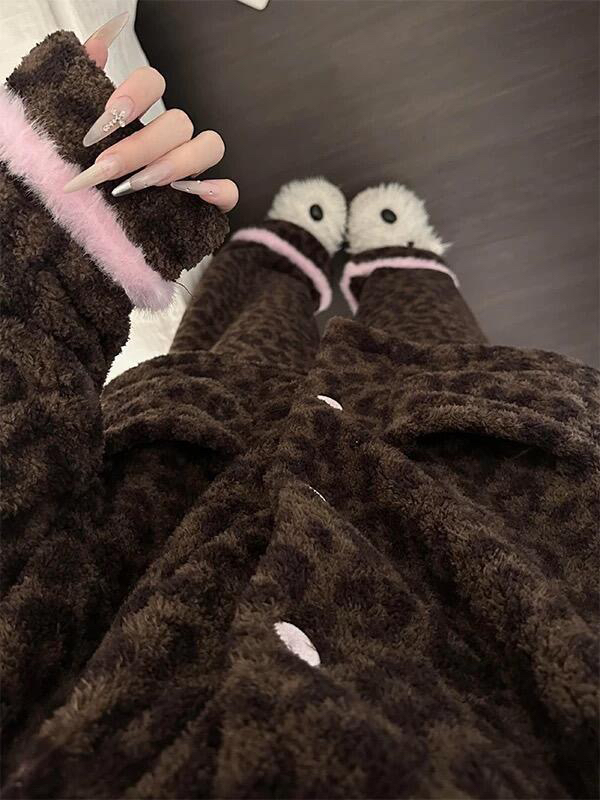 官网599!野兽家同款KITTY豹纹联名款可丽绒家居服套装 立领围巾领/撞色娃娃领 甜美可爱减龄温暖
