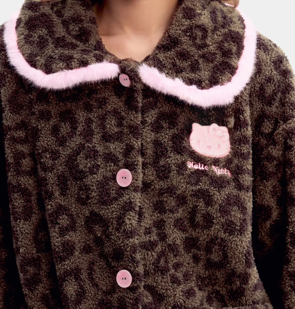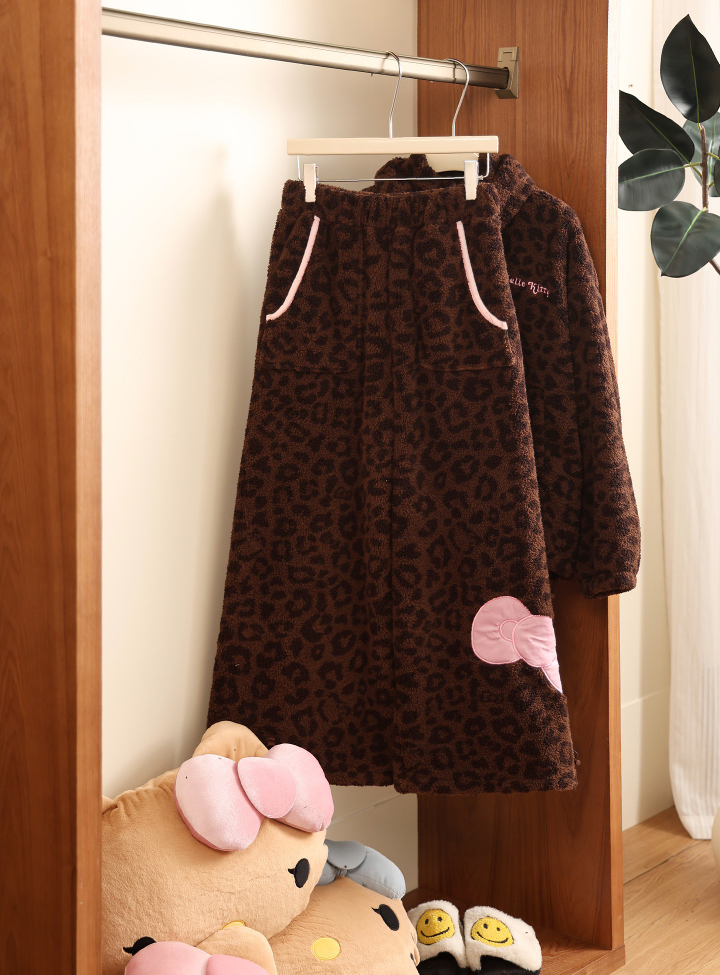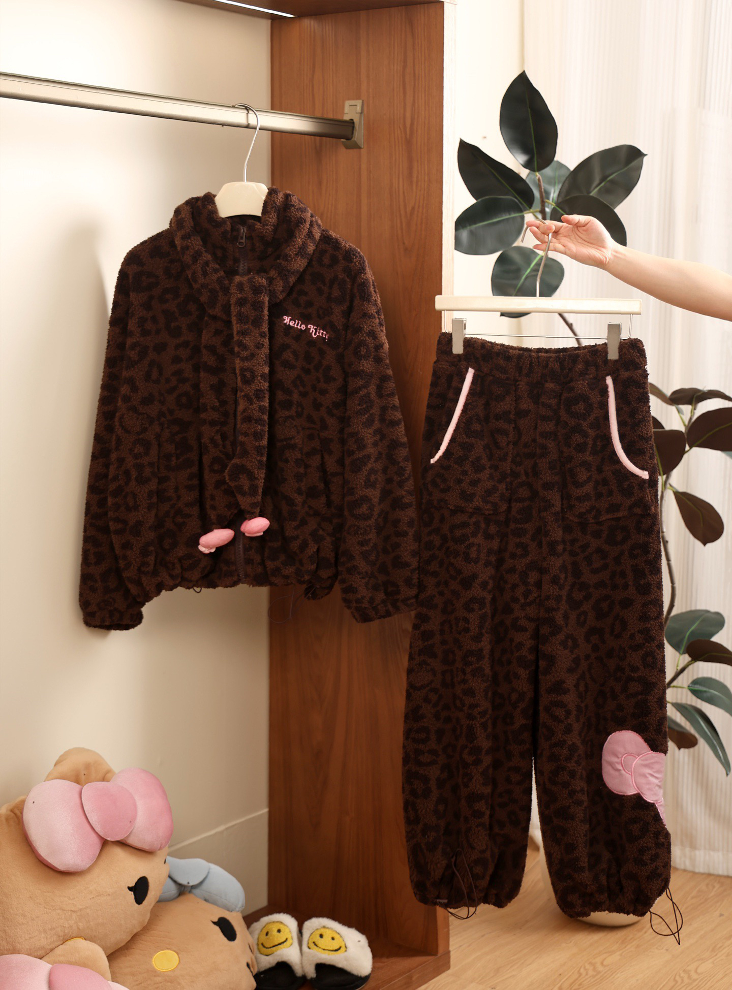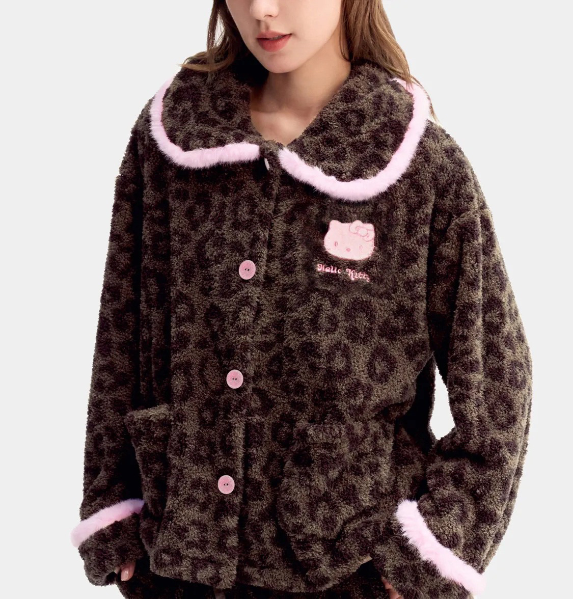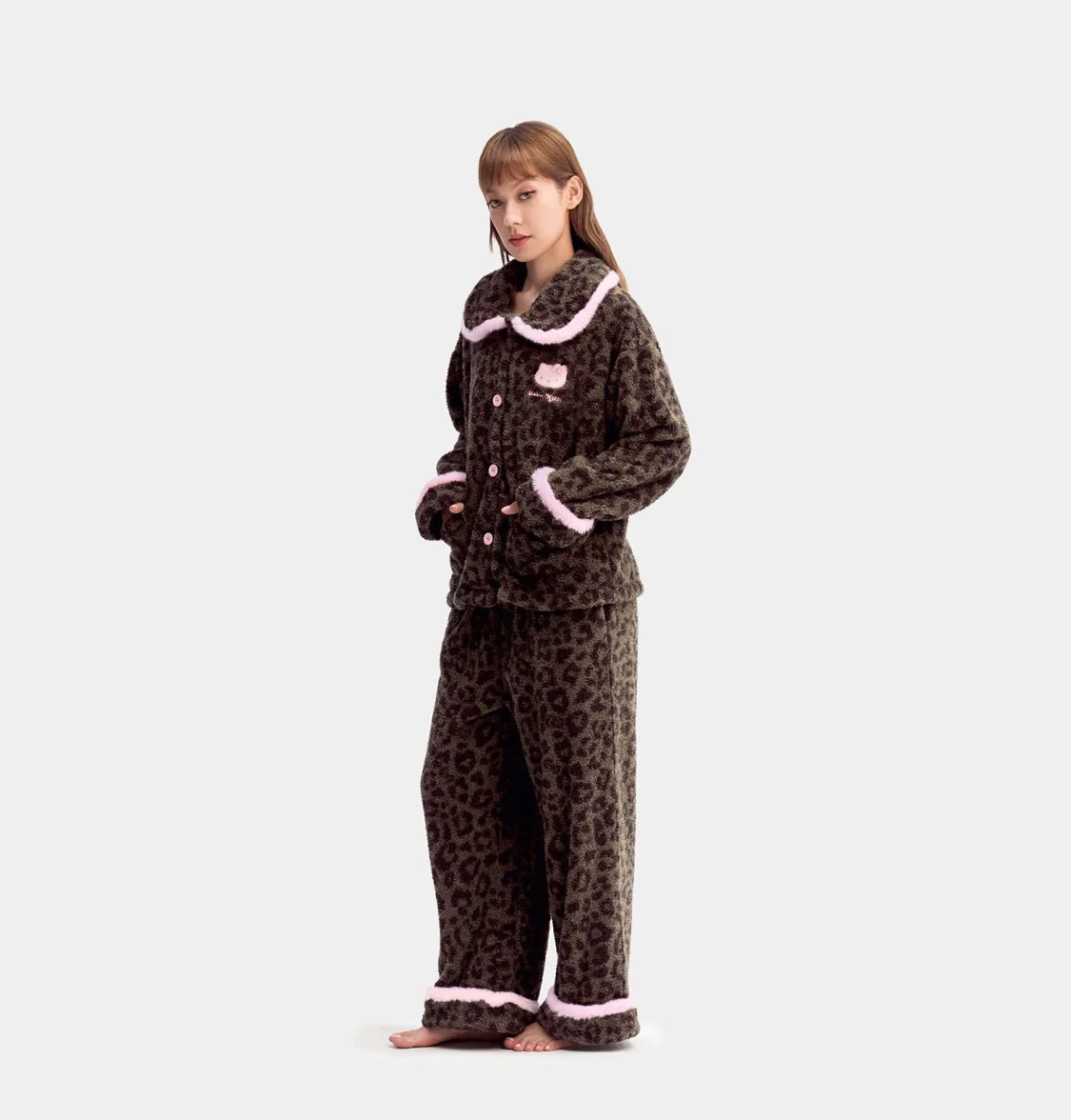 官网599!野兽家同款KITTY豹纹联名款可丽绒家居服套装 立领围巾领/撞色娃娃领 甜美可爱减龄温暖