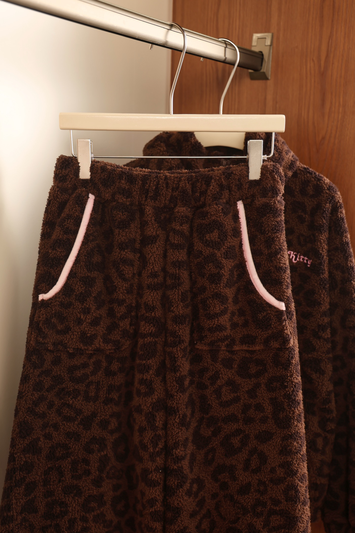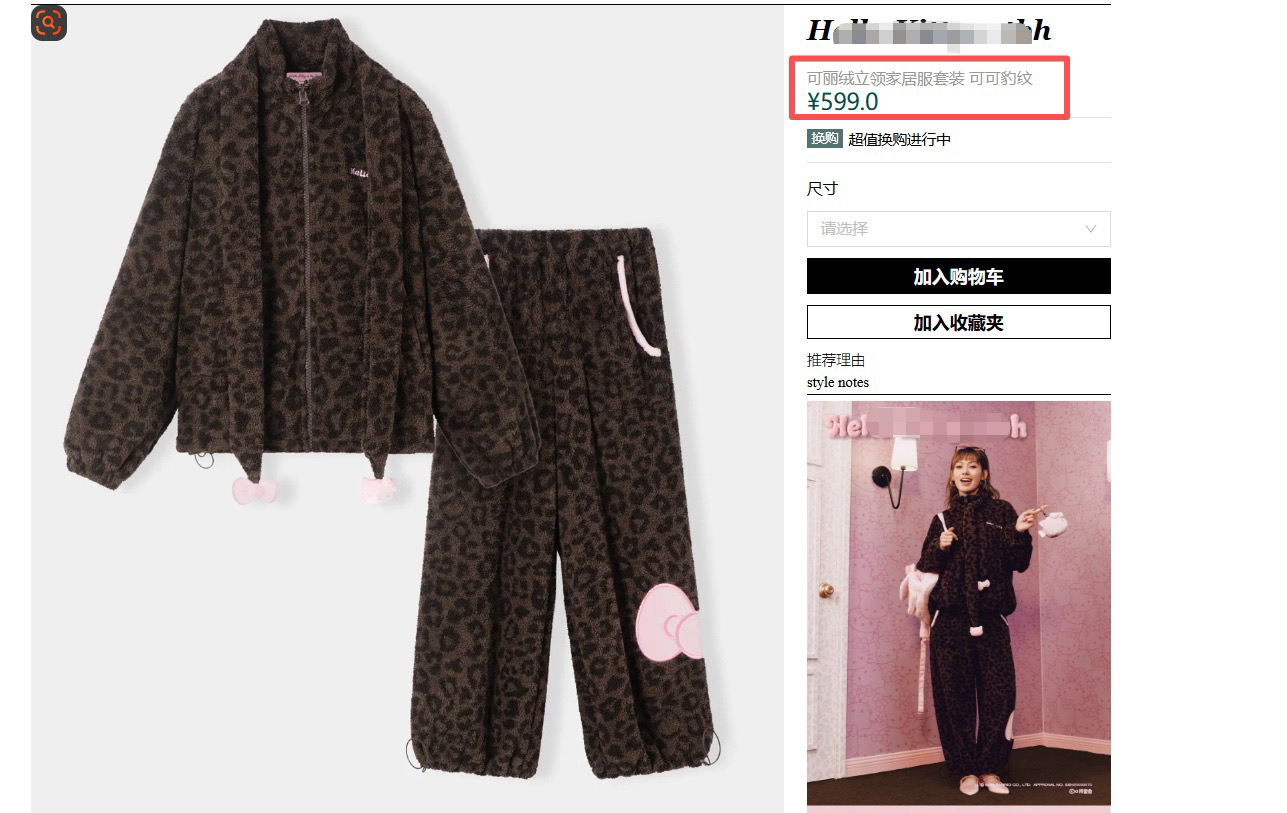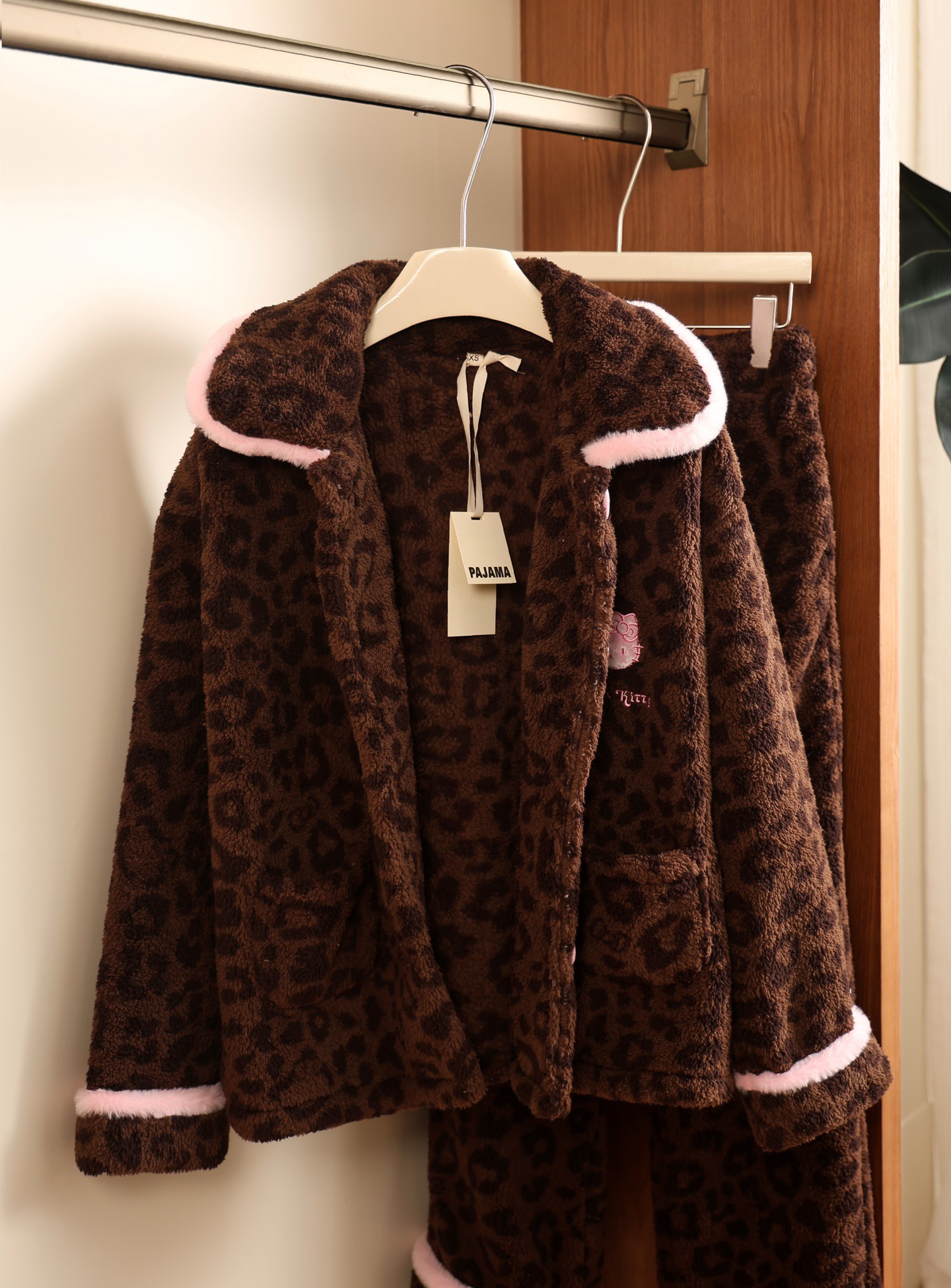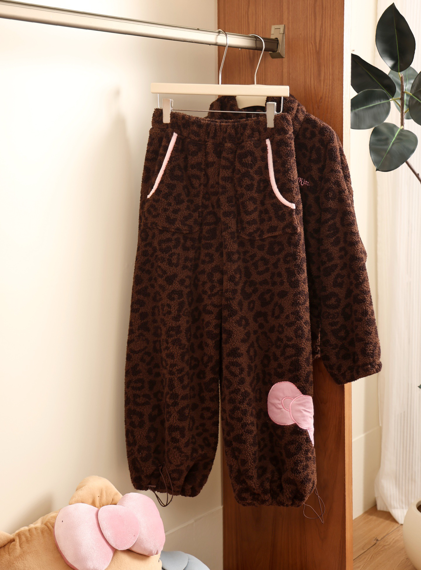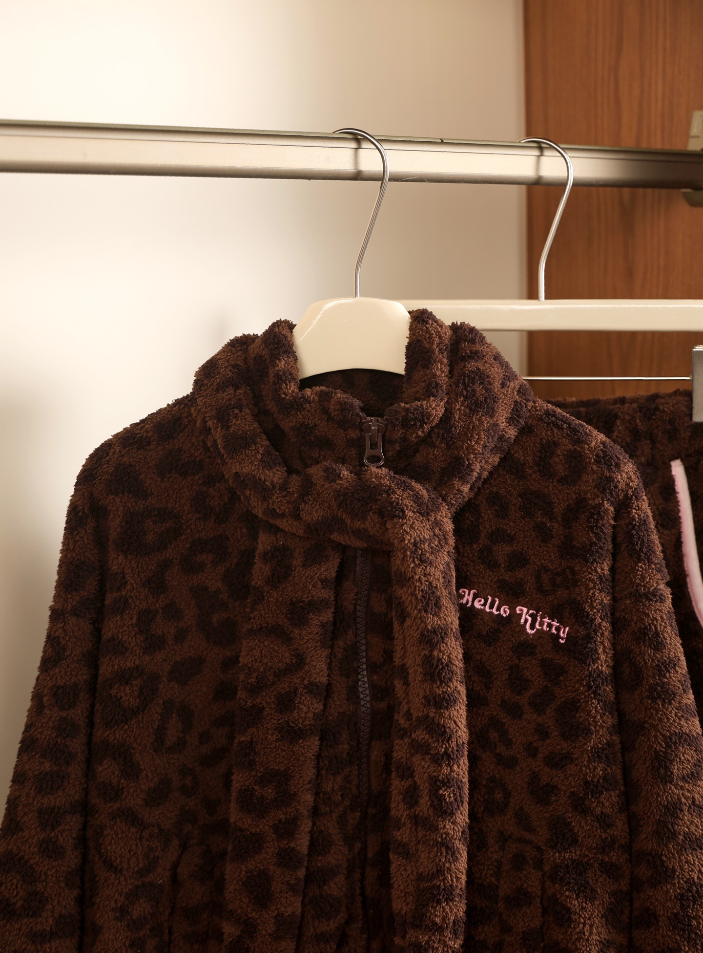 官网599!野兽家同款KITTY豹纹联名款可丽绒家居服套装 立领围巾领/撞色娃娃领 甜美可爱减龄温暖