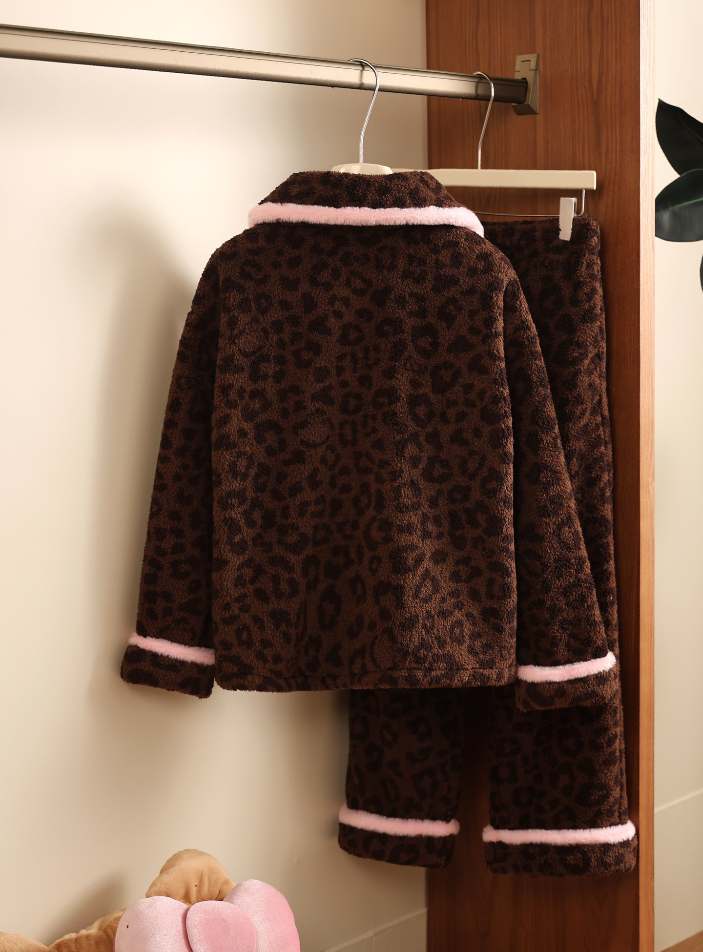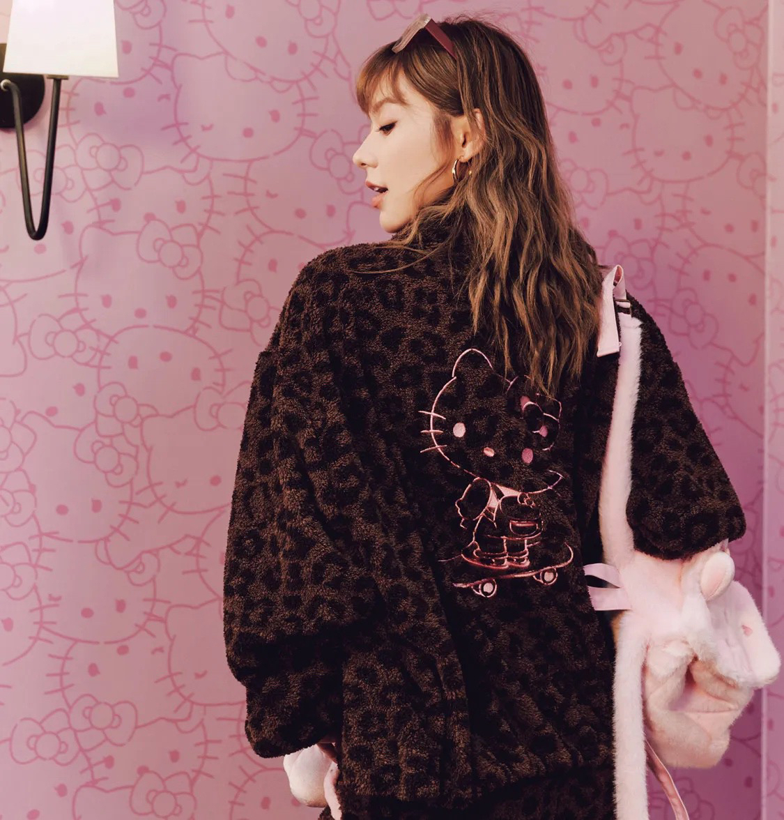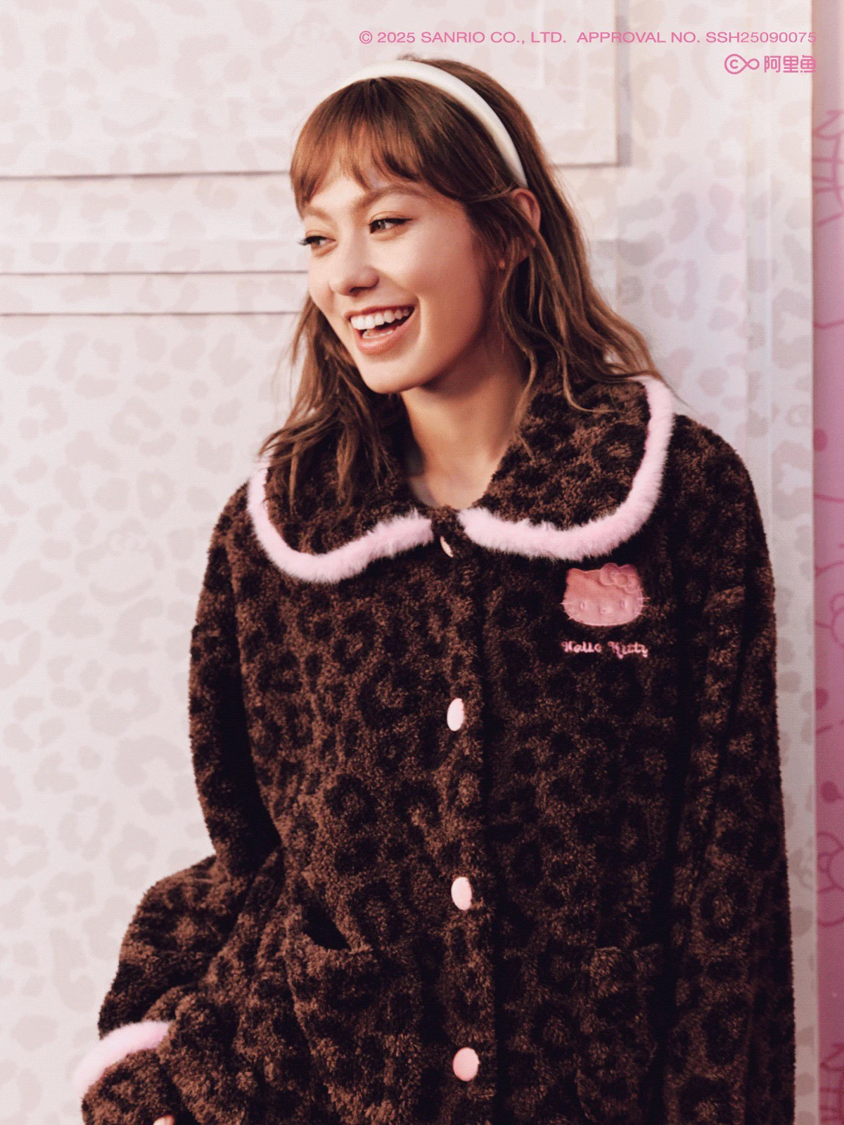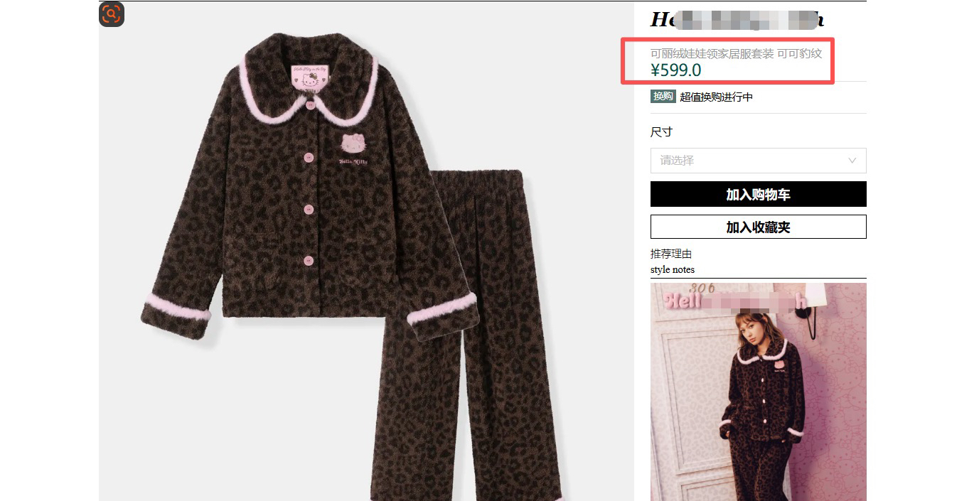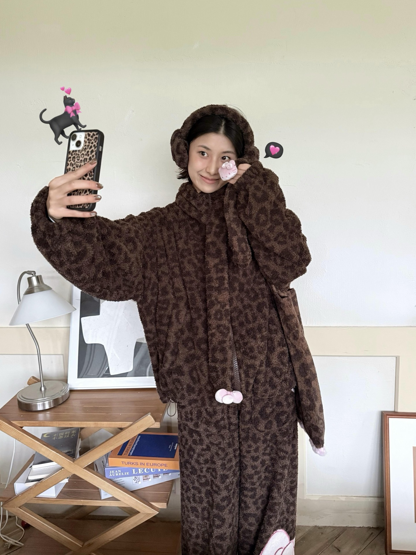 官网599!野兽家同款KITTY豹纹联名款可丽绒家居服套装 立领围巾领/撞色娃娃领 甜美可爱减龄温暖