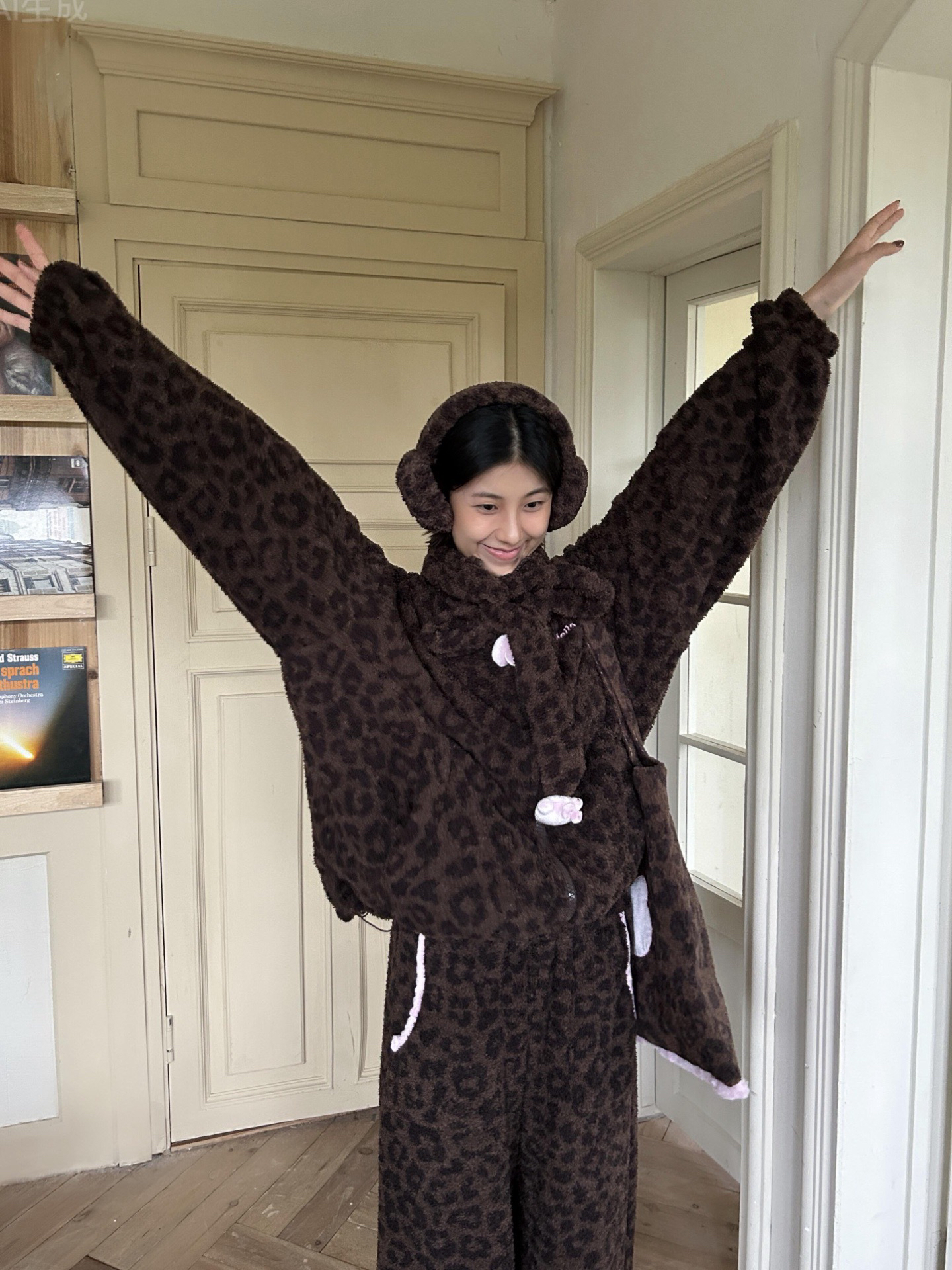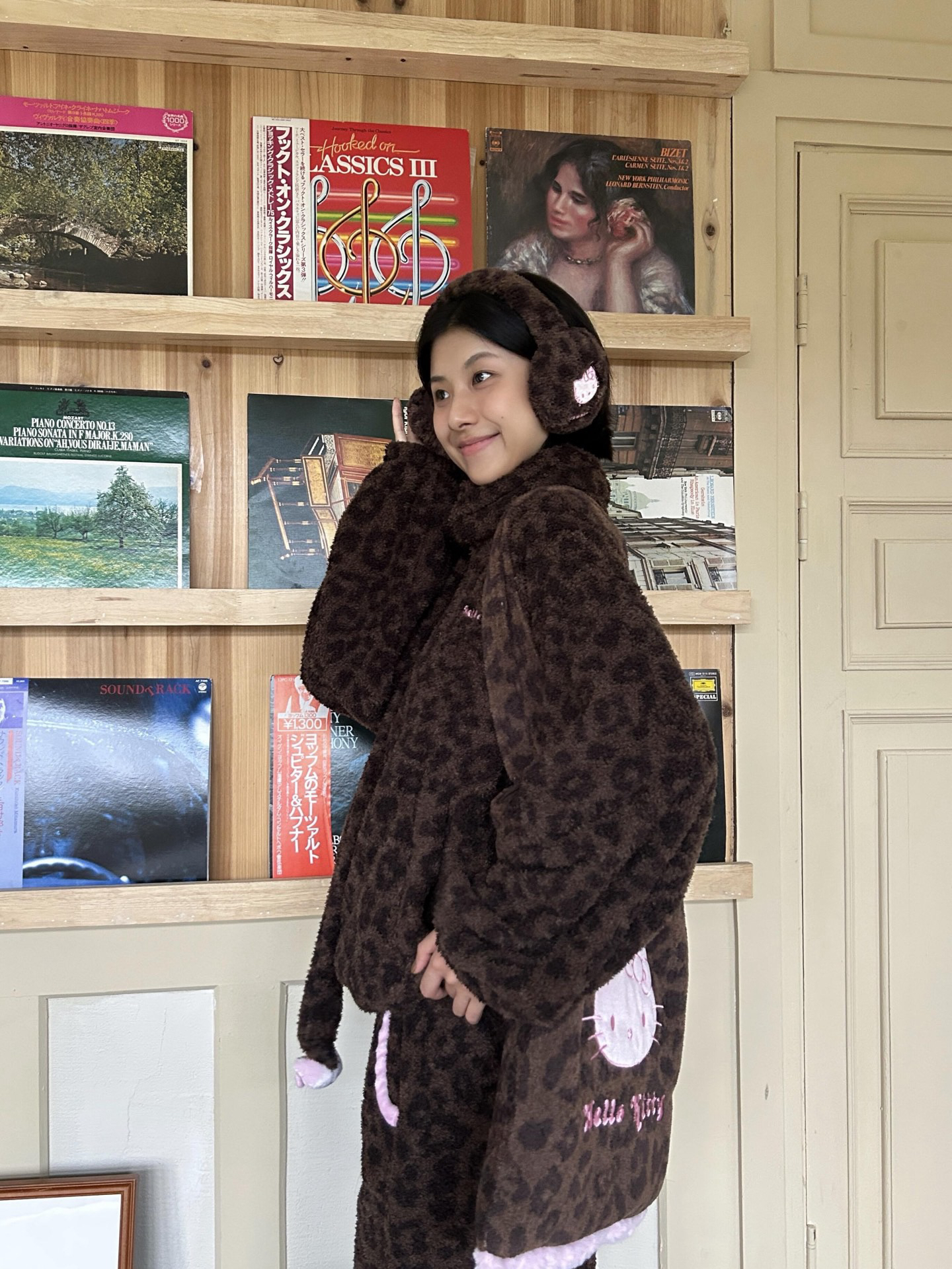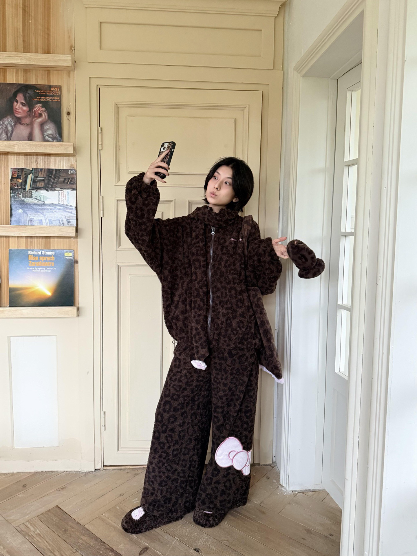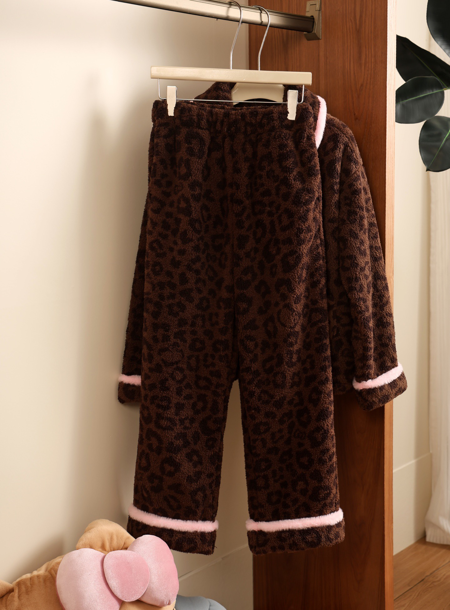 官网599!野兽家同款KITTY豹纹联名款可丽绒家居服套装 立领围巾领/撞色娃娃领 甜美可爱减龄温暖