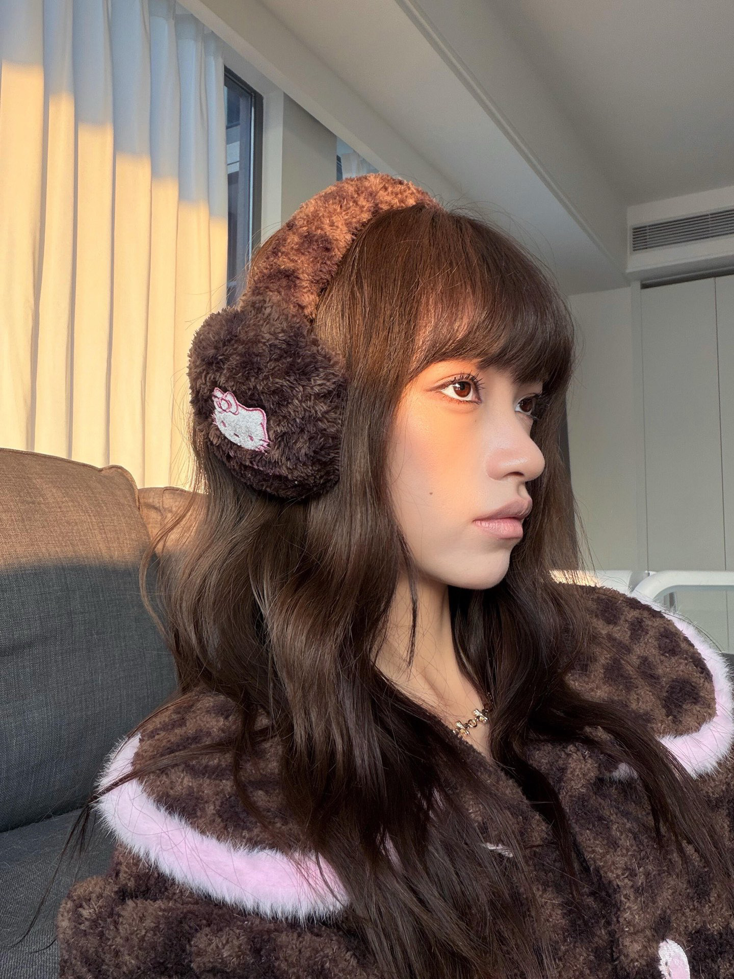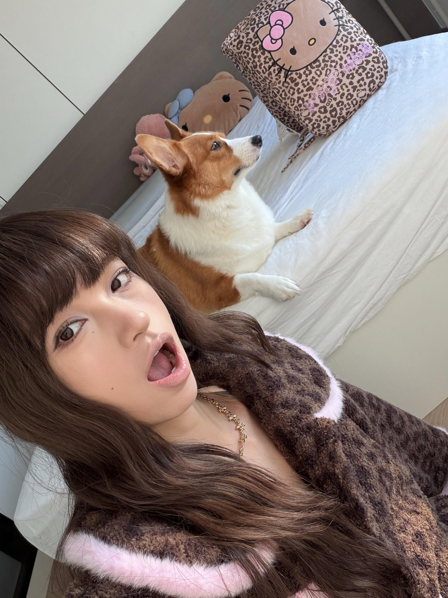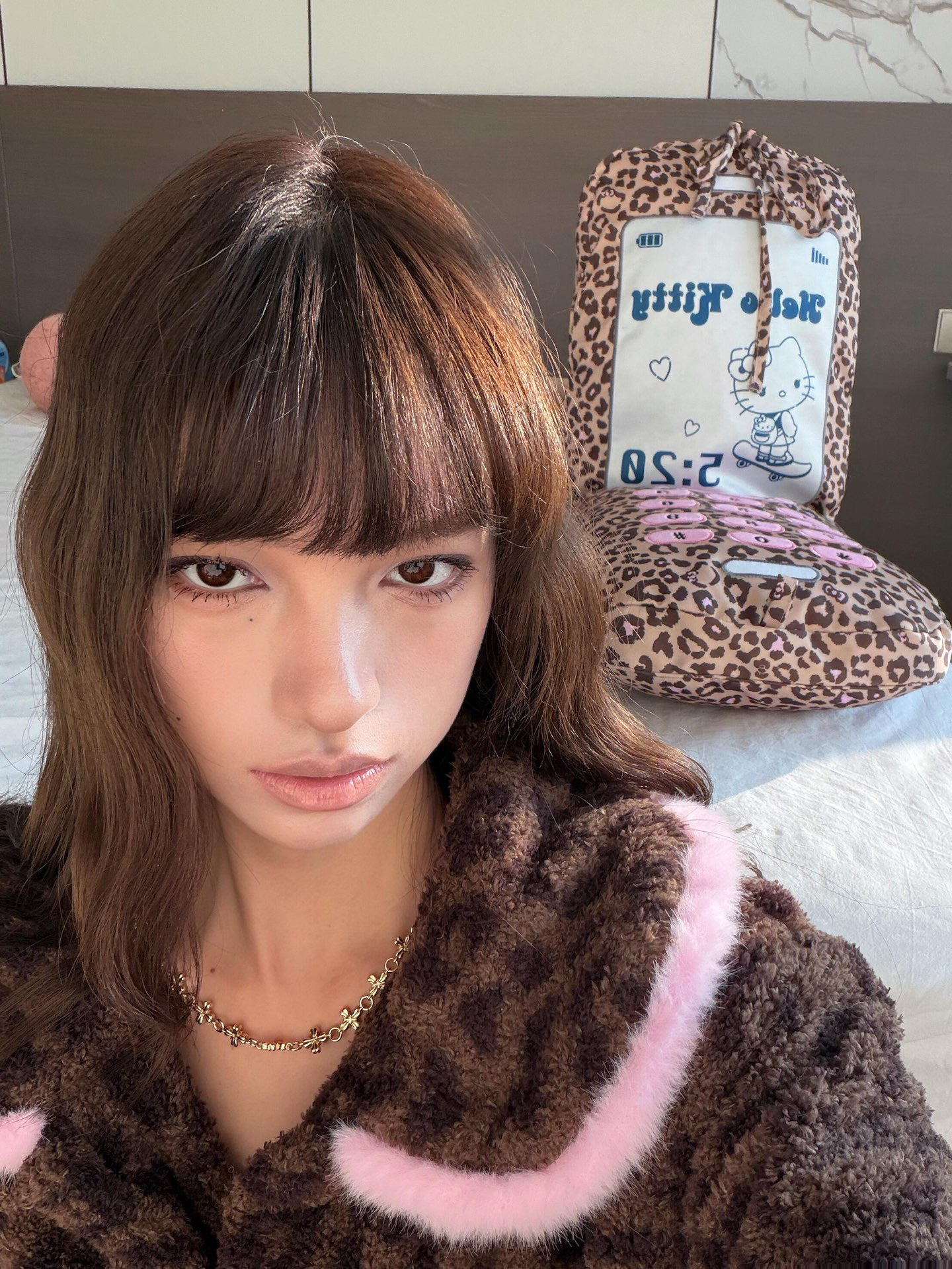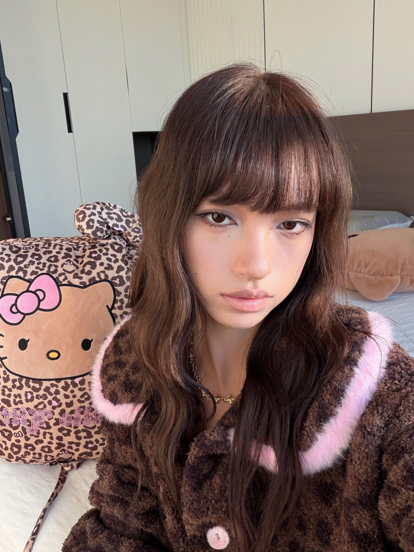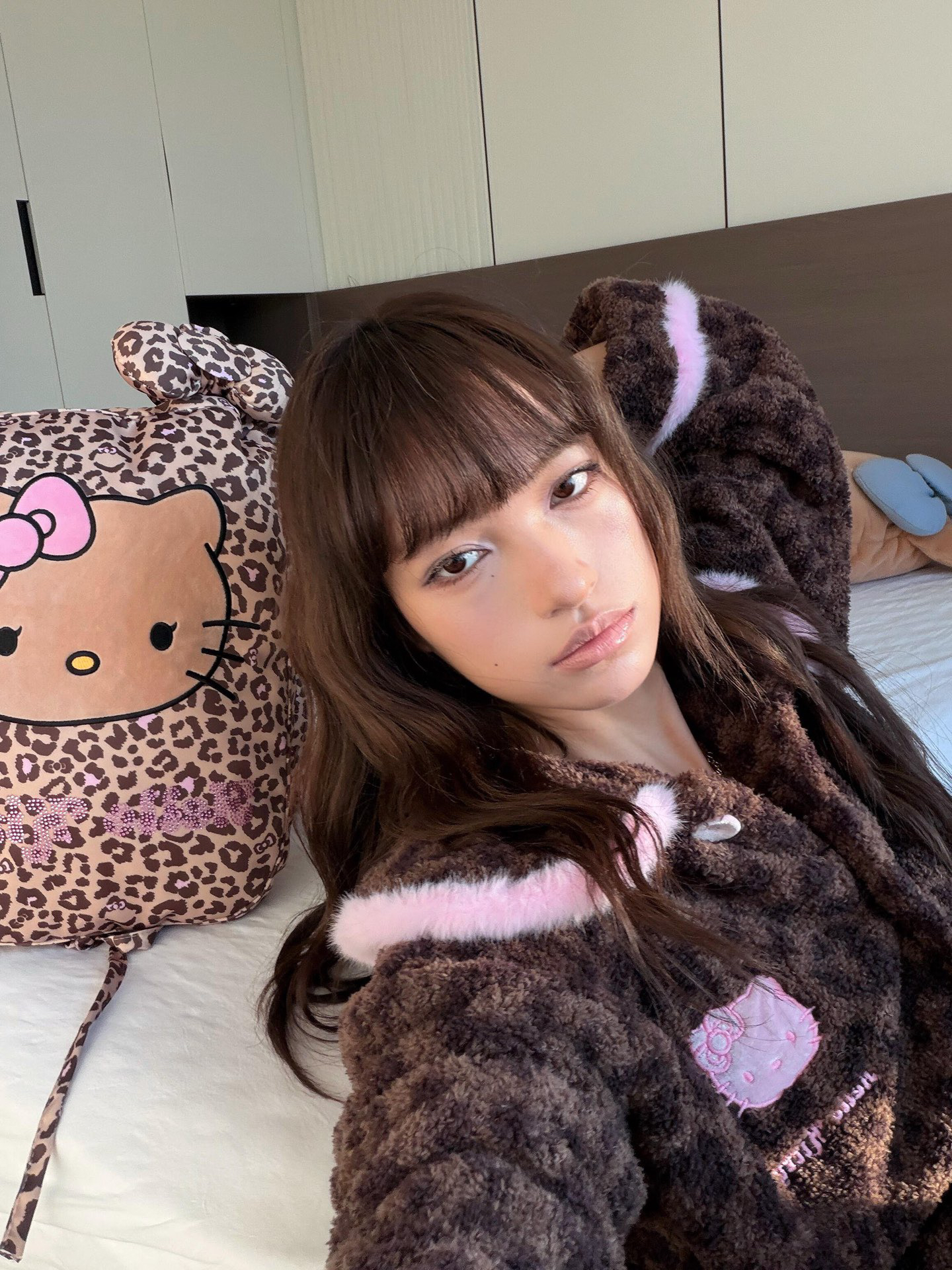 官网599!野兽家同款KITTY豹纹联名款可丽绒家居服套装 立领围巾领/撞色娃娃领 甜美可爱减龄温暖