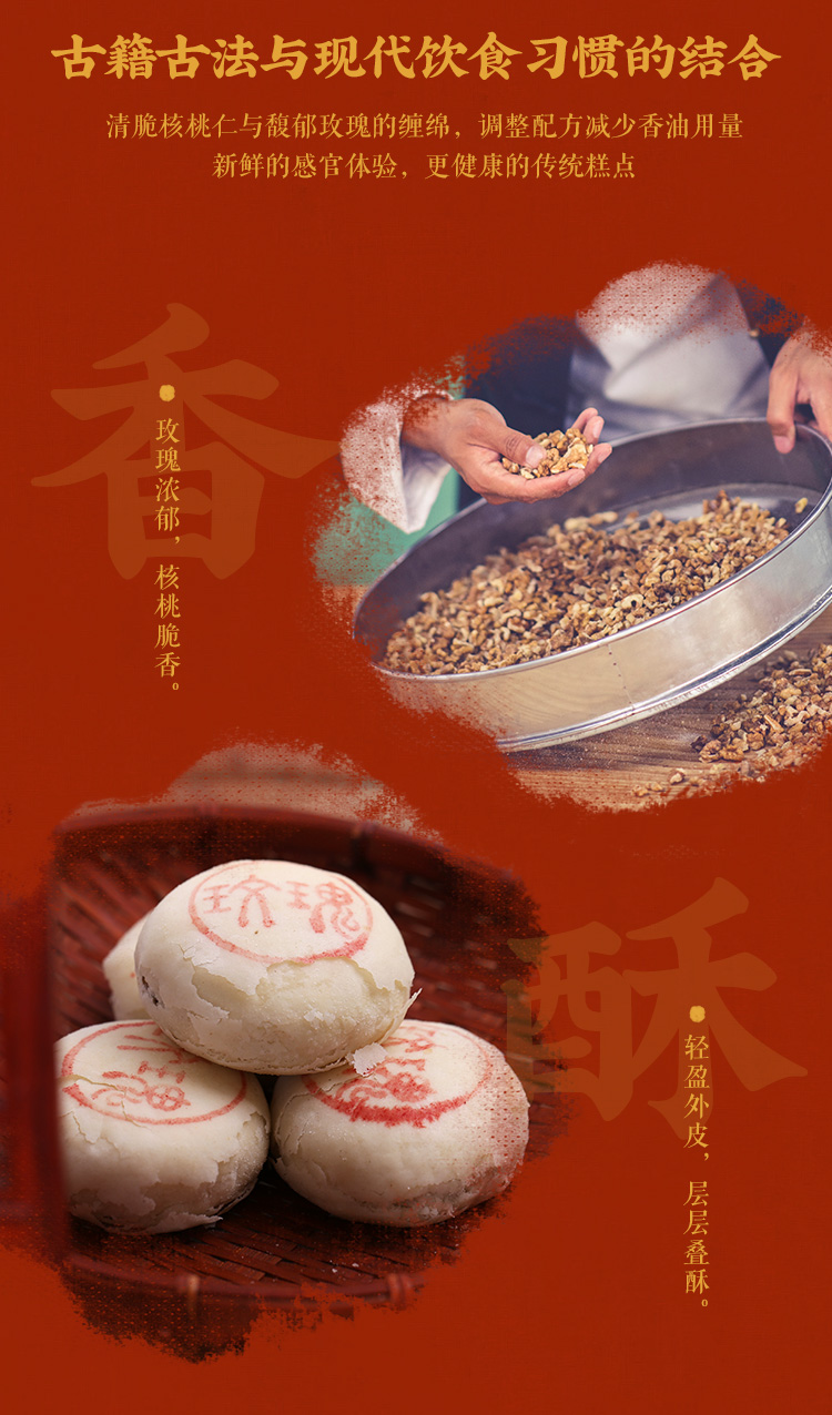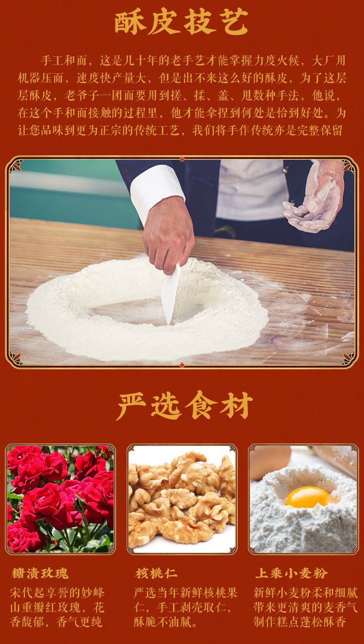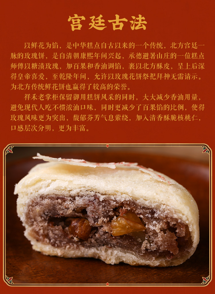 【一口玫瑰香】祥禾饽饽铺 传统酥点 玫瑰核桃白皮经典包装 12枚500g