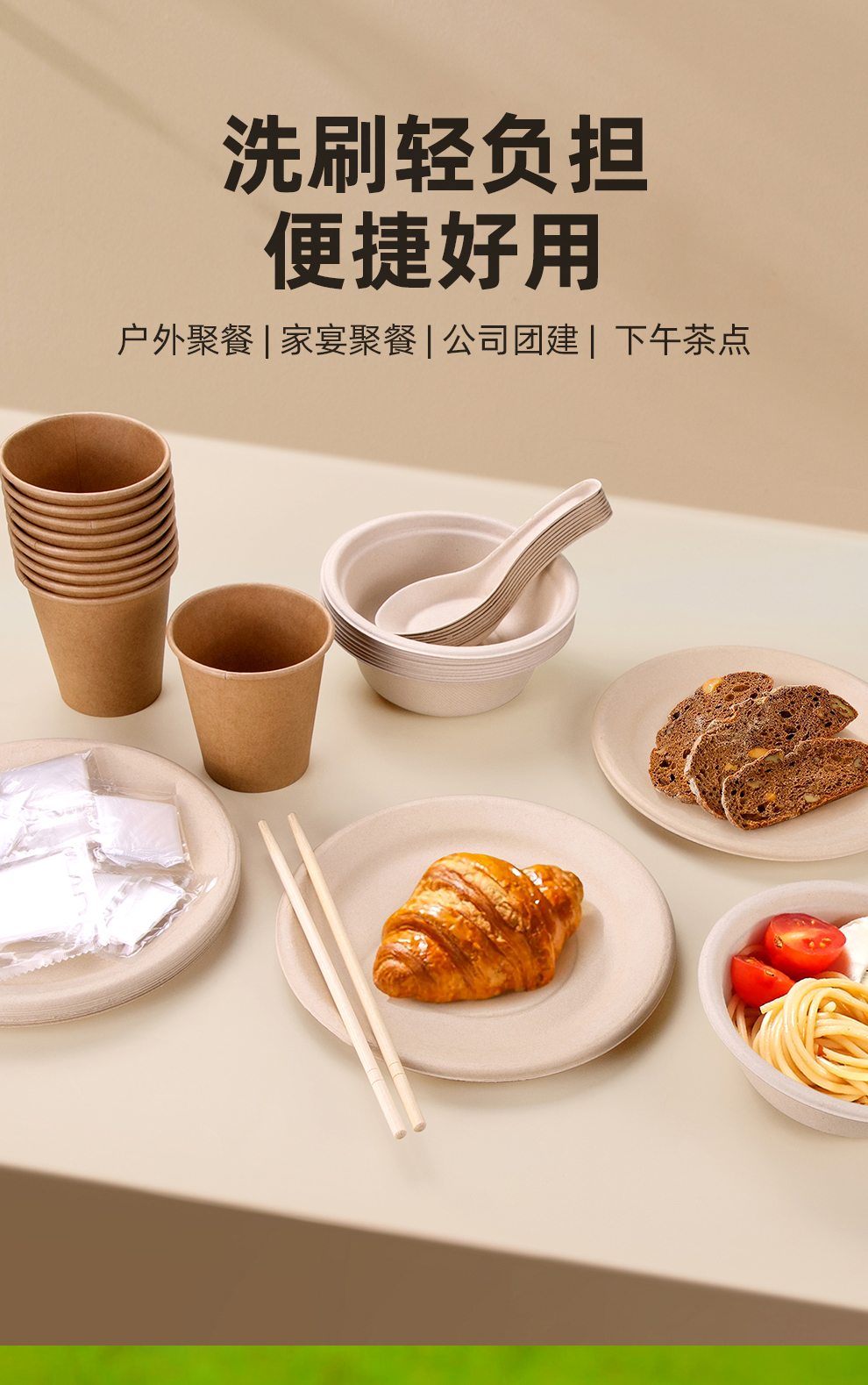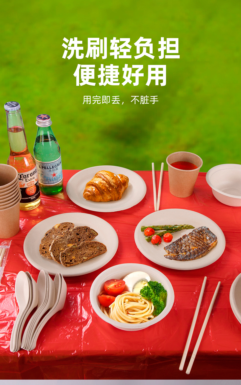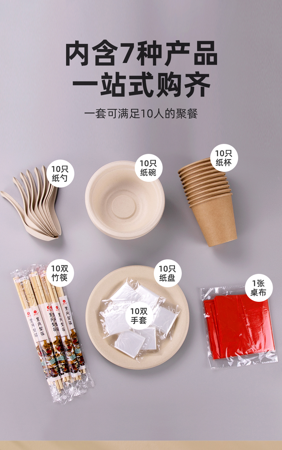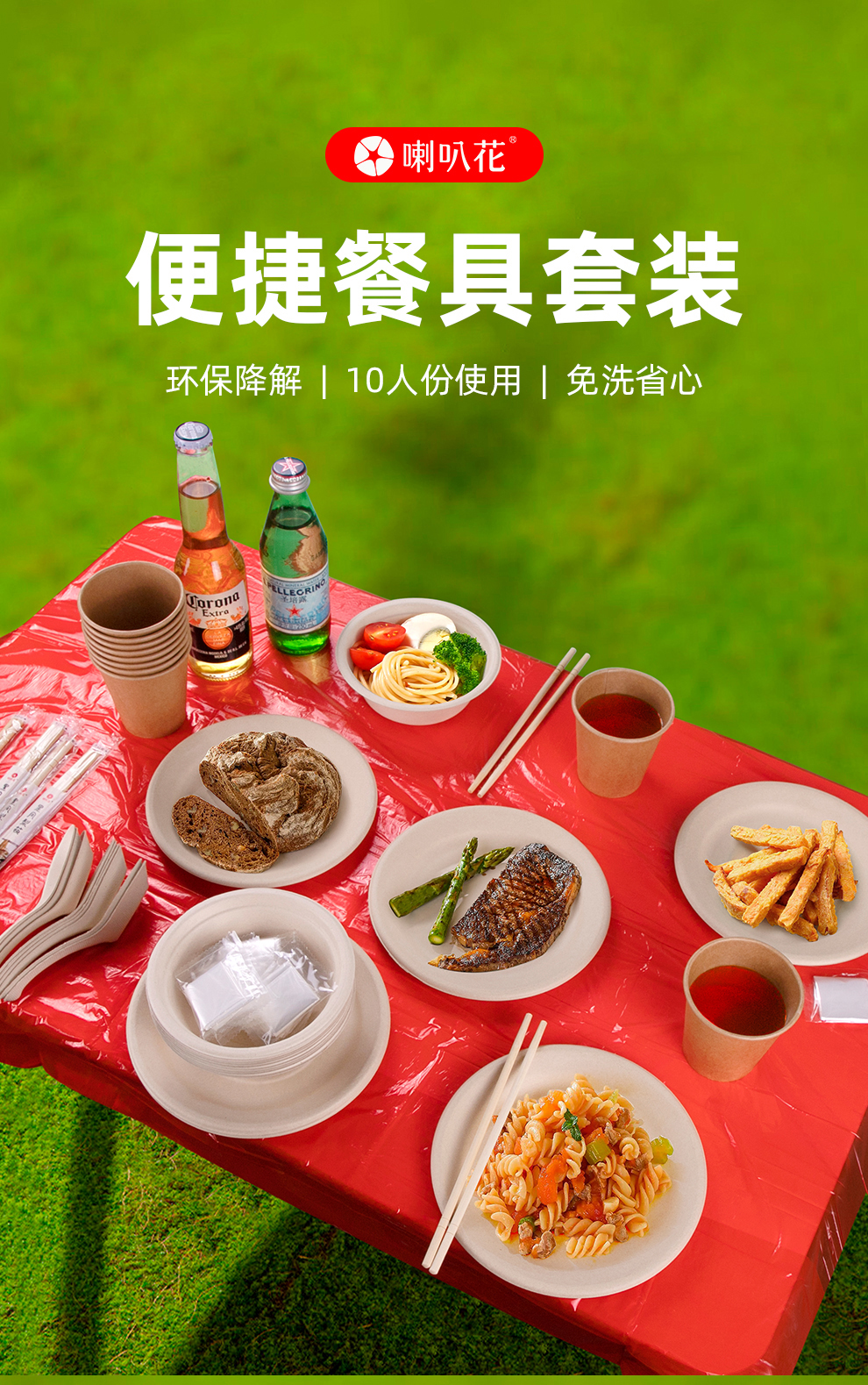 喇叭花纸浆一次性餐具套装杯盘碗筷手套露营聚餐野餐烧烤10人份