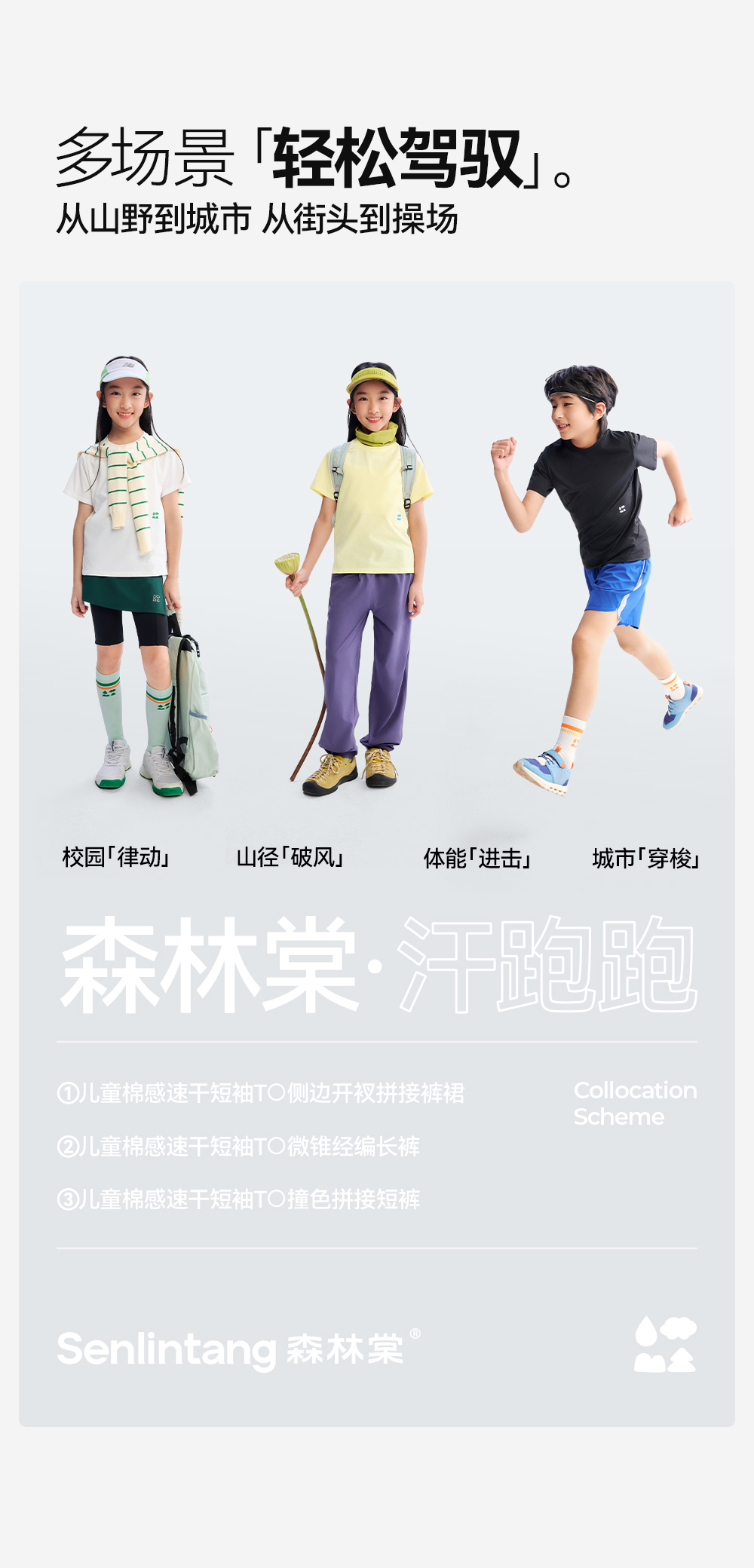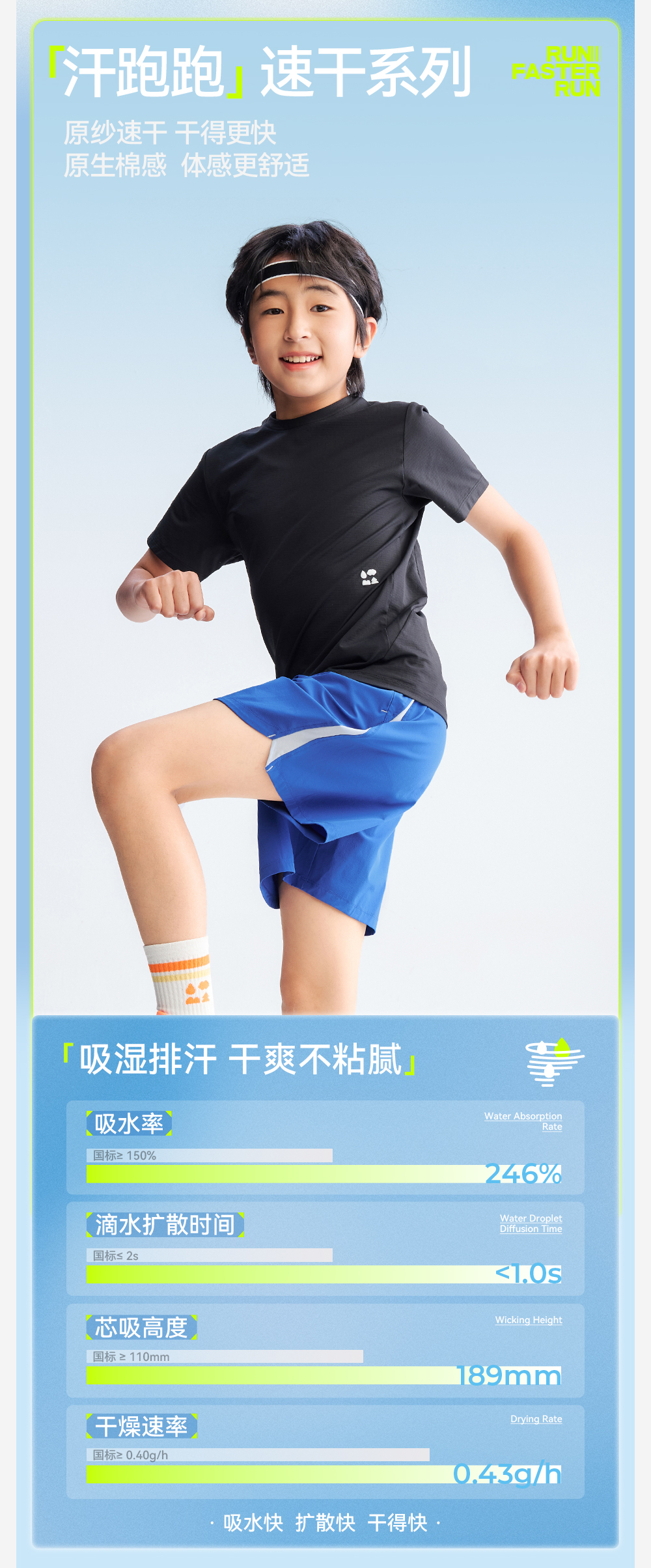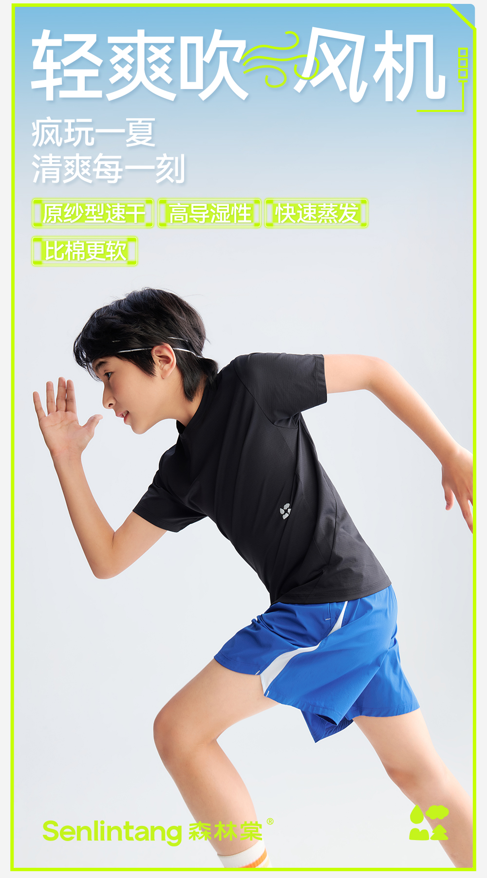 【儿童棉感速干短袖T恤】森林棠26夏款汗跑跑棉柔高弹亲肤圆领上衣40162286