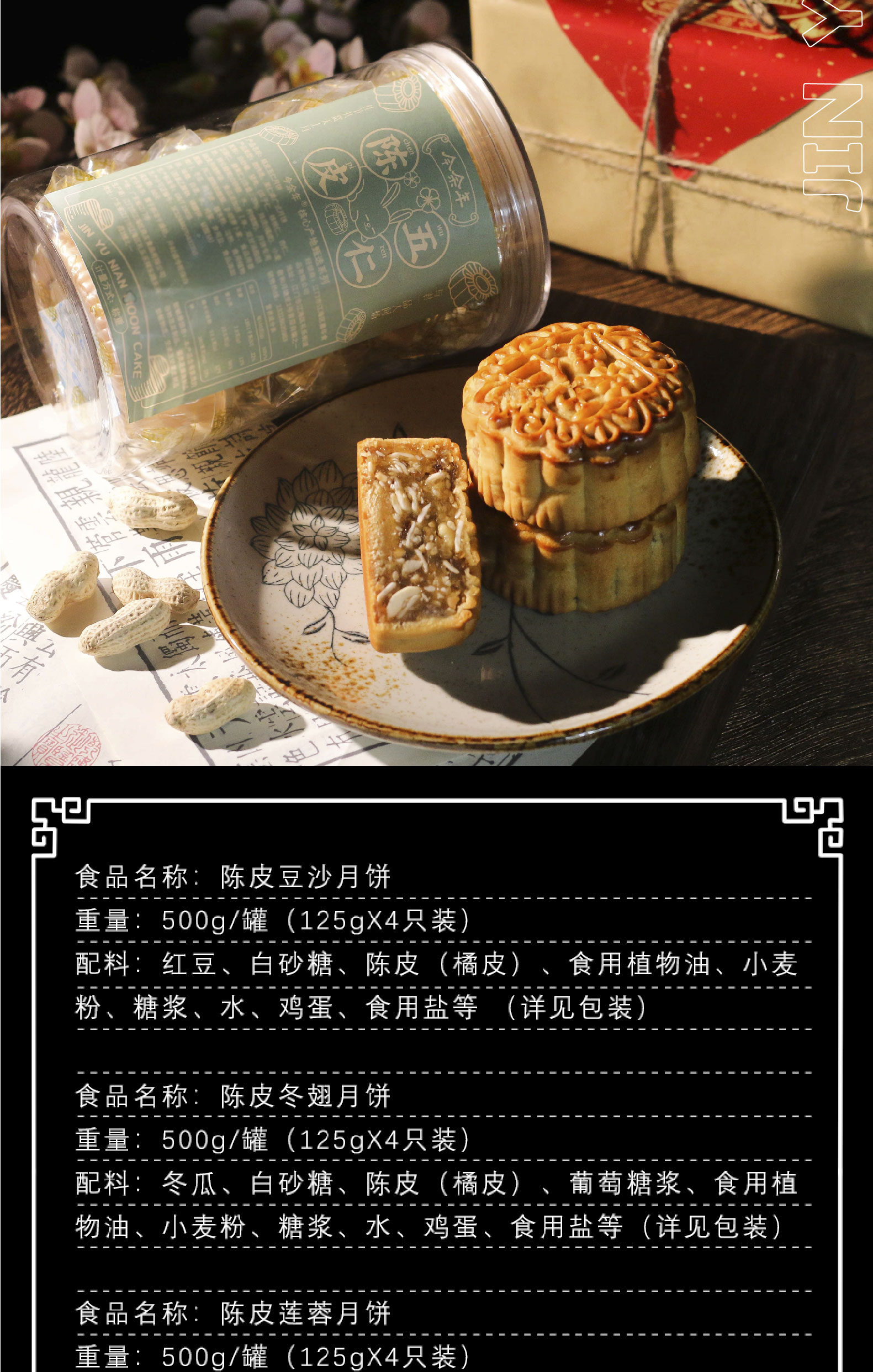 【默认发陈皮豆沙口味125g*4】今余年·手工柴火陈皮豆沙月饼|新会当地老字号,33年传承配方